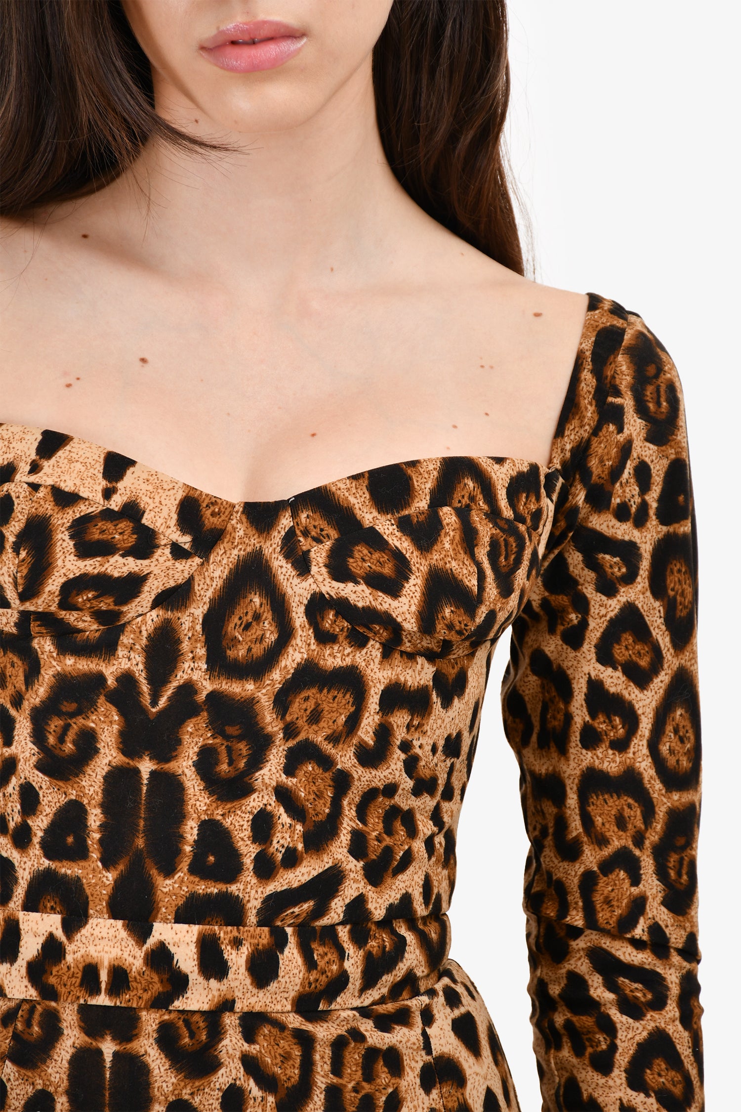 Refresh availabilityNew Arrivals Leopard Print Bustier Maxi Dress. Rear zip and hook closure. Partially lined. Slits on the hem.