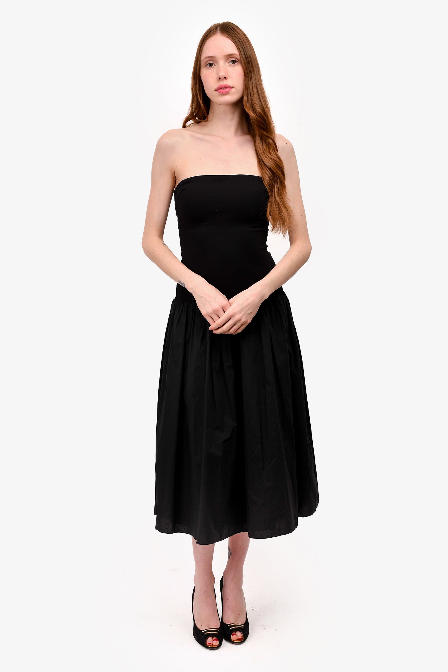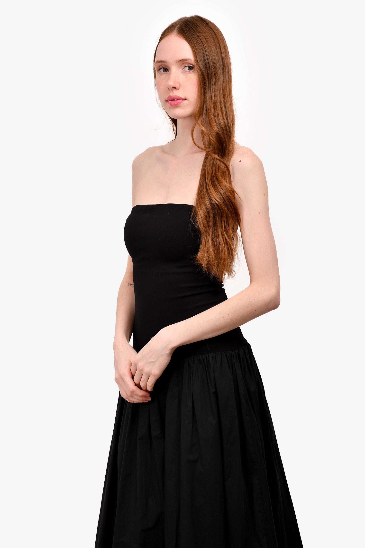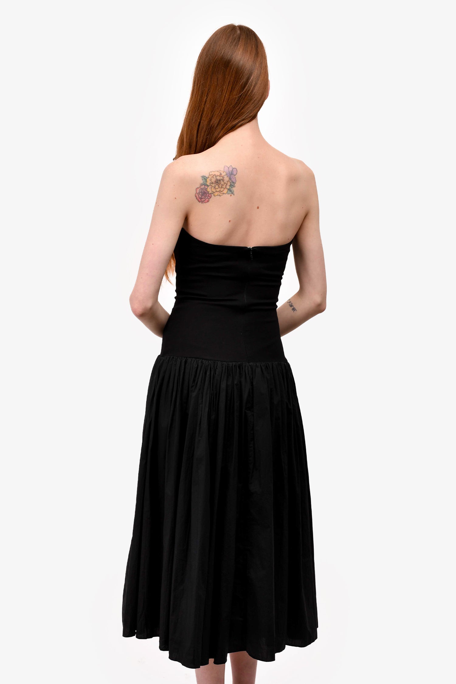 Refresh availabilityNicholas Black Strapless 'Jaxon' Maxi Dress. Back zip closure. Lined. Drop waist skirt. Pleated waist down. Tonal stitching.