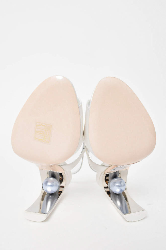Nicholas Kirkwood White Satin Swirl Open Toe Heel Sandal with Ball Embellishment Size 36.5