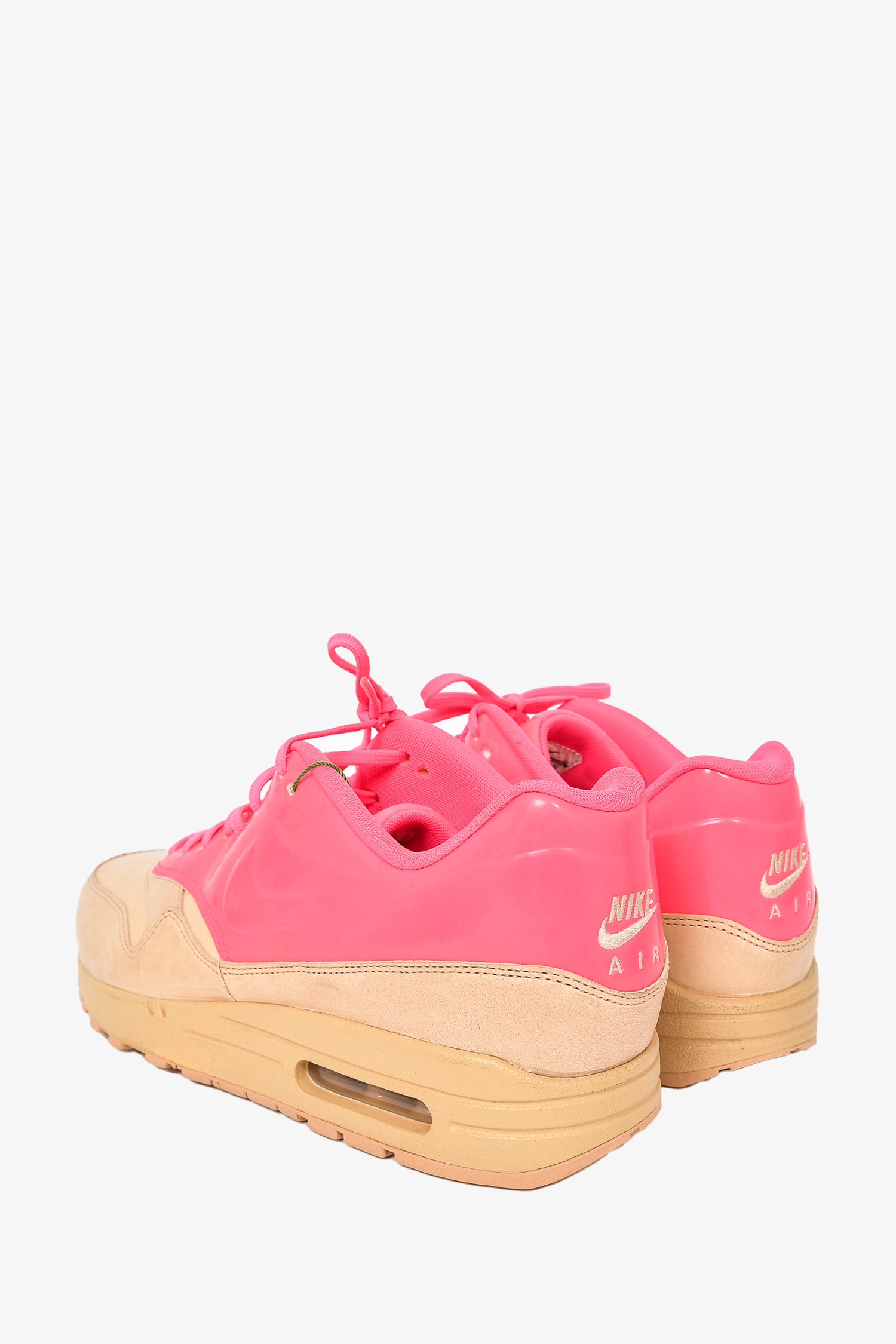 Refresh availabilityNike Neon Pink/Beige Air Max 1 Sneakers. Round toe. Lace-up front closure. Tonal stitching.