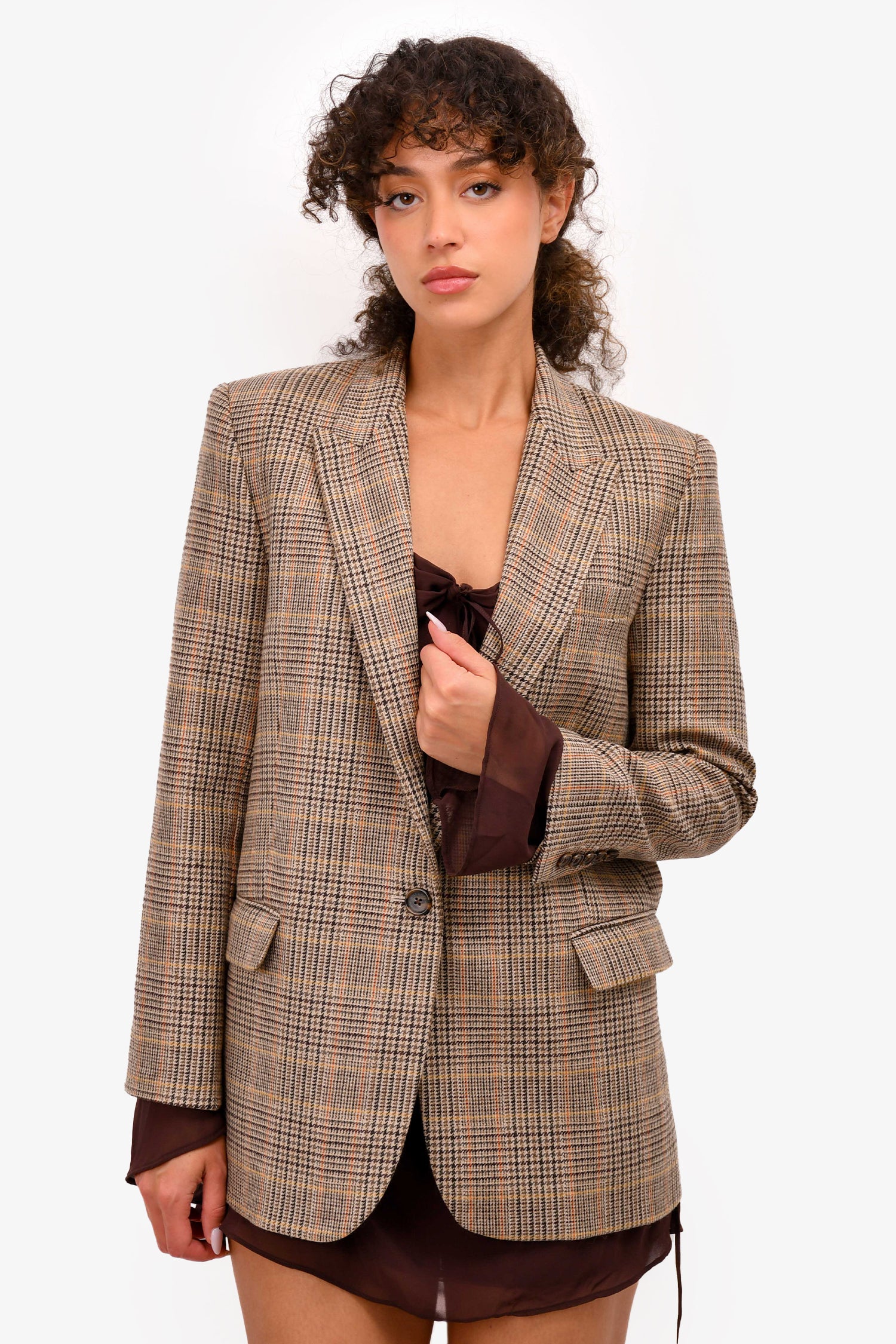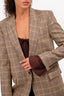 Nili Lotan Beige Wool Blend Tartan Long Sleeve Blazer Size 4