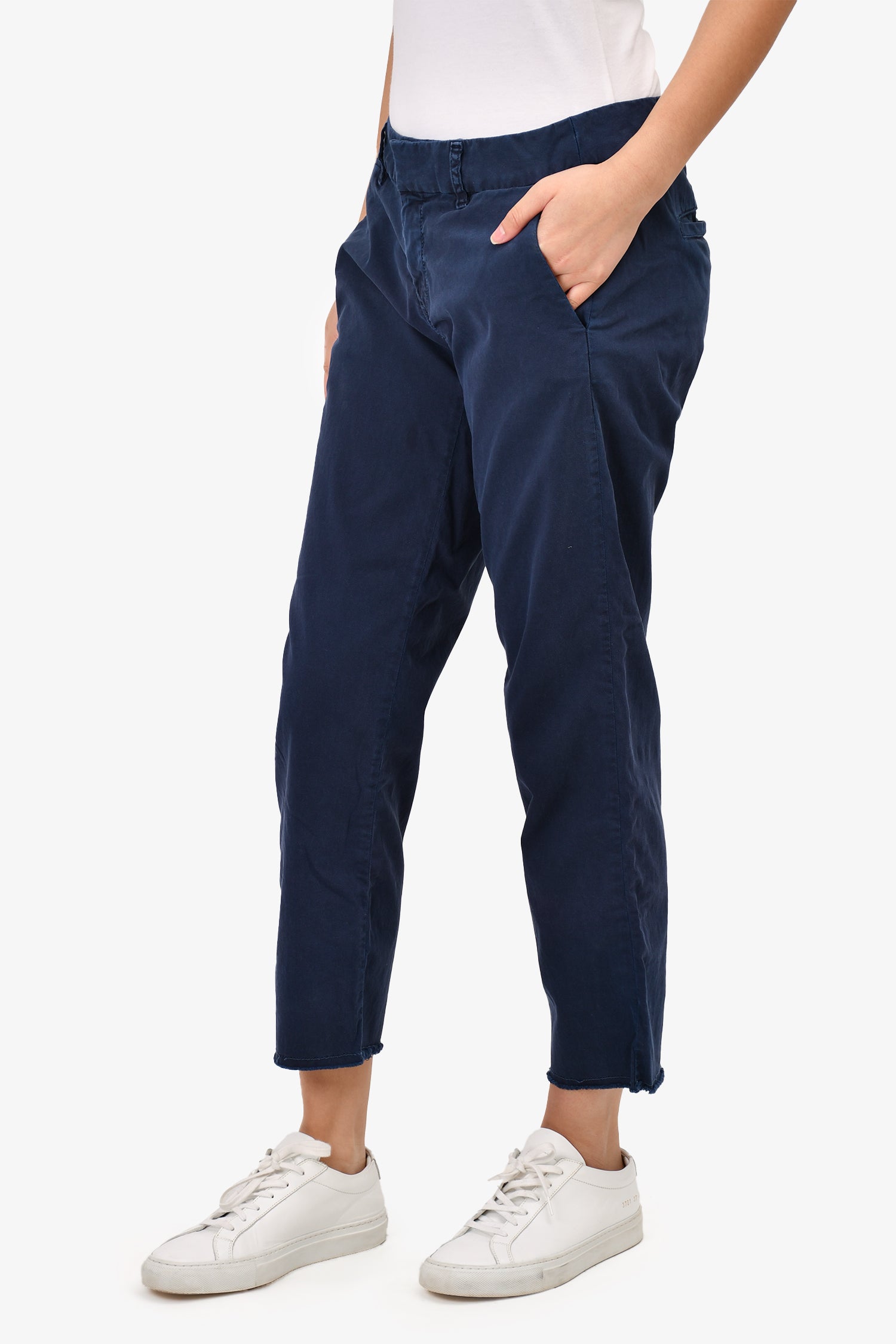 Nili Lotan Blue Cotton Frayed Pants Size 4