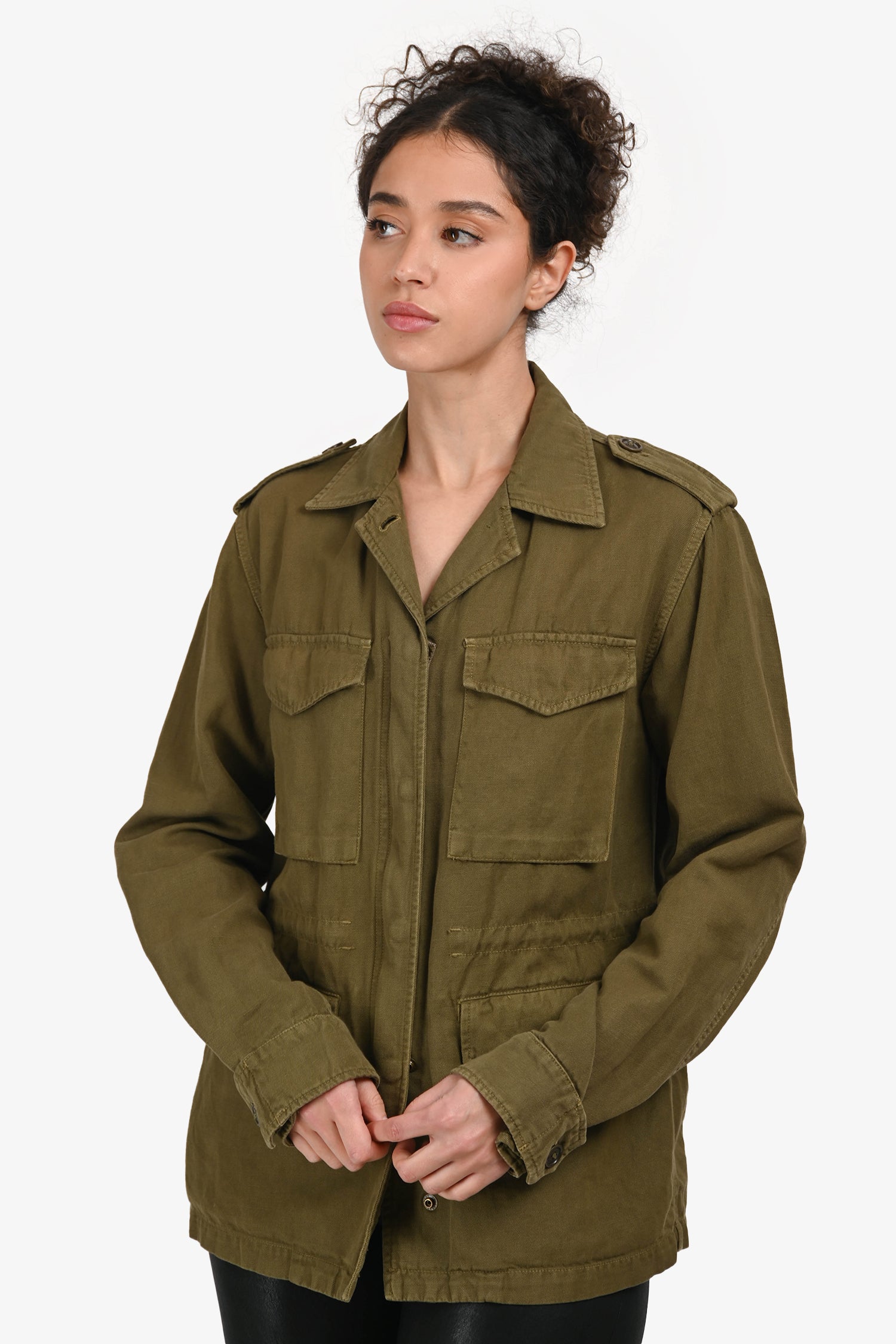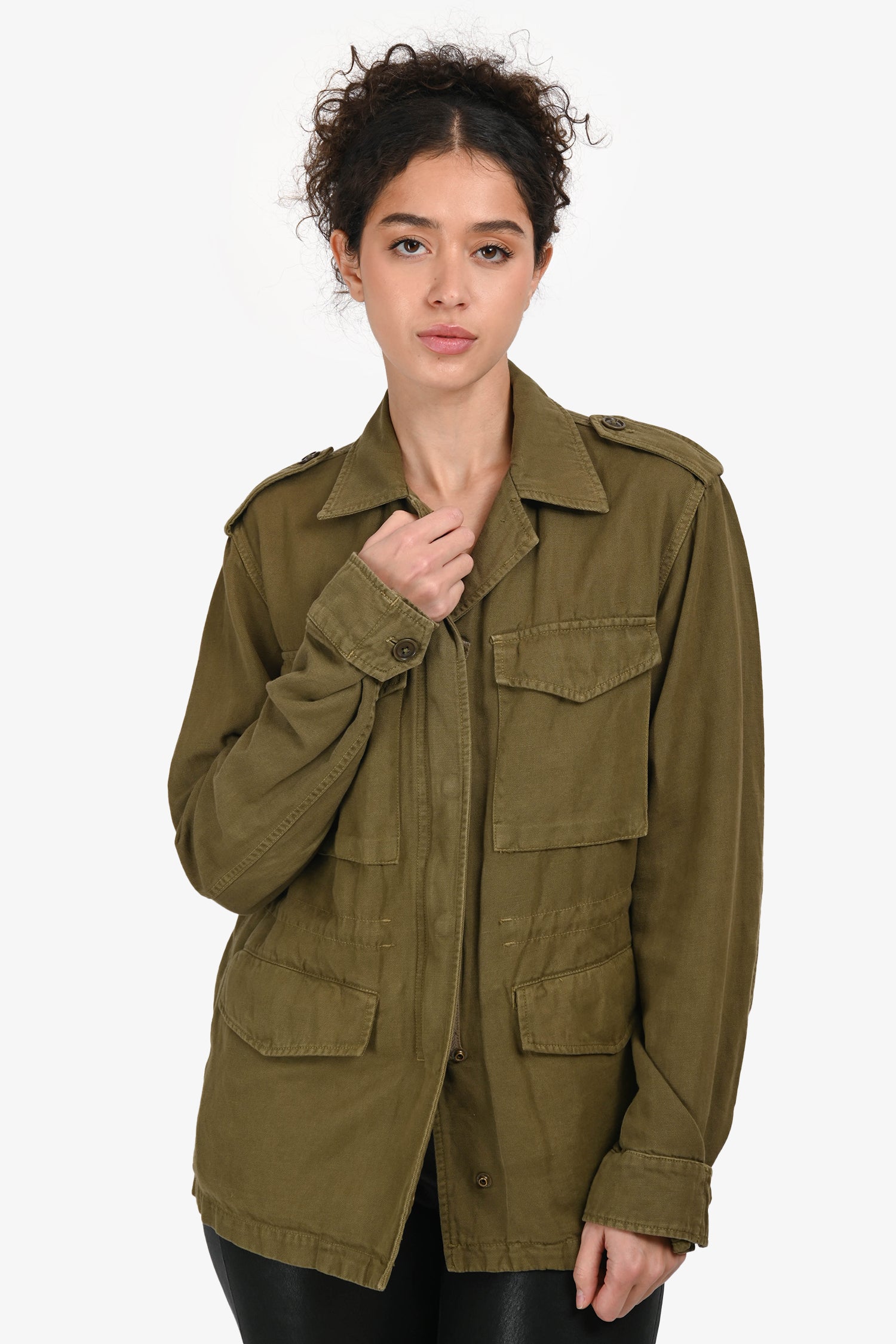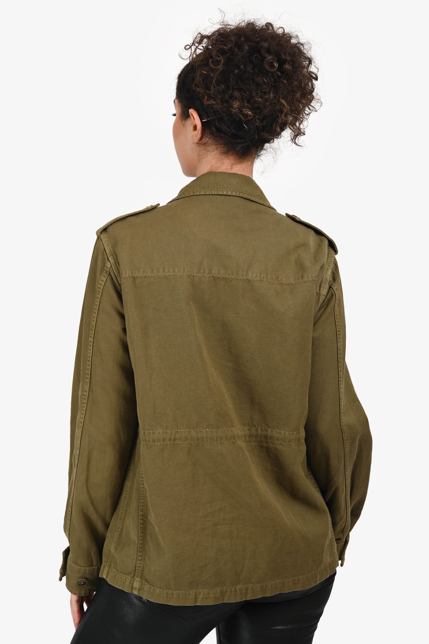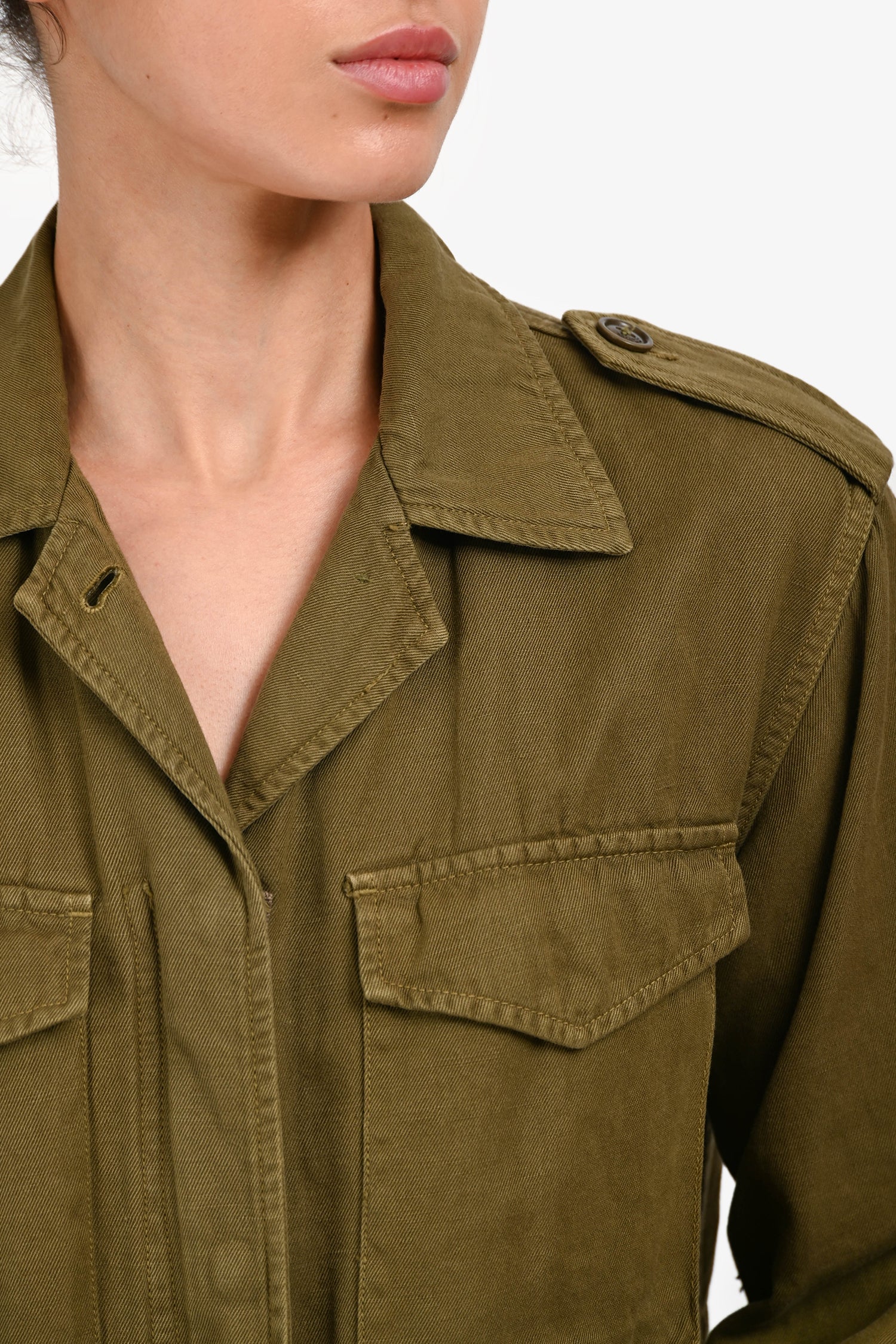 Nili Lotan Green Cotton Utility Cinch Waist Jacket Size S
