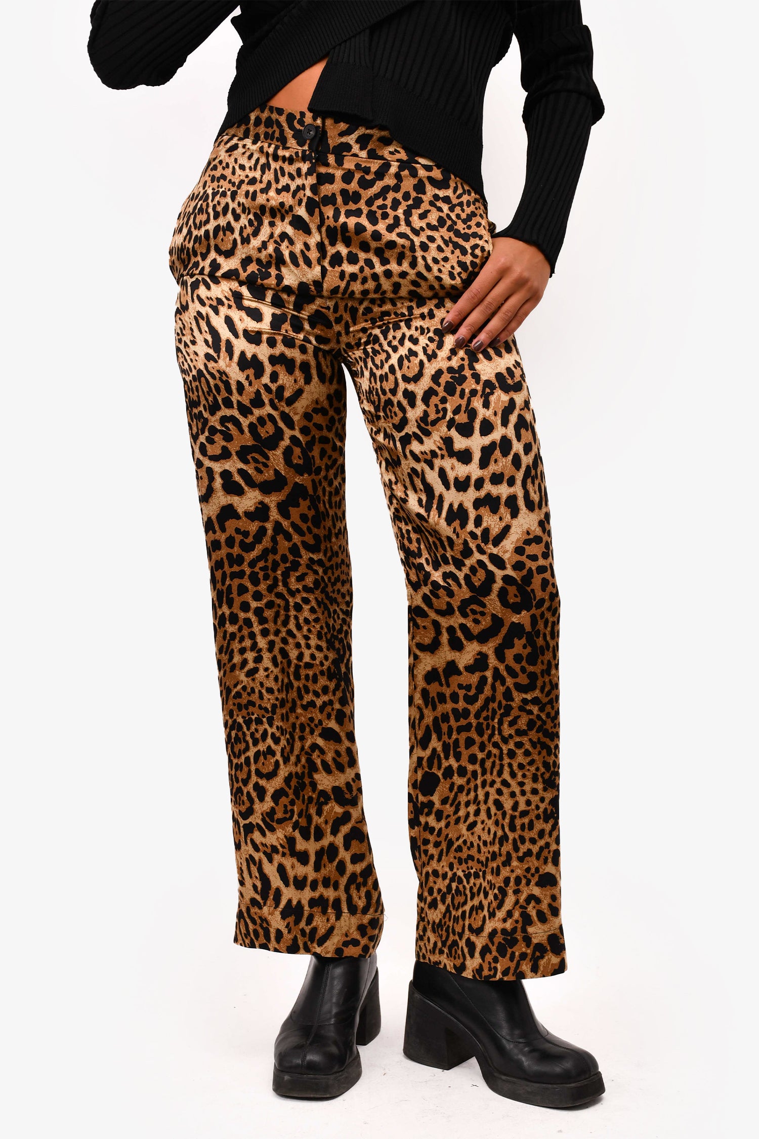 Nili Lotan Leopard Print Silk Wide Leg Trousers Size 4
