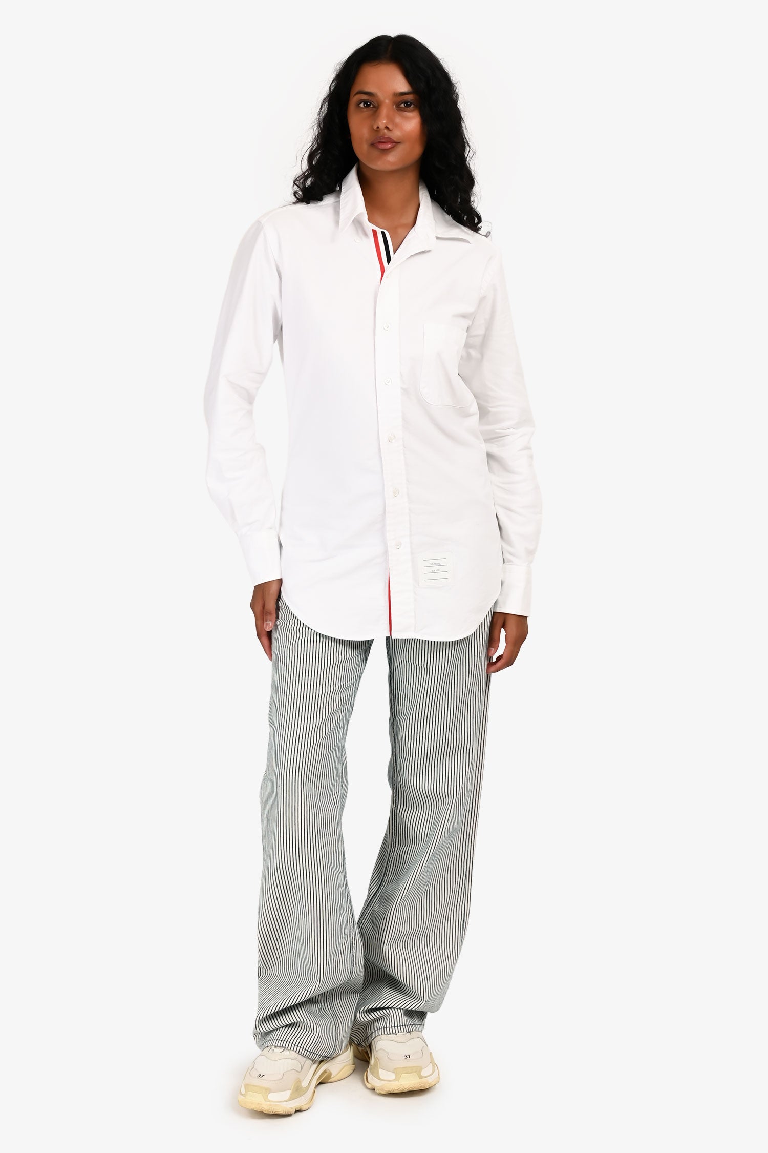 Refresh availabilityNili Lotan Navy/White Striped 'Mitchells' Pants. Front zip and button closure. Front and rear pockets. Waist belt loops.