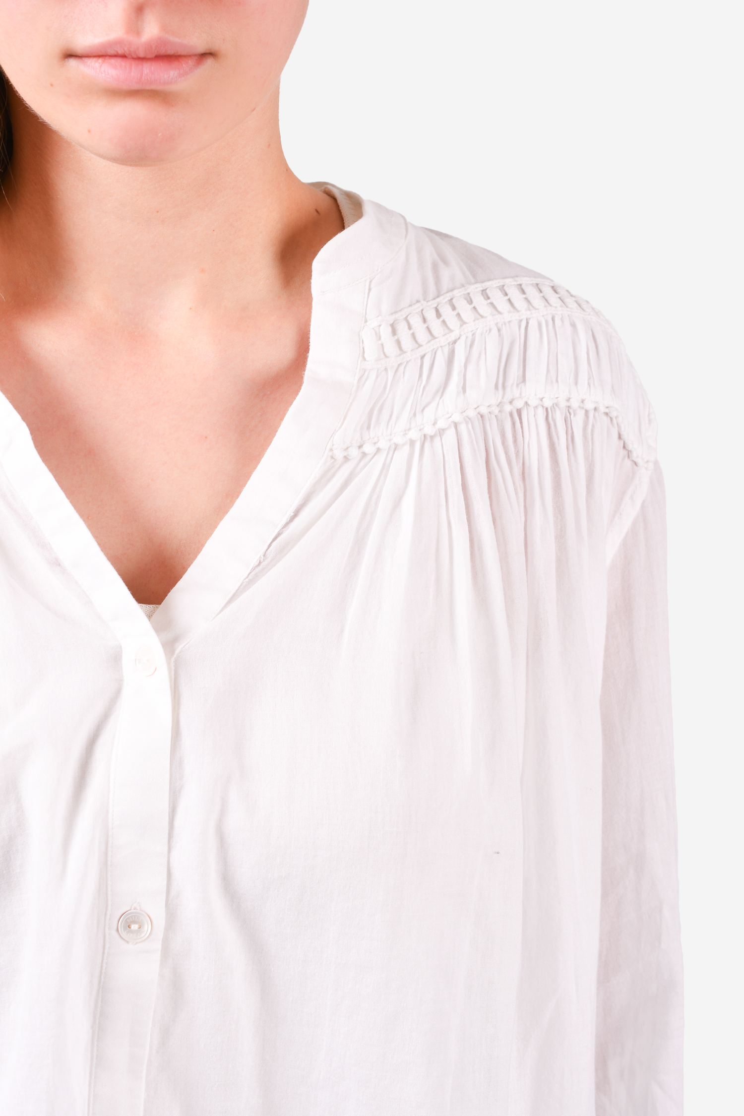 Refresh availabilityNili Lotan White Cotton Blouse. Front button-up closure. Semi-sheer. Tonal stitching.