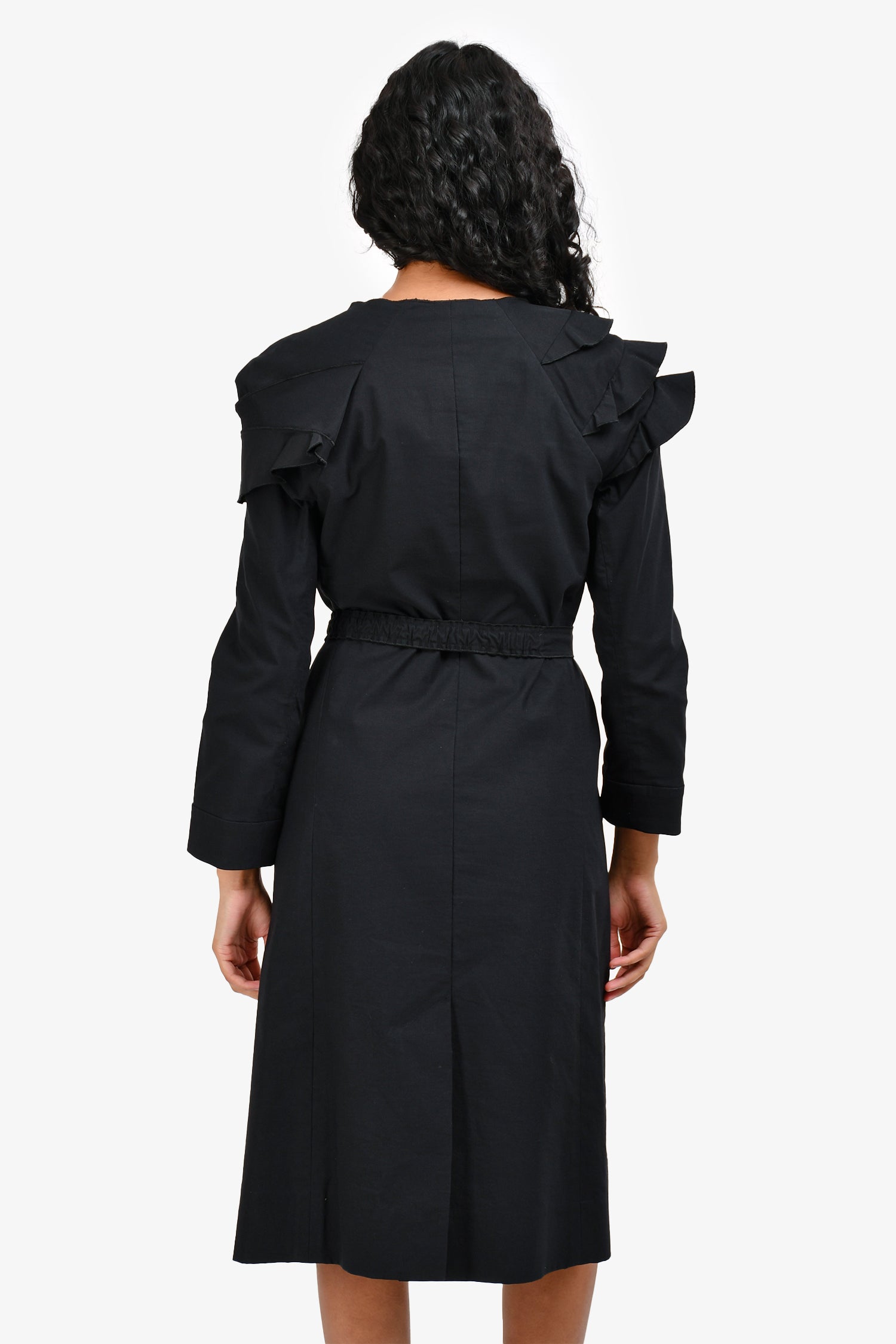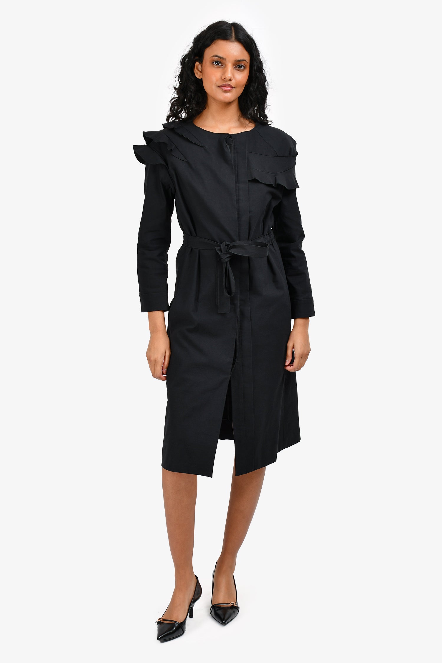 Nina Ricci Black Ruffle Belted Trench Coat Size 38