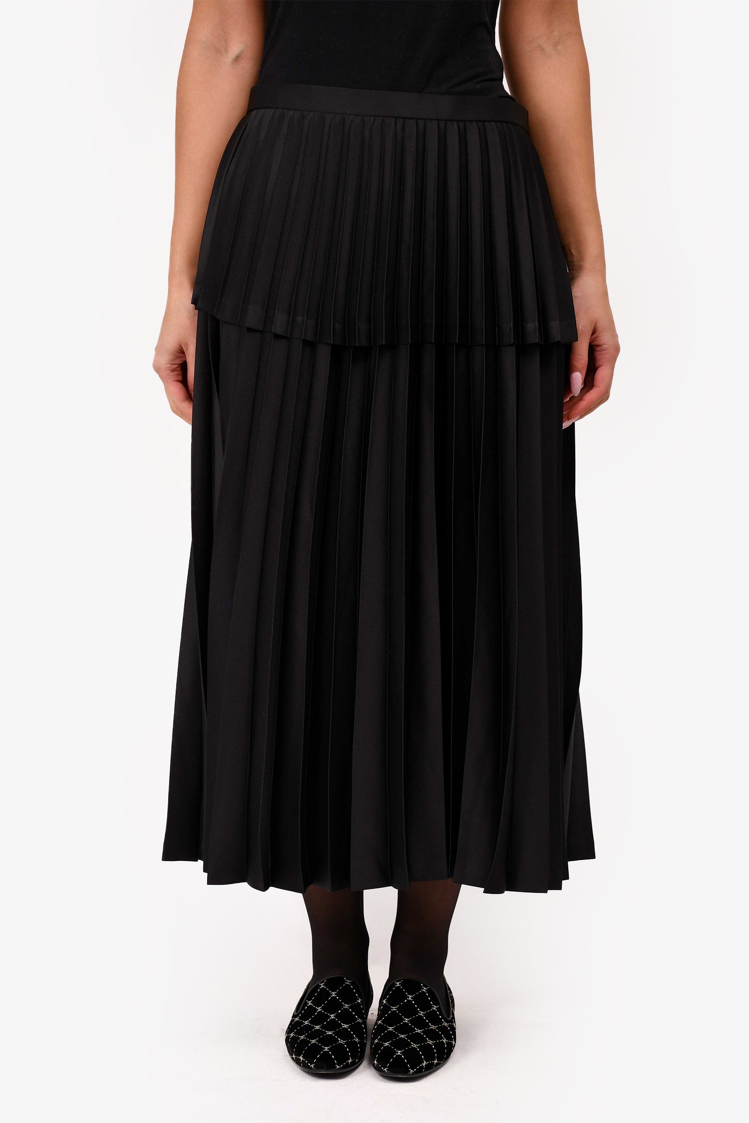 Refresh availabilityNoir Kei Ninomiya Black Satin Pleated Midi Skirt. Side zipped fastening. Tonal stitching.