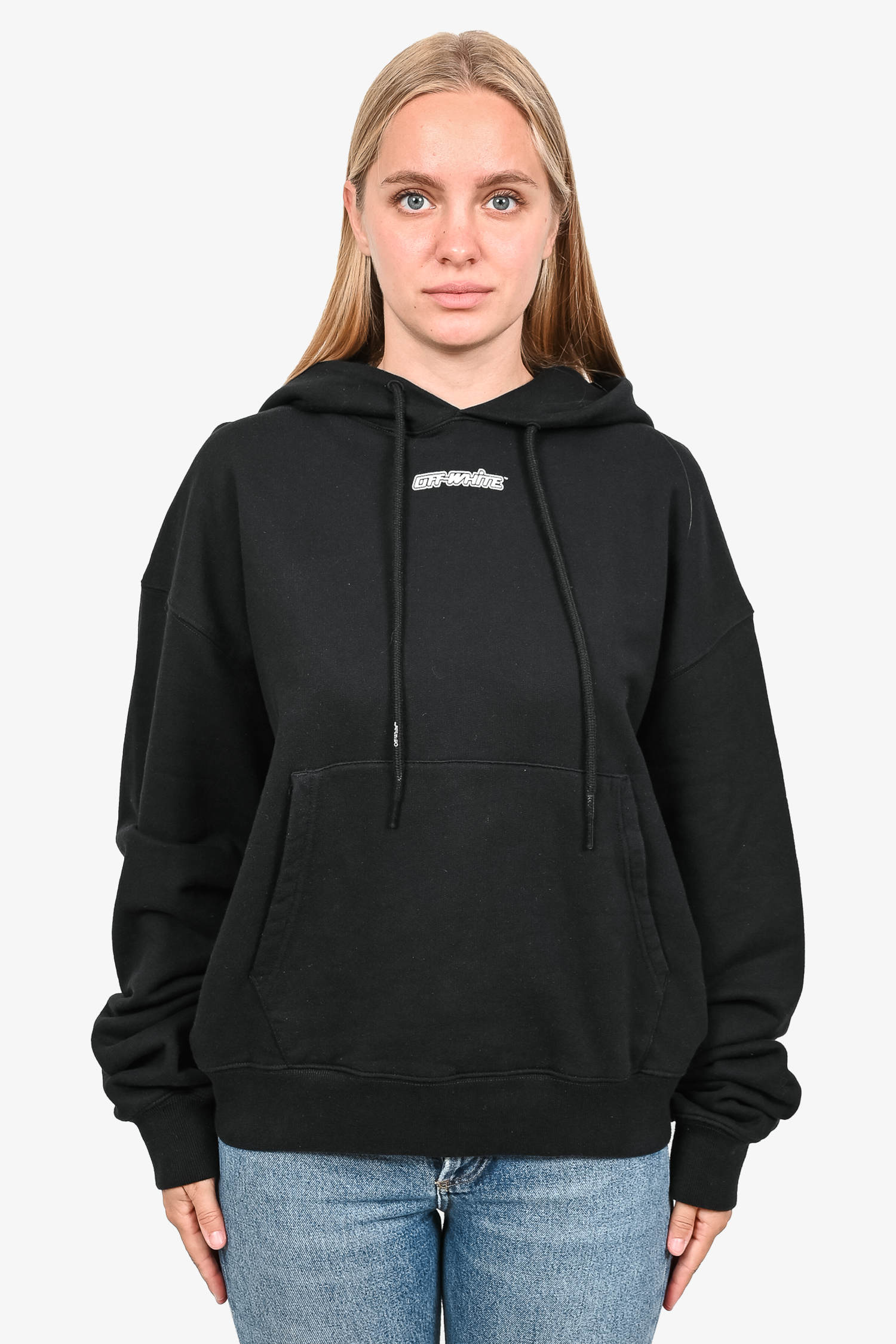 Refresh availabilityOff-White Black Cotton Blue Graphic Drawstring Hoodie. Pull-on. Ribbed cuffs and hem. Front pocket.