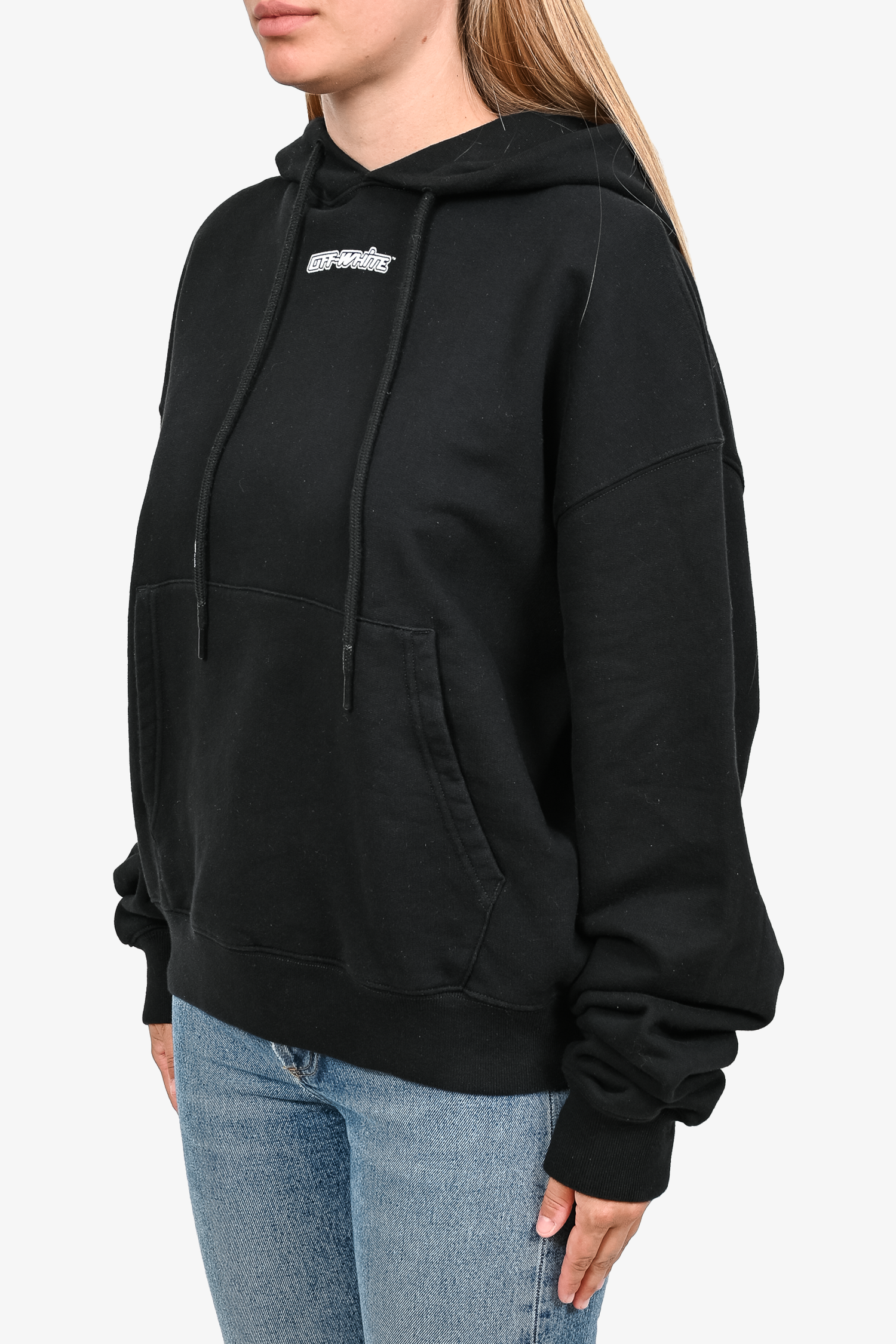 Off-White Black Cotton Blue Graphic Drawstring Hoodie Size M