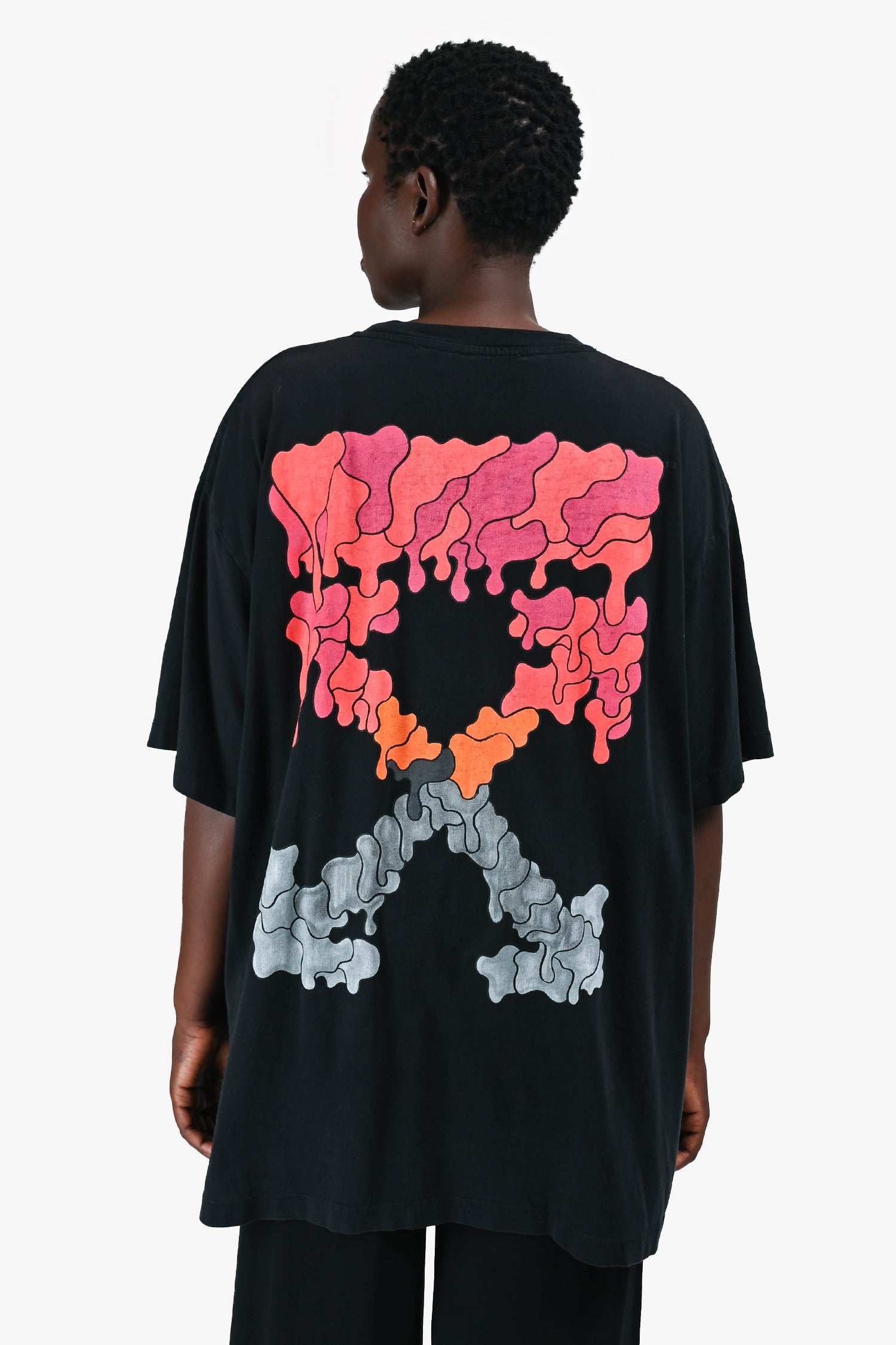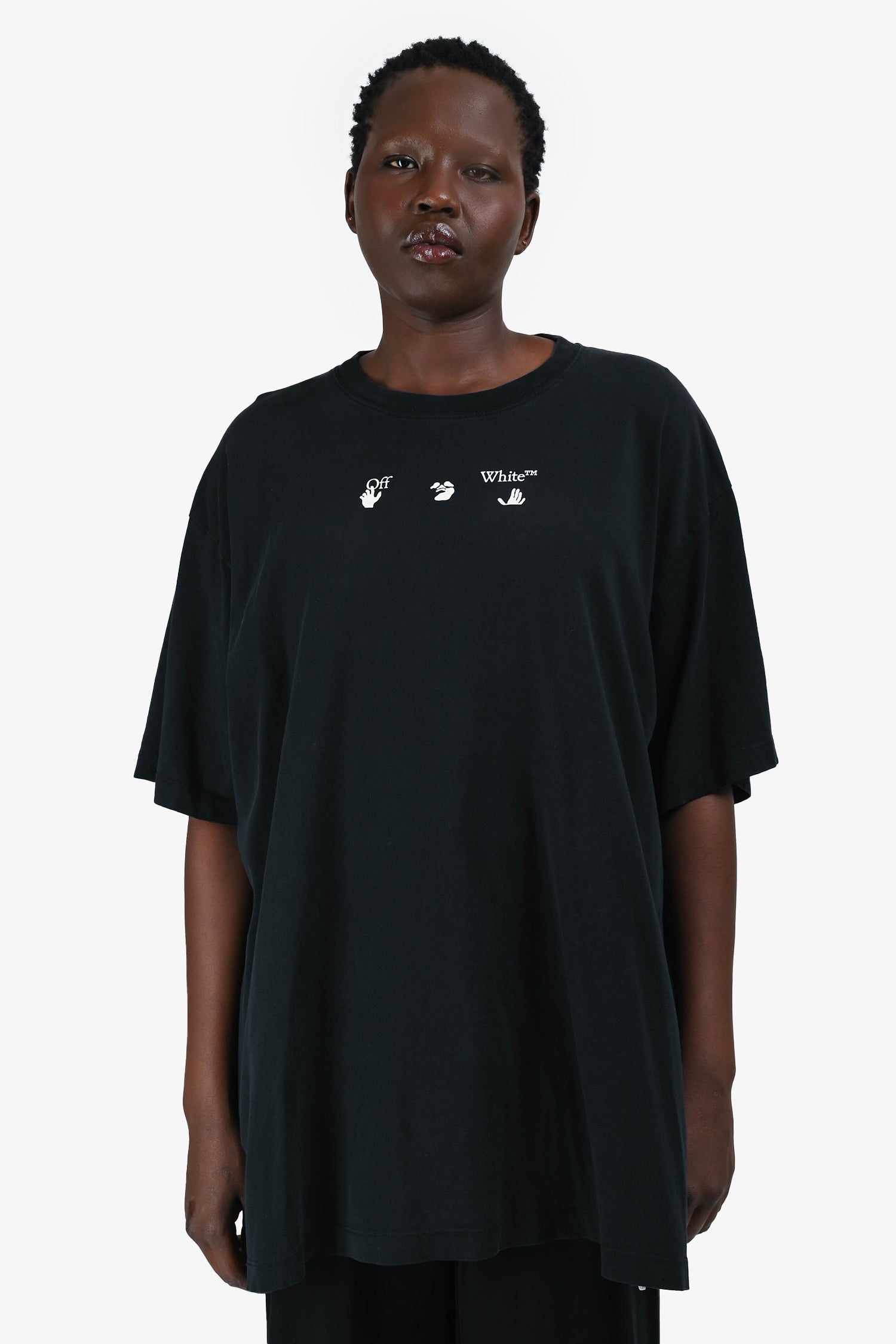 Off-White Black Cotton Pink/White Logo T-Shirt Size L Mens