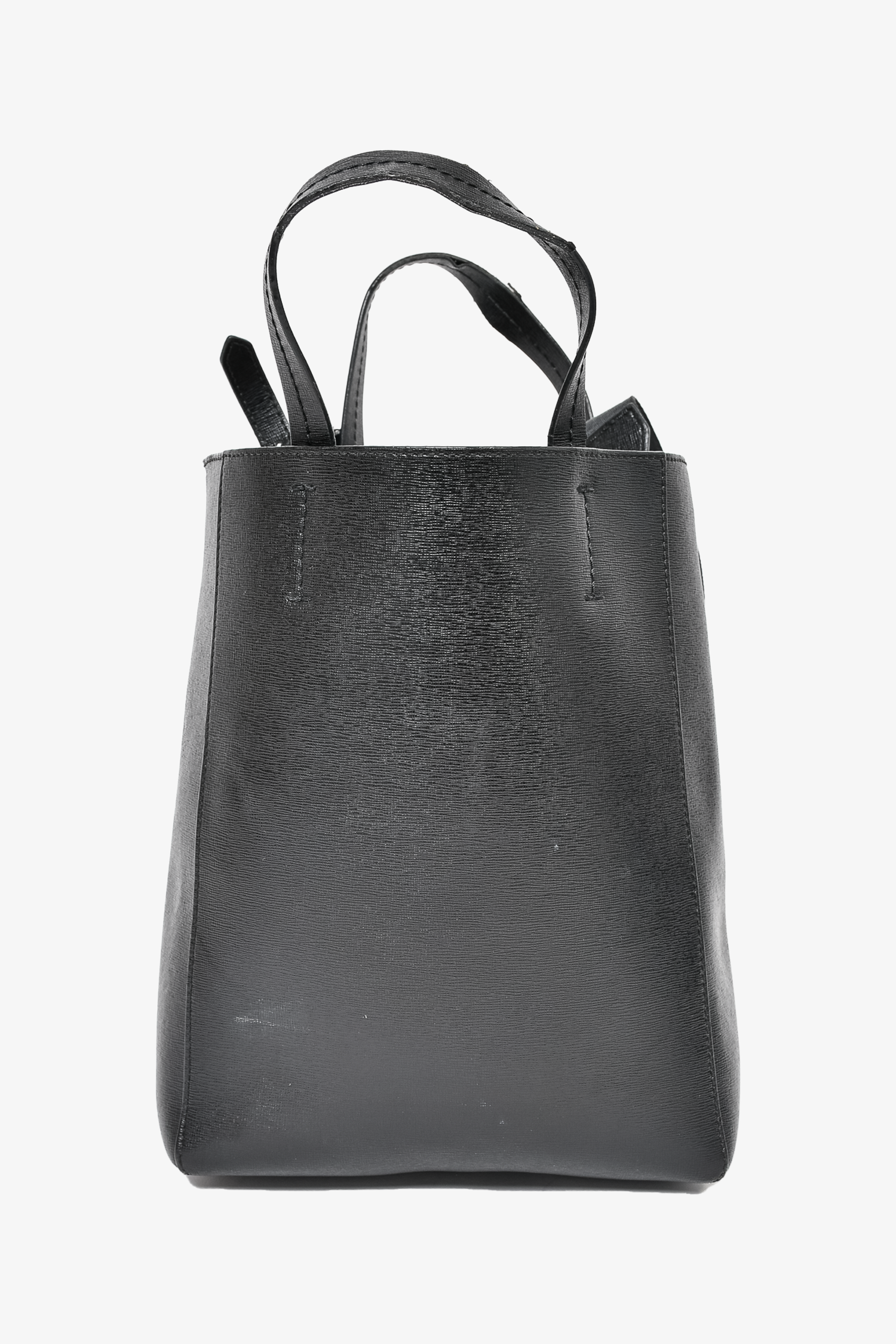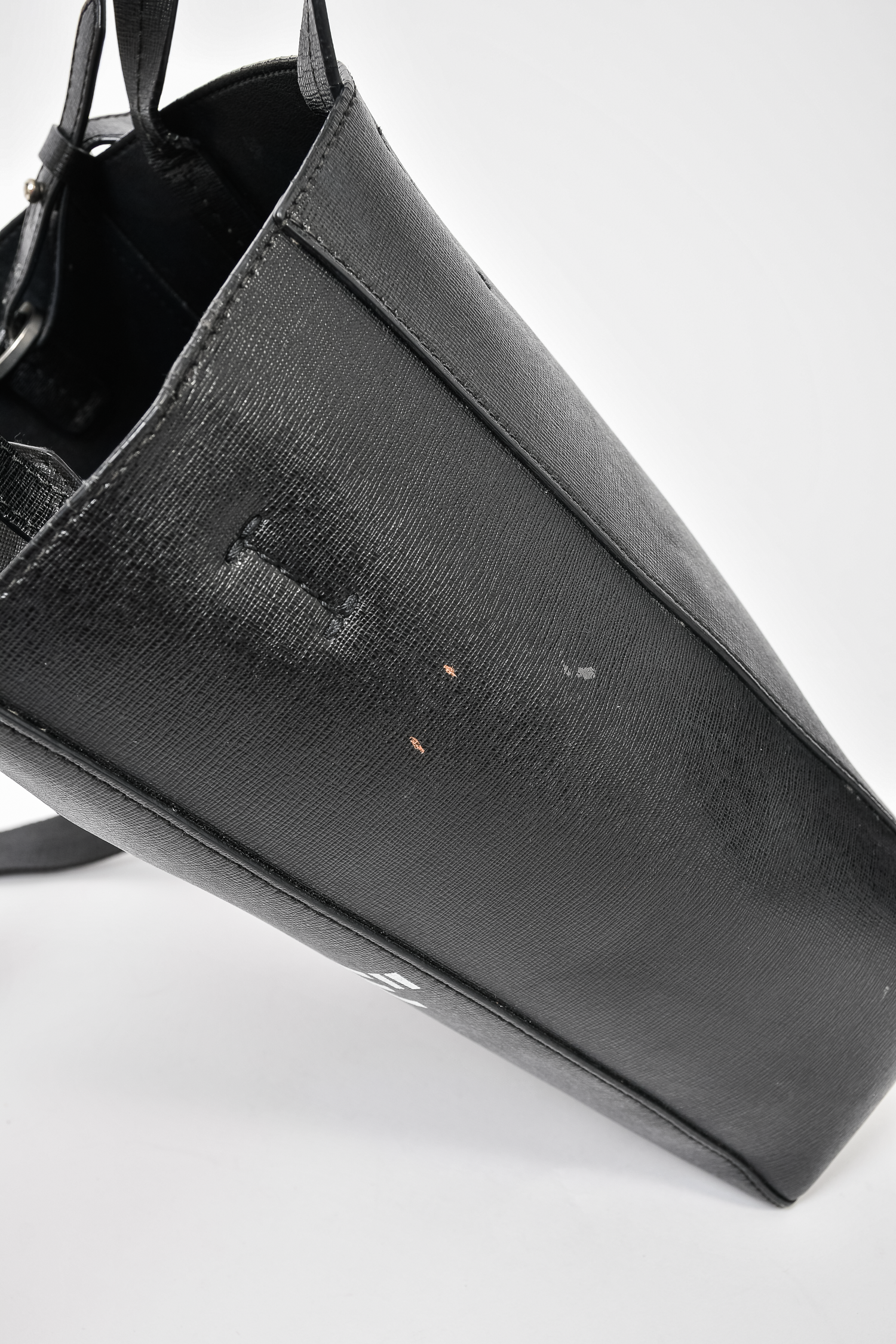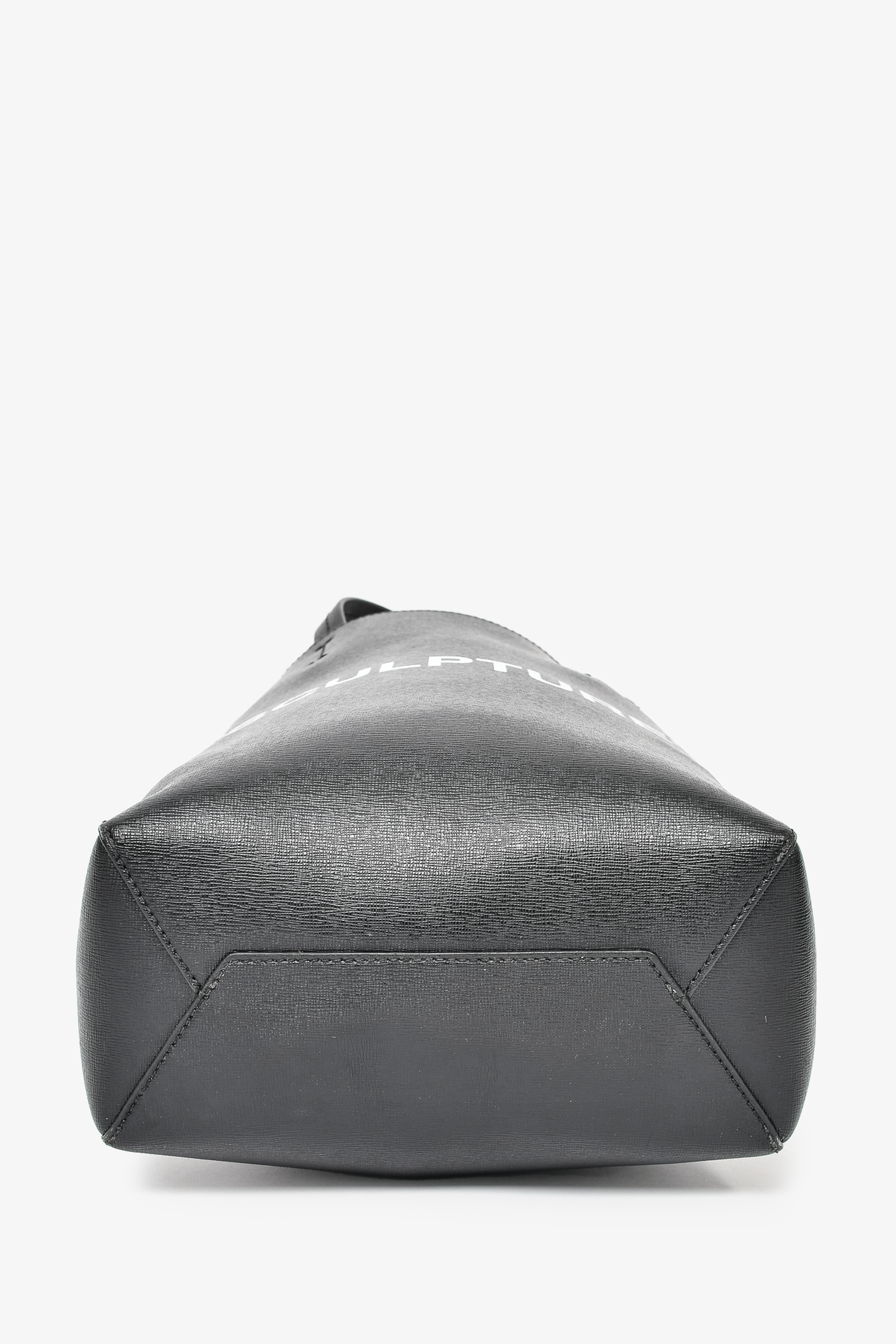 Refresh availabilityOff-White Black Leather 'Sculpture' Crossbody Tote Bag. Twin handles. Adjustable strap. 1 interior wall zip pocket. 1 interior billfold compartment. Silver-toned hardware. Tonal stitching