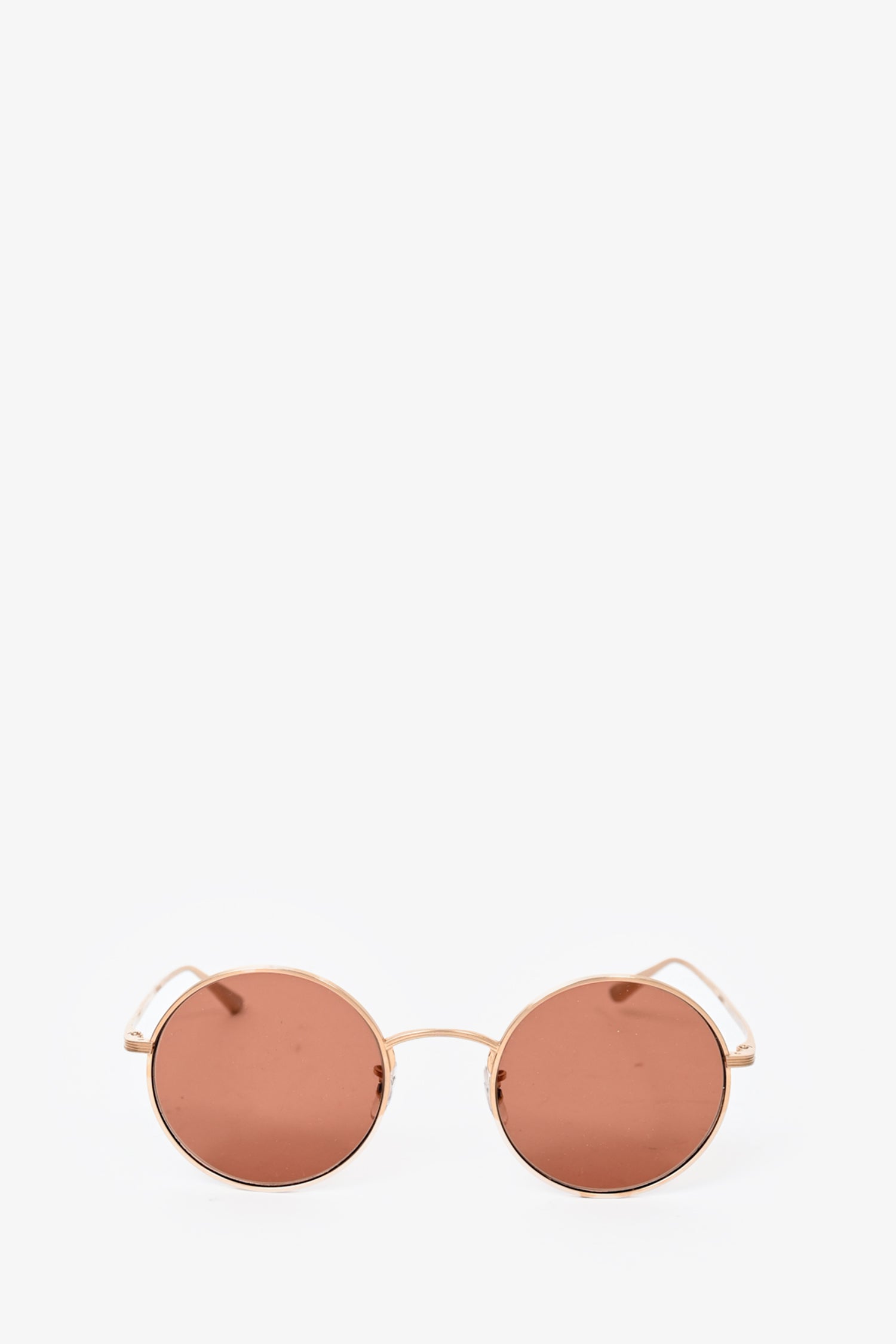 Oliver Peoples Brown/Gold Framed Circle Sunglasses