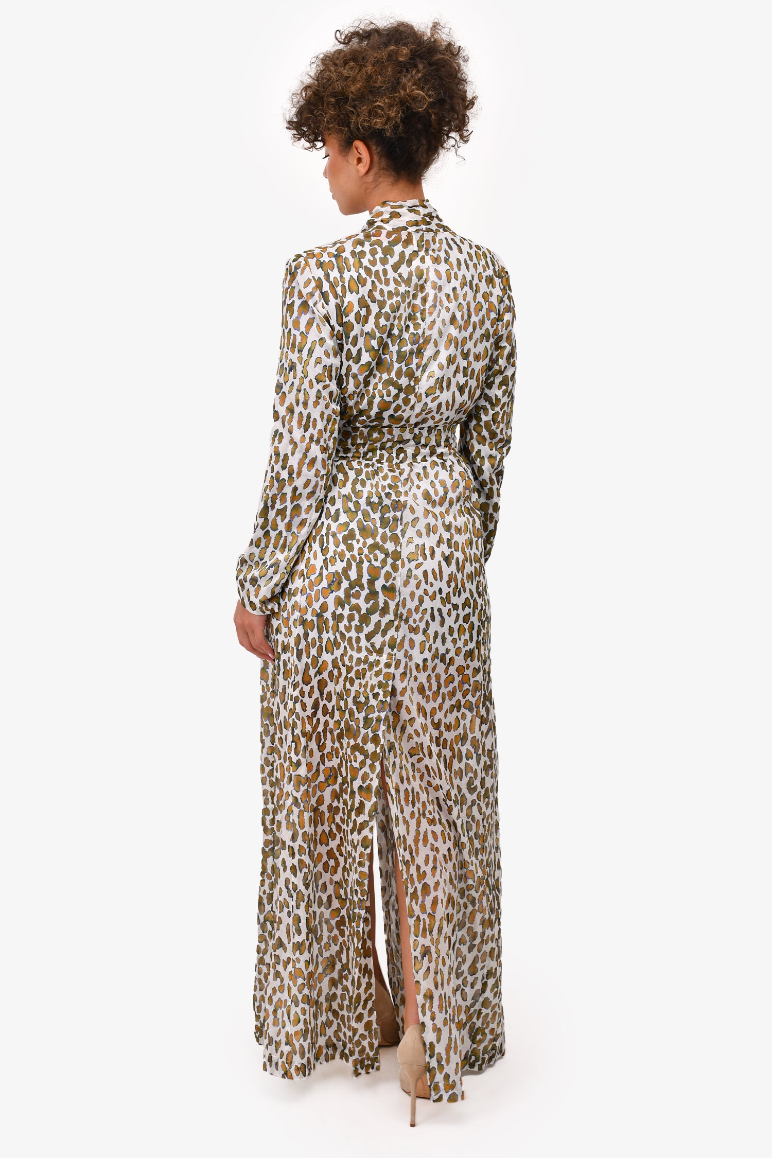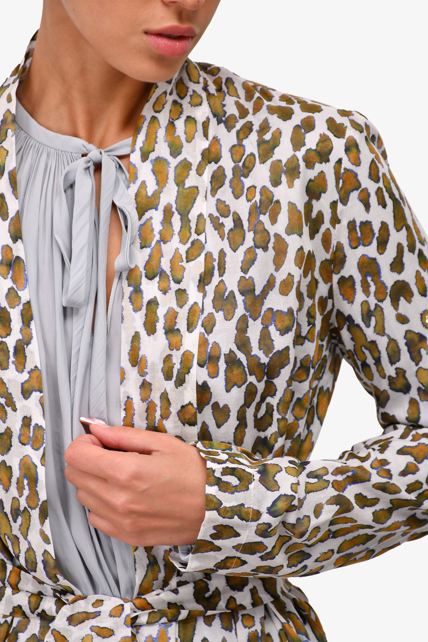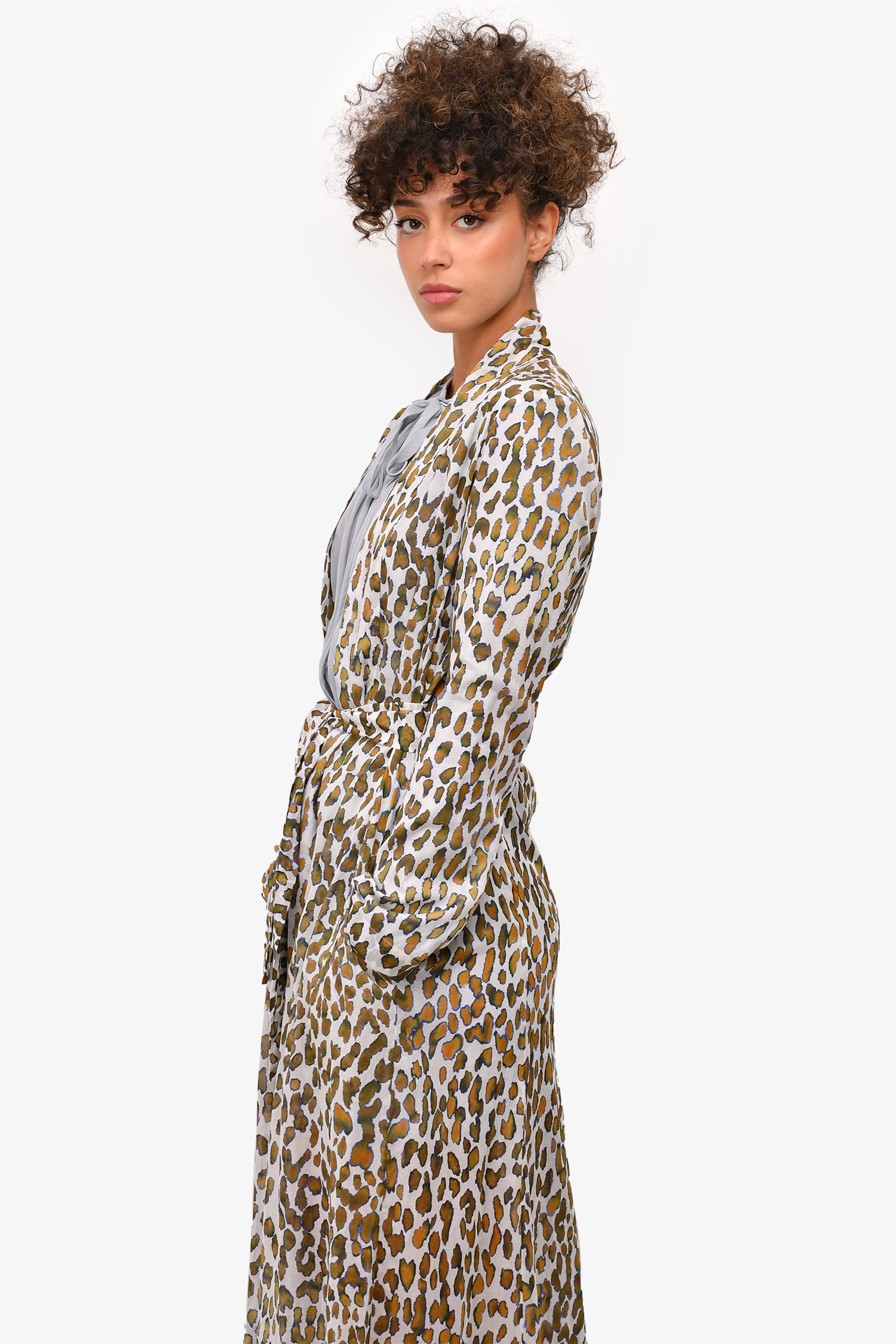 On the Island Green Leopard Printed Cotton Robe With Belt Size 42