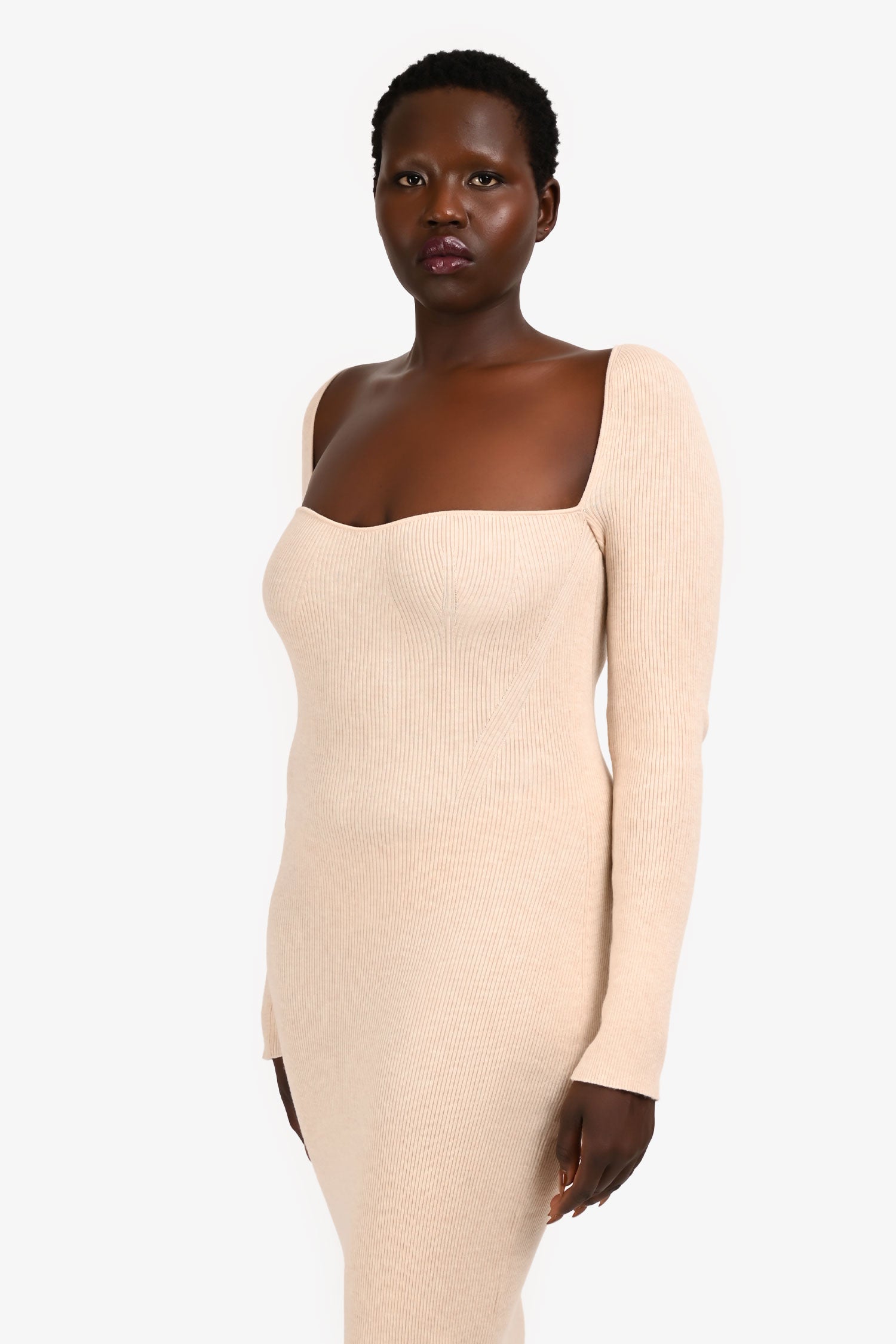 One Grey Day x Revolve Cream Ribbed 'Olivia' Midi Dress Size M