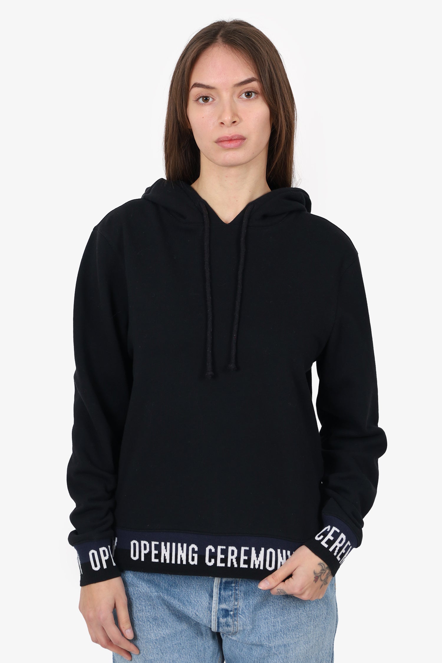 Refresh availabilityOpening Ceremony Black Hoodie. Pull-on. Hooded neckline with drawstring. Tonal stitching.