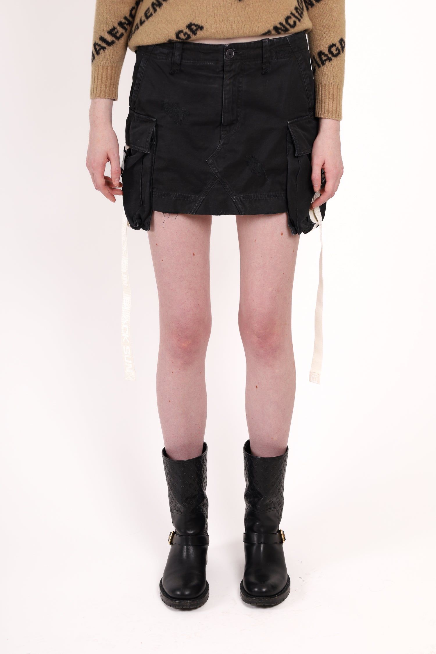 Palm Angels Black Denim Pocket Buckle Detail Cargo Mini Skirt Size 40