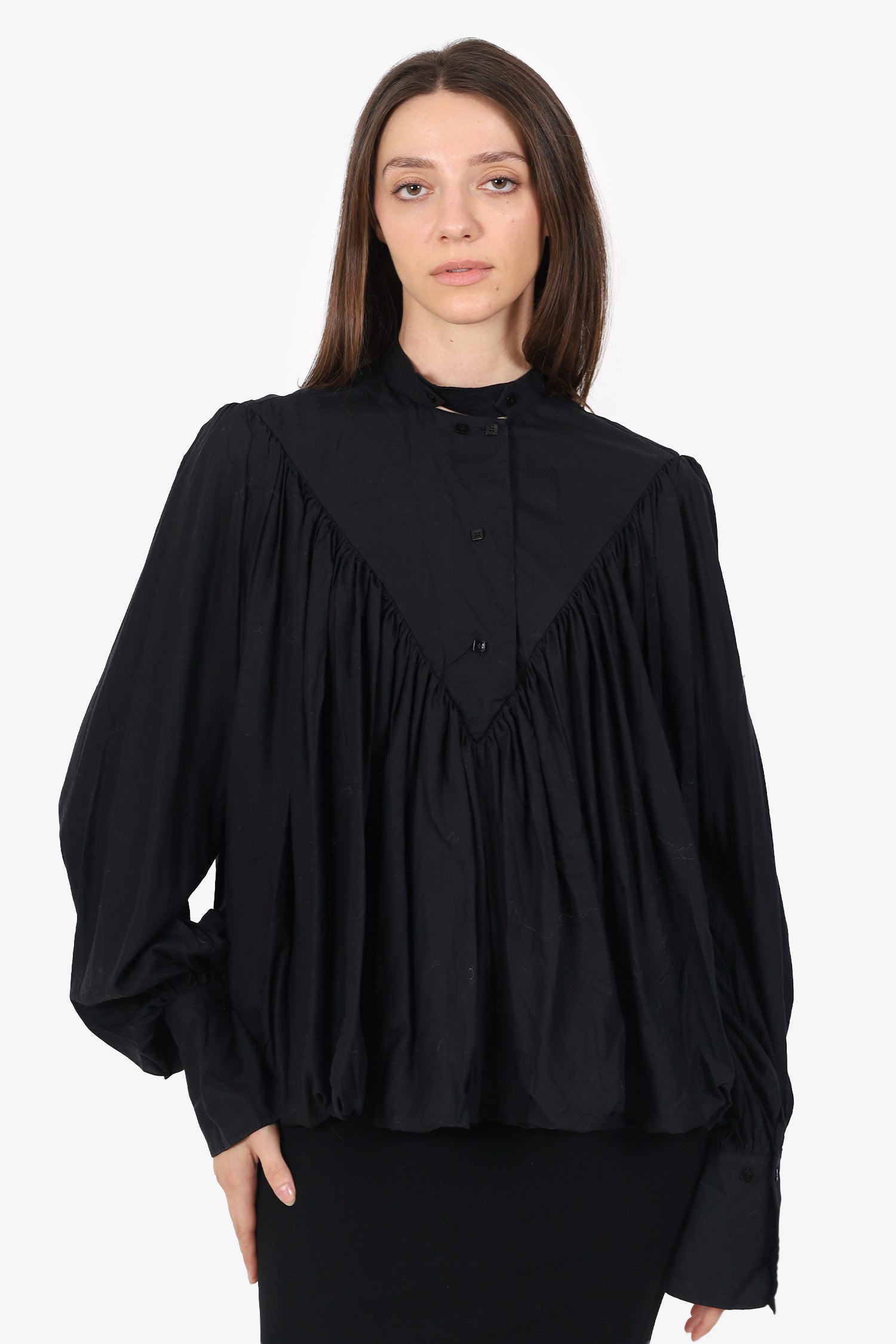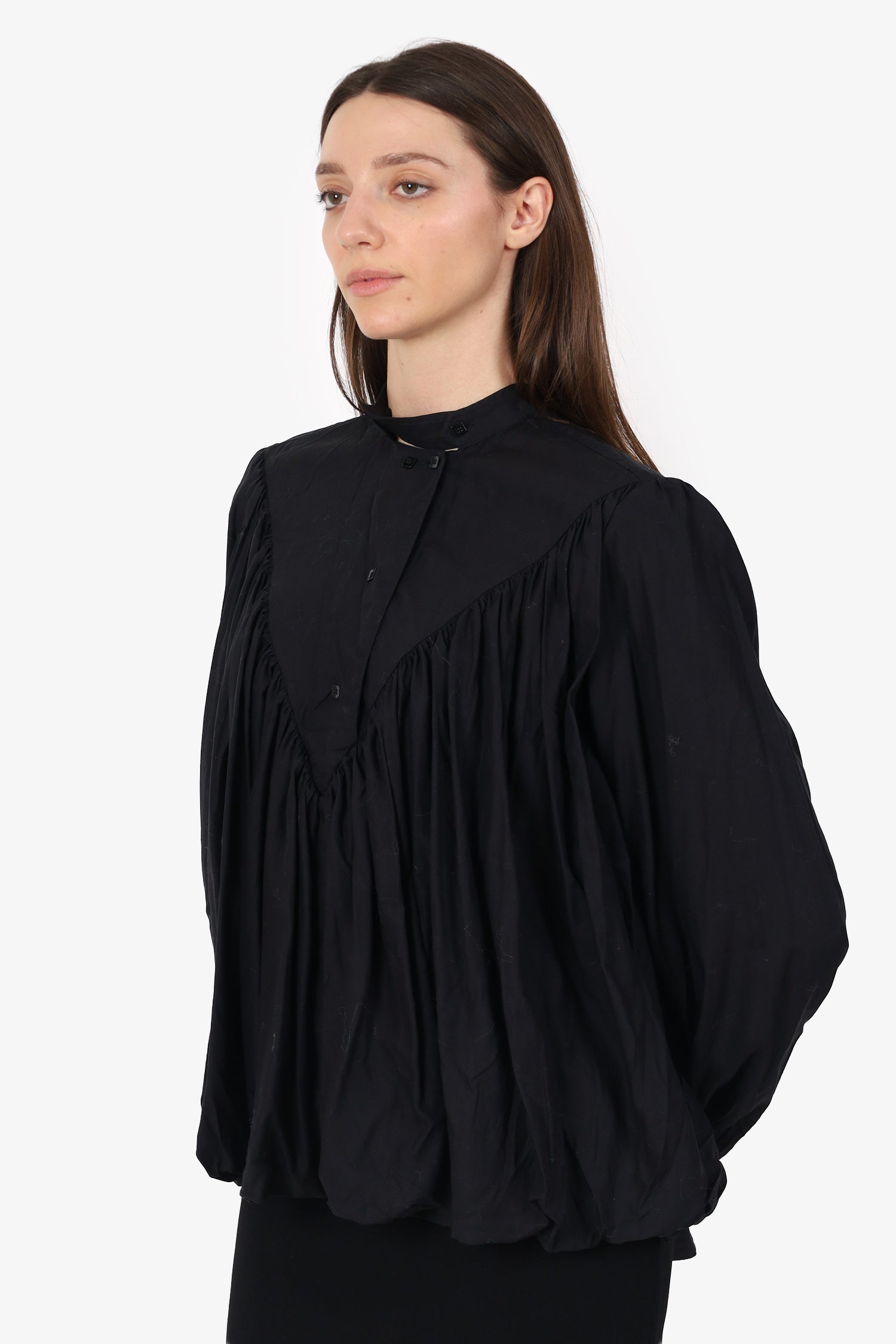 Palmer Harding Black Bubble Hem Long Sleeve Blouse Estimated Size S