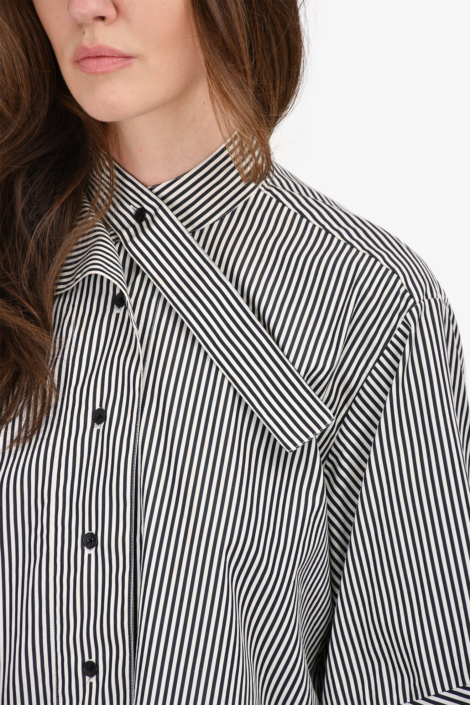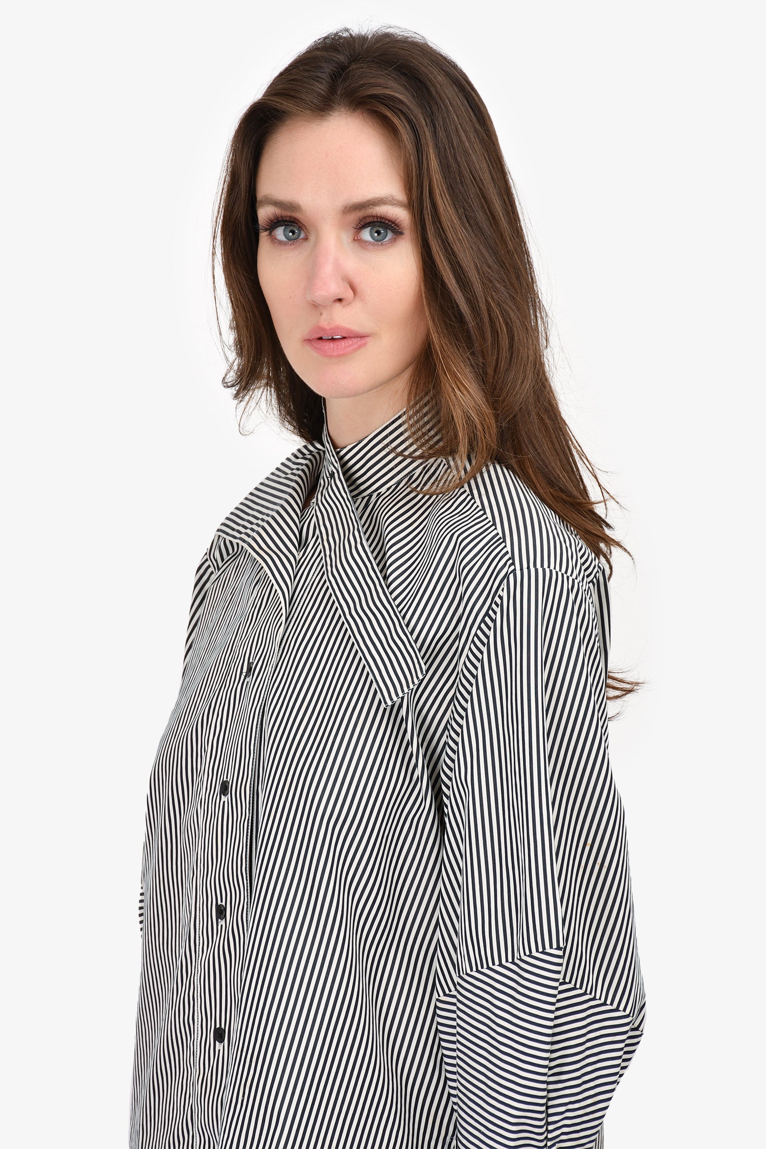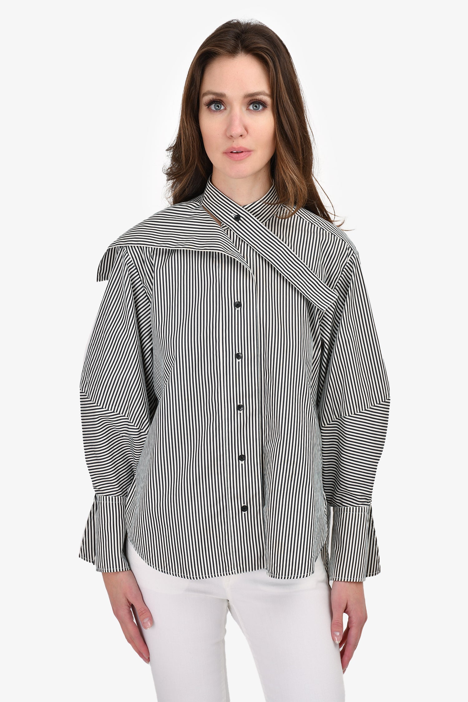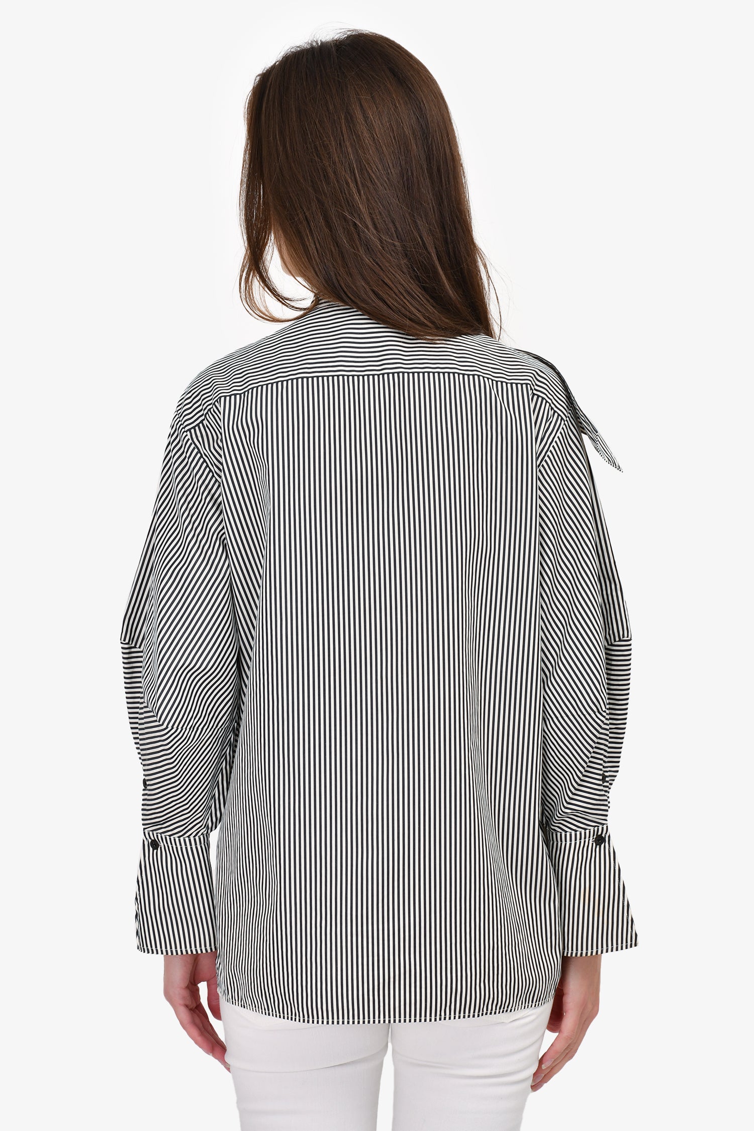 Refresh availabilityPalmer//Harding White/Navy Stripped Blouse. Front button-up closure. Button closure on the cuffs. Neck tie detail.