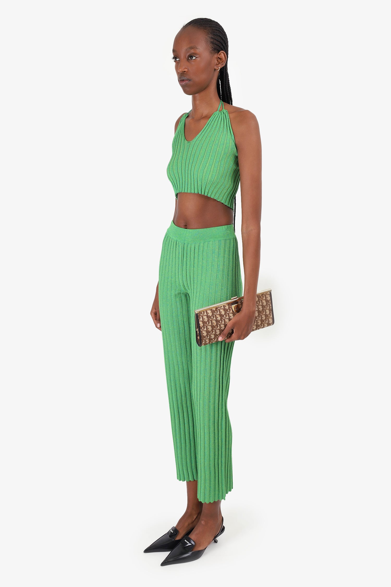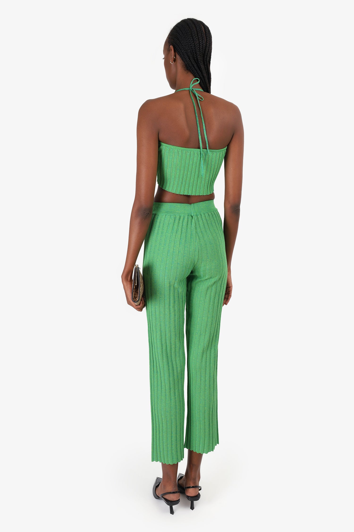 Refresh availabilityPaloma Wool Green Ribbed Crop Top + Ribbed Pants Set. Tie halter neckline. Pull-on. Tonal stitching.