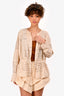 Pas De Calais Beige Linen Calligraphy Printed Top Size 36
