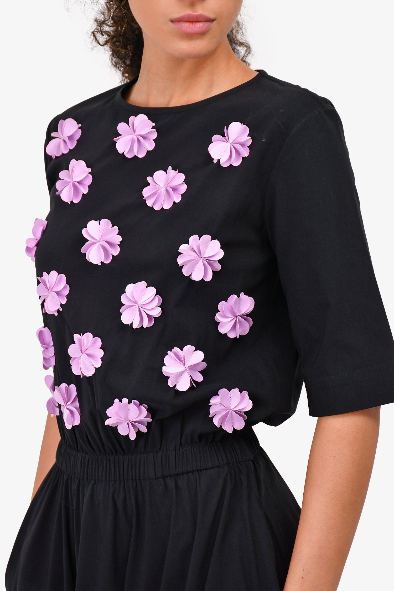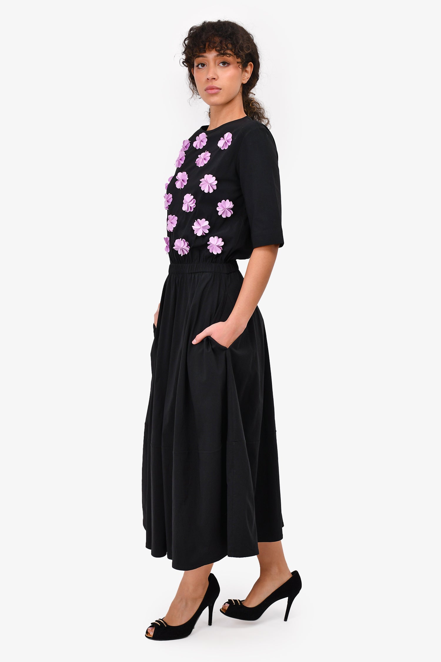 Paskal Black/Purple Flower Appliqué Maxi Dress Est. Size S