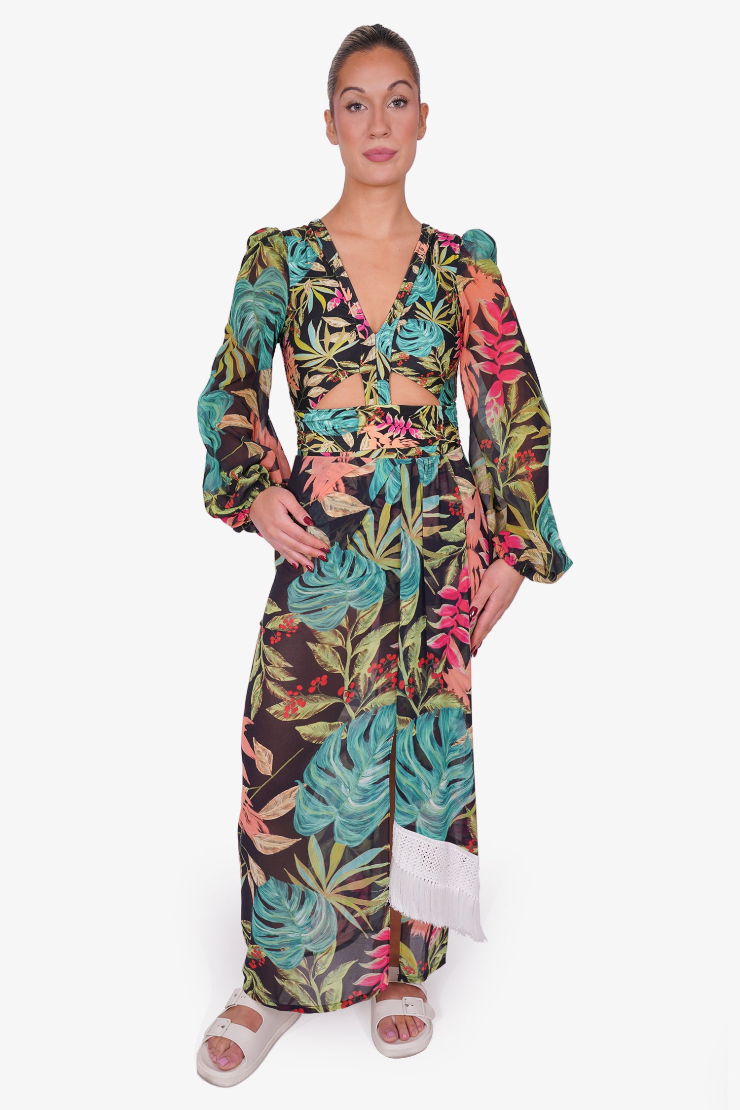 PatBO Black Tropicalia Fringe Trim Beach Skirt Size 6