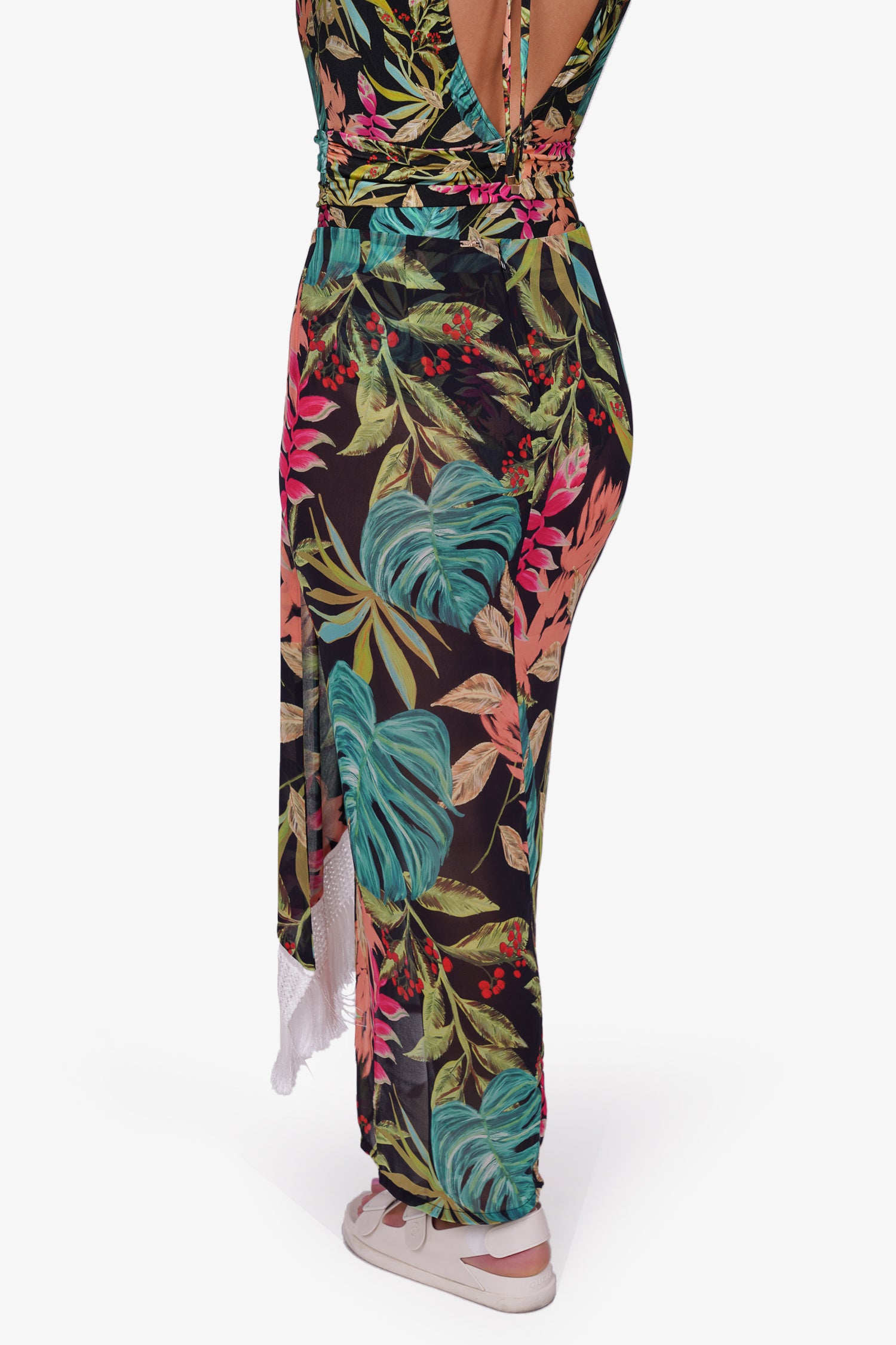 Refresh availabilityPatBO Black Tropicalia Fringe Trim Beach Skirt. Elasticized waist. Unlined. Tonal stitching.