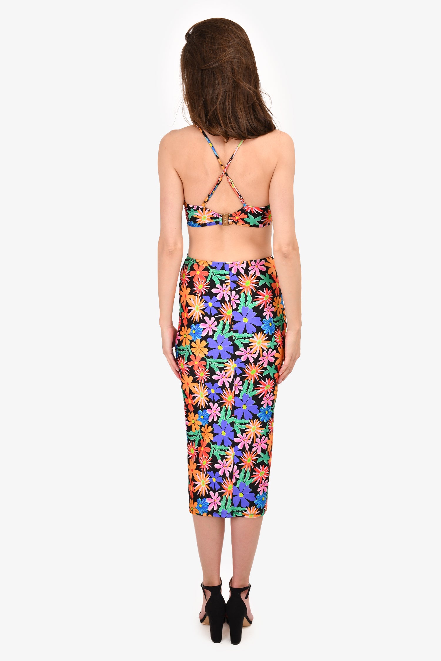Refresh availabilityPatbo Orange/Black Floral Print Cut-Out Midi Length Dress. Padded cups. Adjustable straps. Rear clasp closure. Unlined.