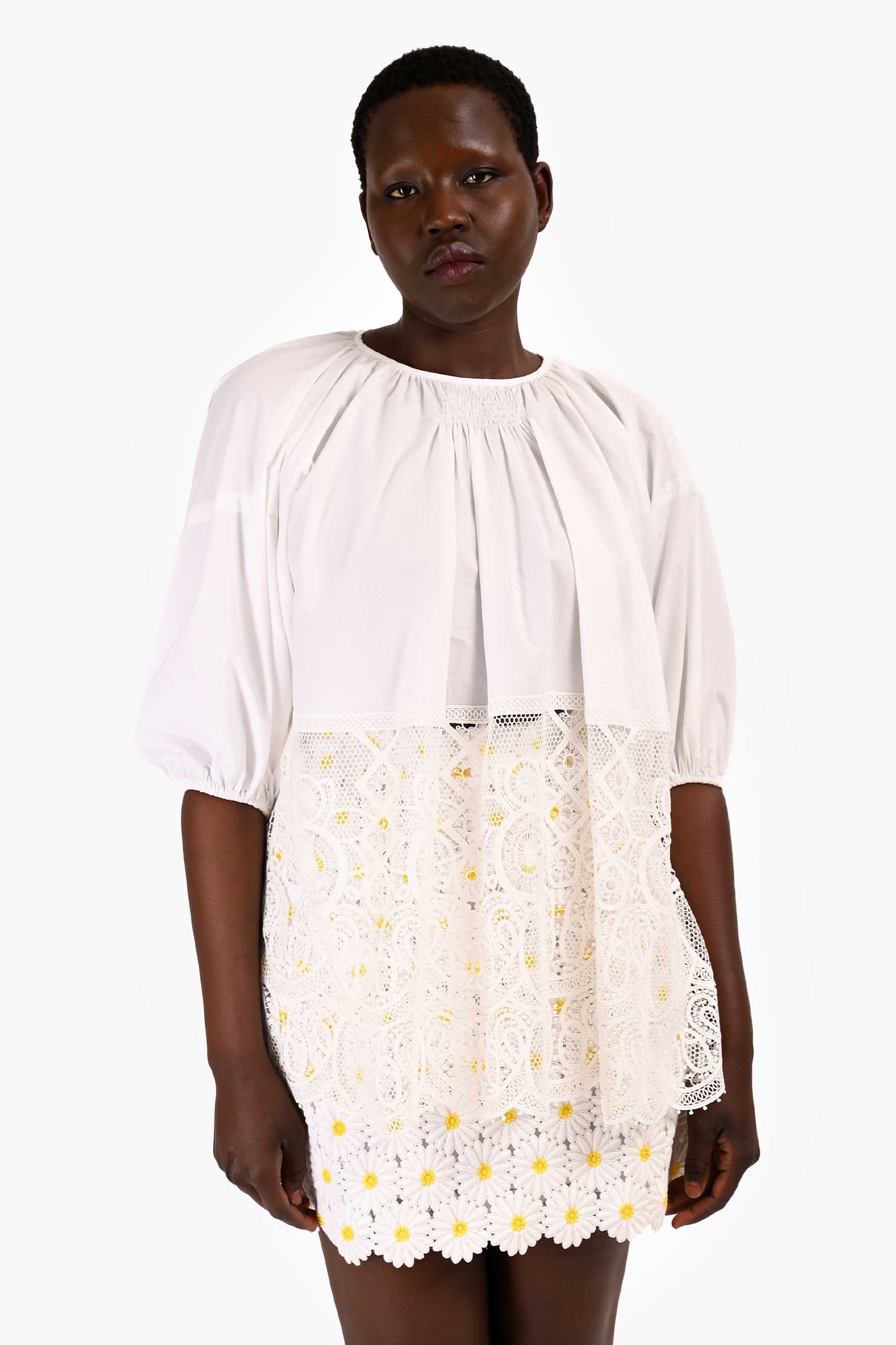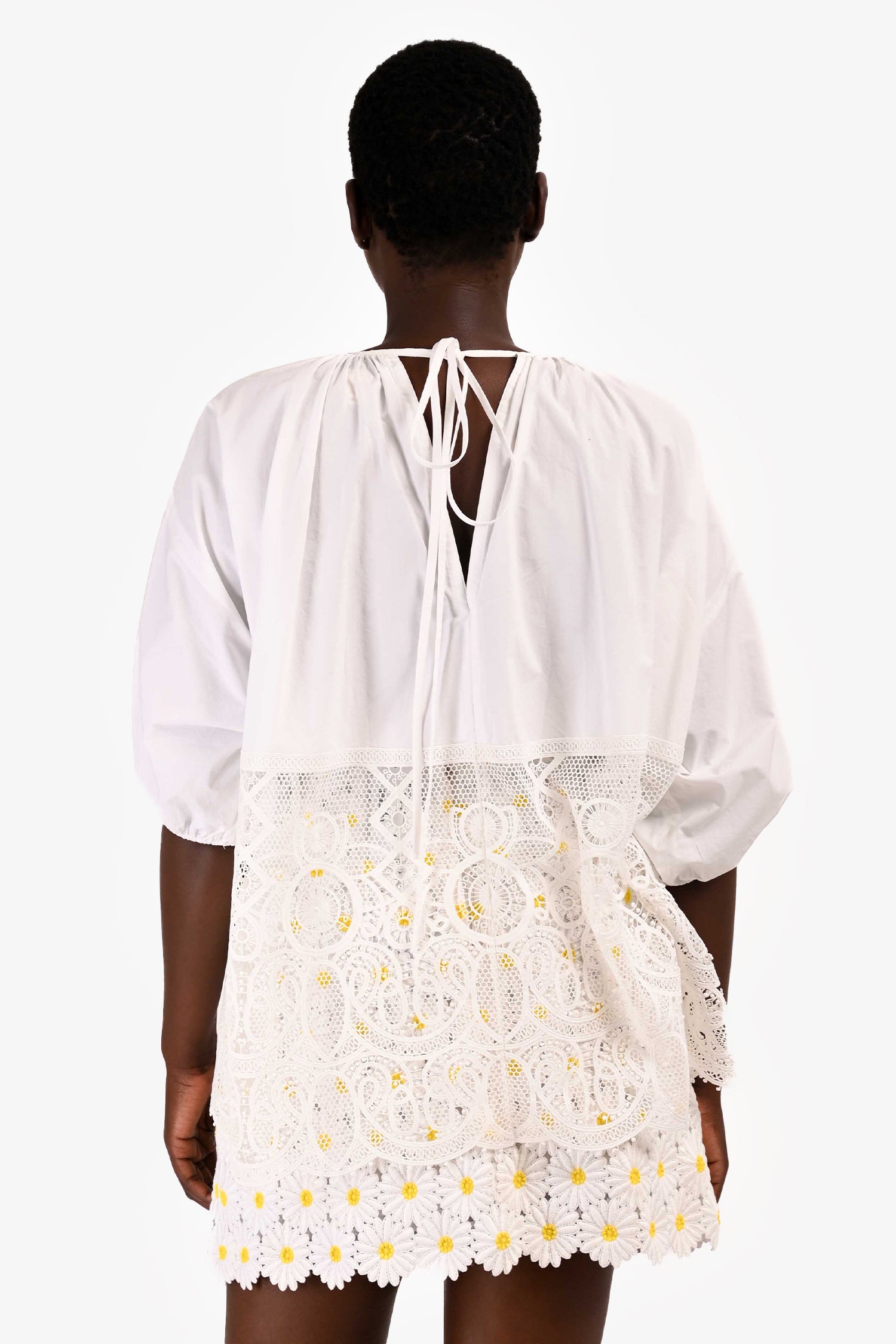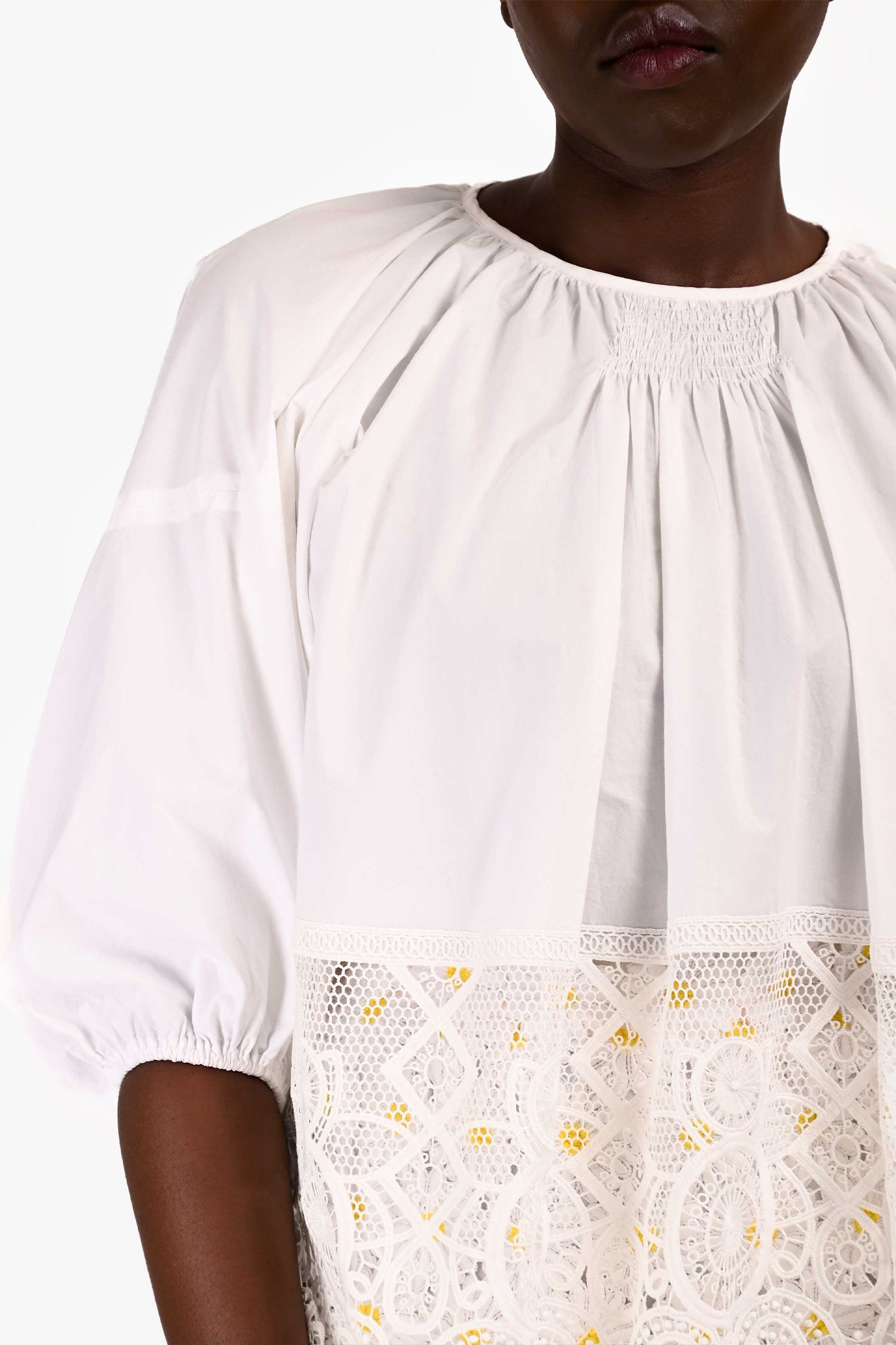 Refresh availabilityPatou White Cotton Blend Eyelet Finish Top. Back rear ties. Puffed sleeves. Eyelet embroidery on the hem. Tonal stitching.