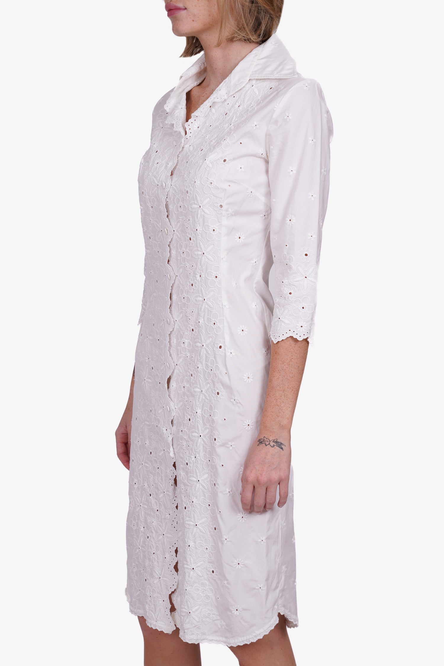 Paul Smith White Cotton Eyelet Button Down Midi Dress Size 40