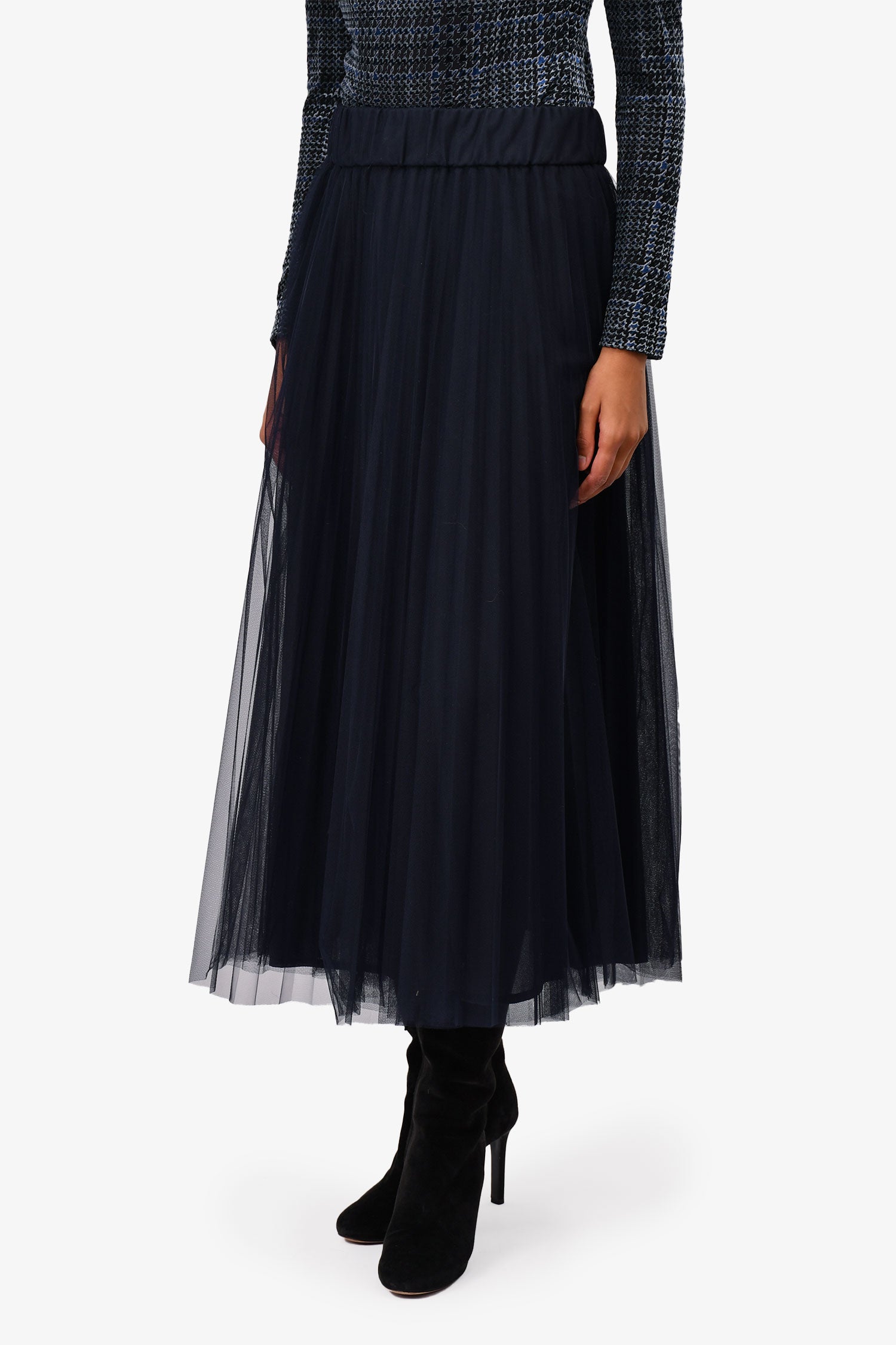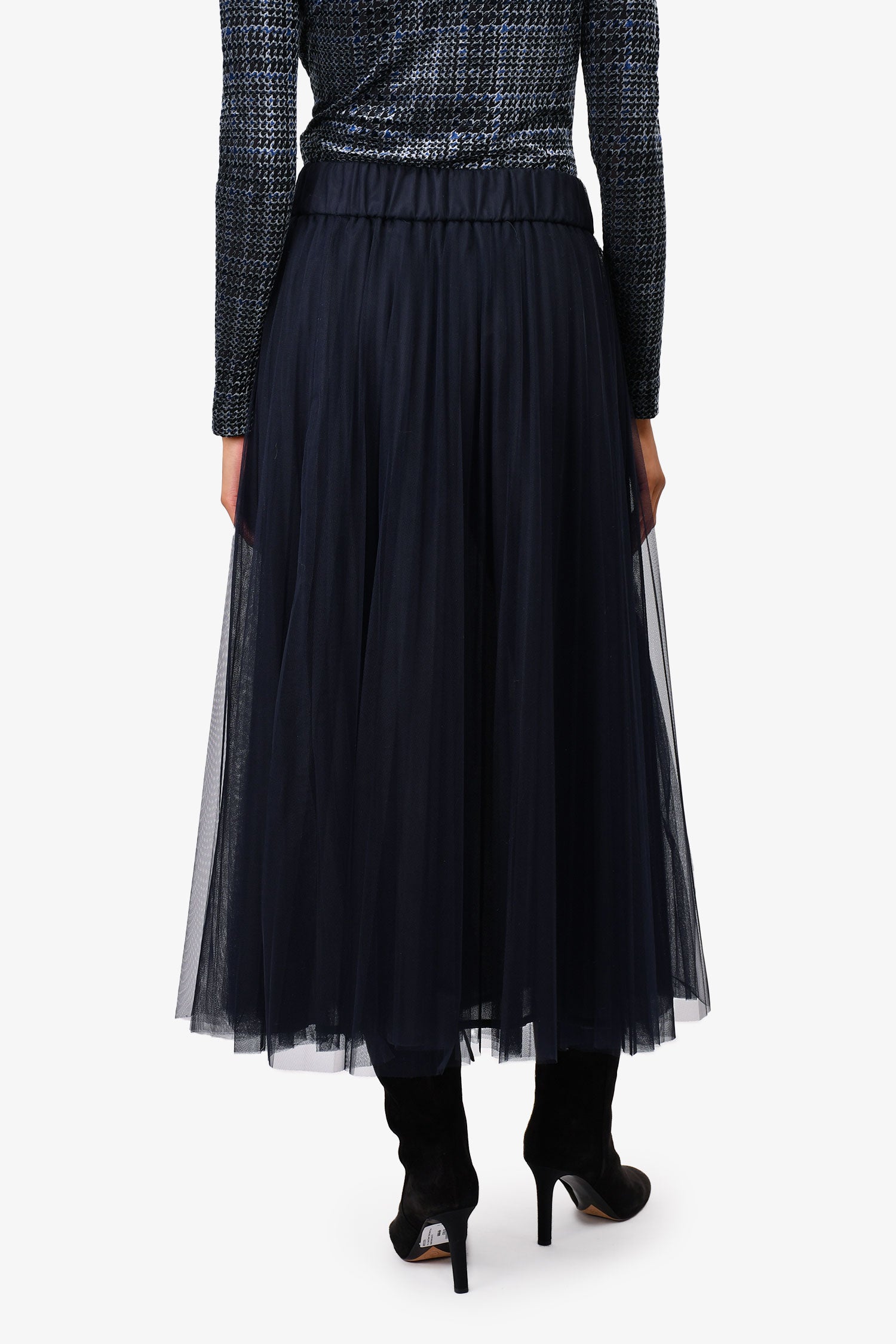 Refresh availabilityPeserico Navy Tulle Midi Skirt. Elasticized waist. Lined. Pull-on.