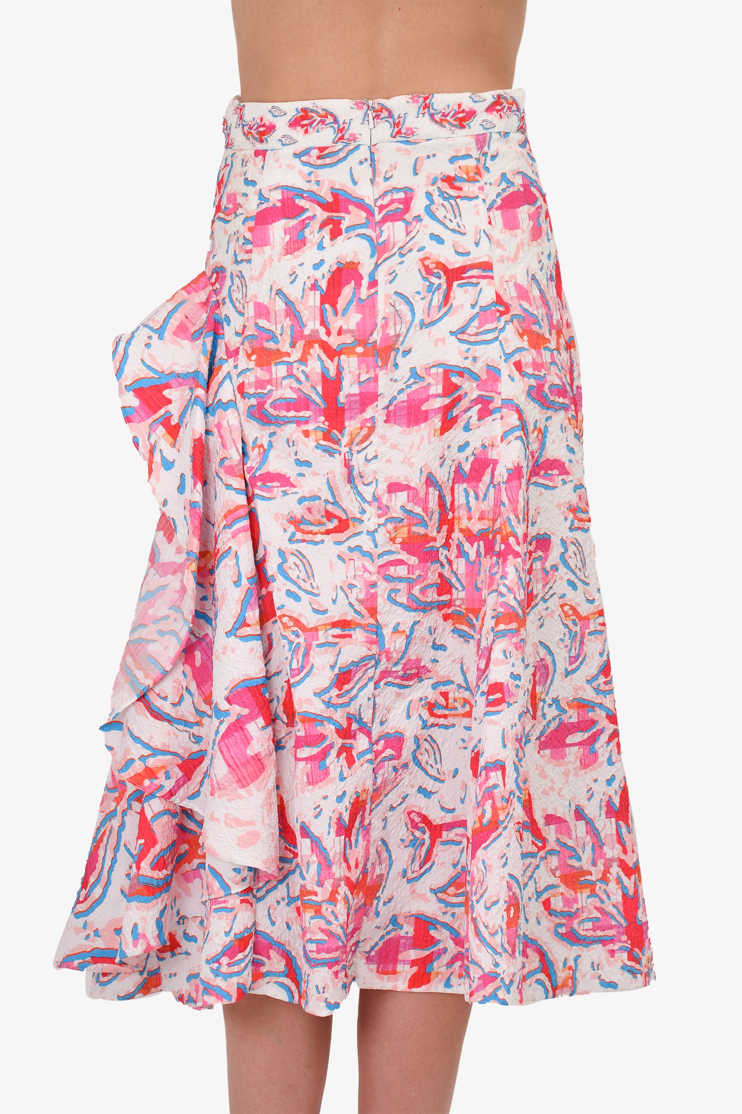 Refresh availabilityPeter Pilotto Pre-Fall 2017 White/Pink Printed Ruffle Midi Skirt. Rear zip closure. Lined.