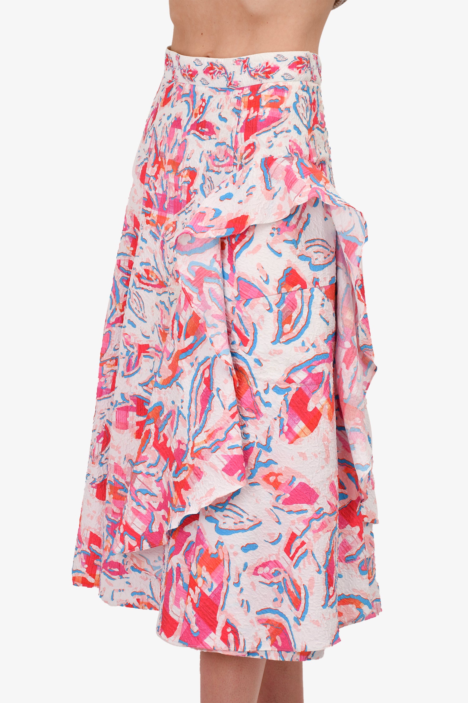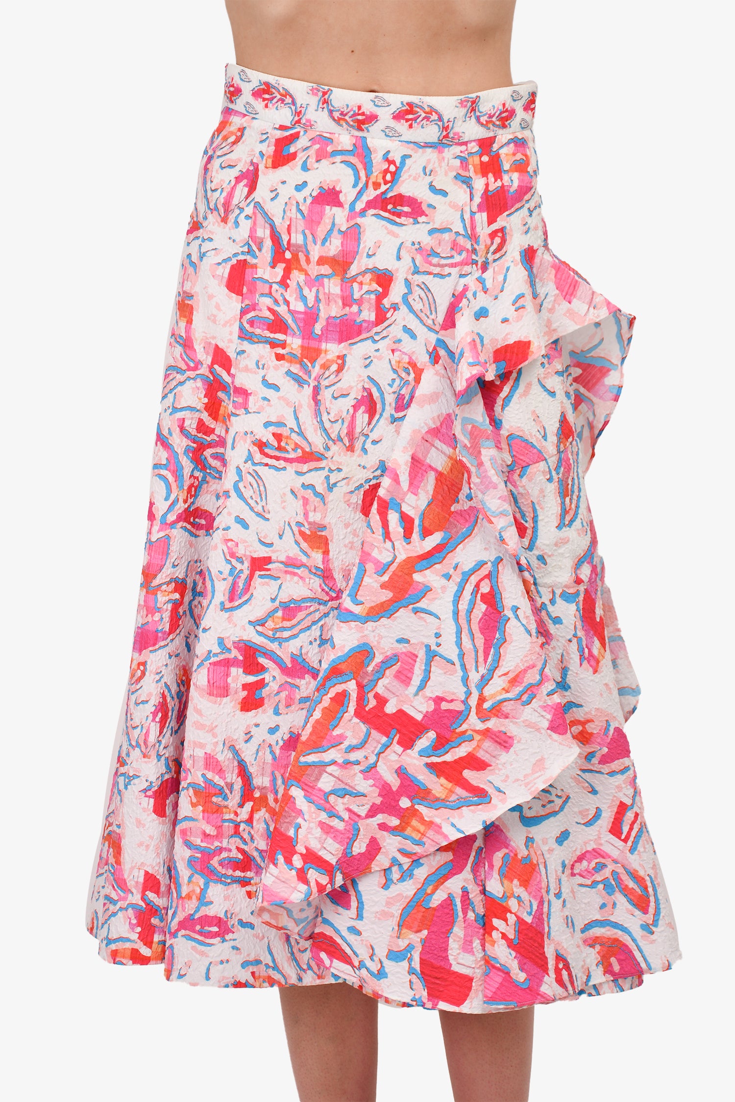 Peter Pilotto Pre-Fall 2017 White/Pink Printed Ruffle Midi Skirt Size 8