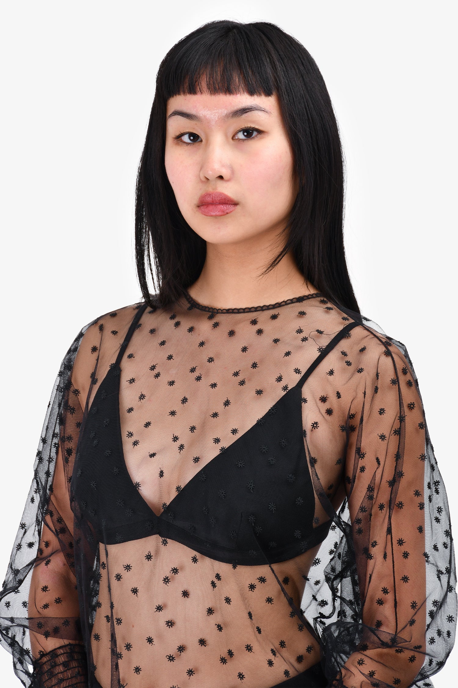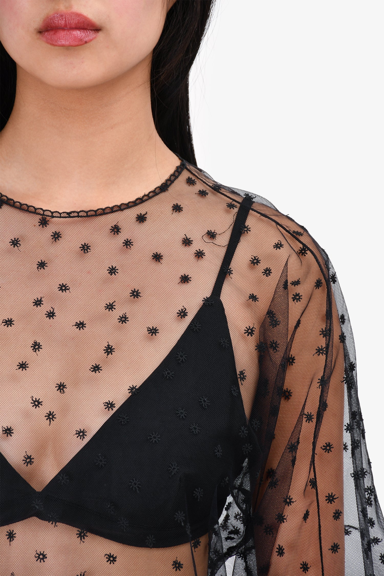 Philosophy Black Mesh Sheer Open Back Top Estimated Est. Size S