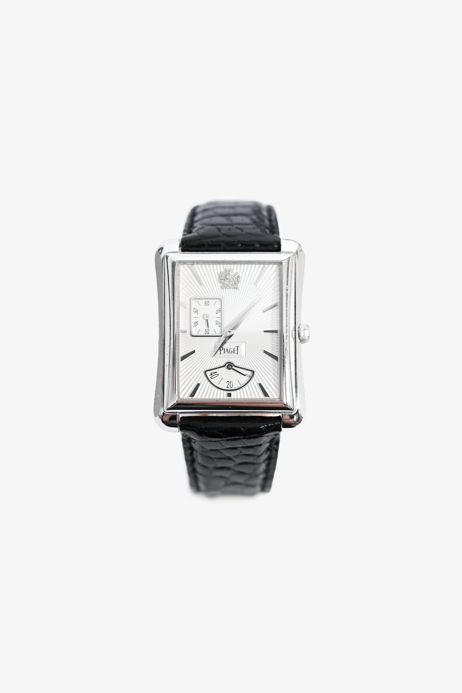 Piaget White Gold Black Leather Strap Guilloche Dial 'Emperador' Automatic Watch