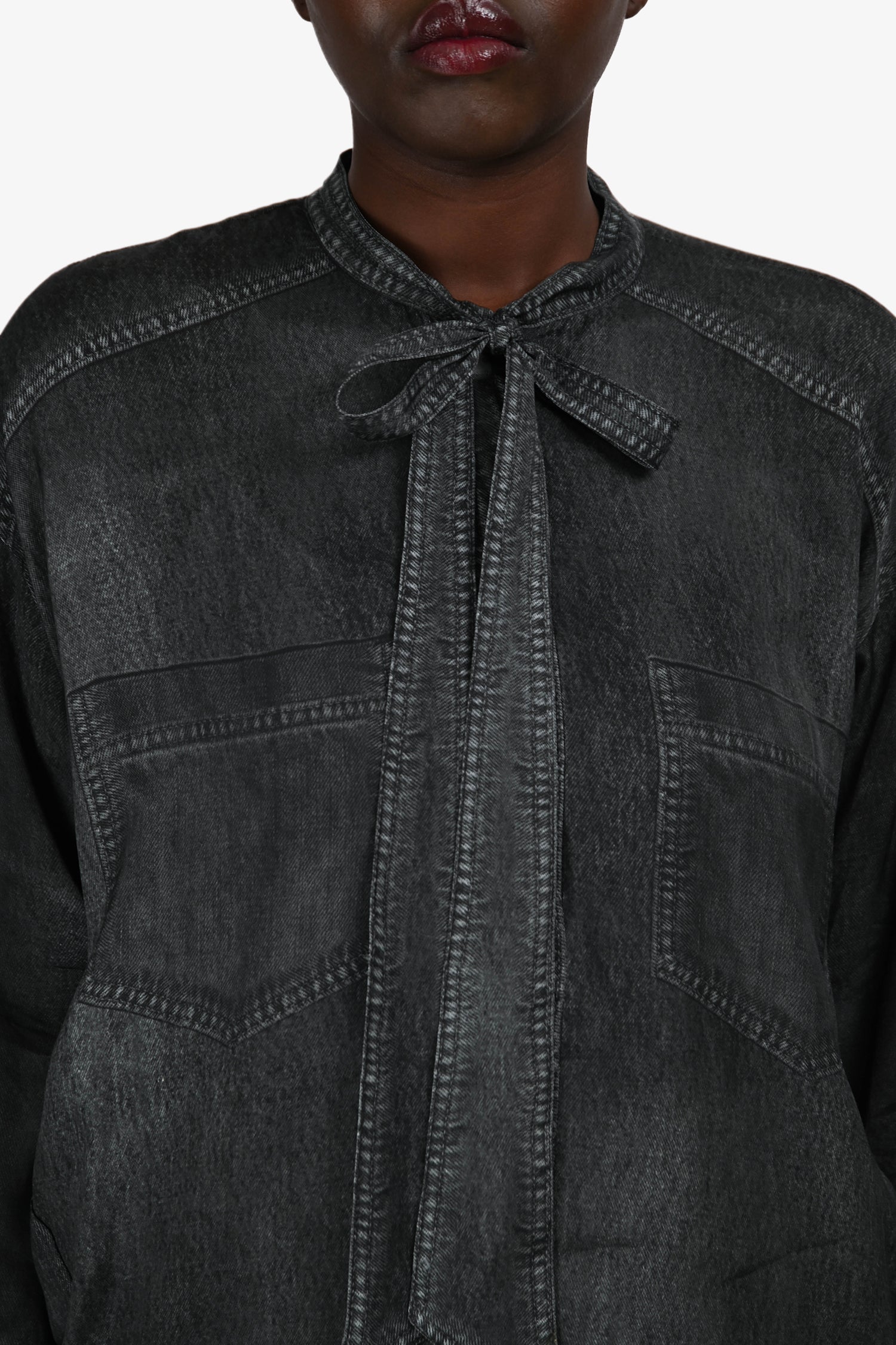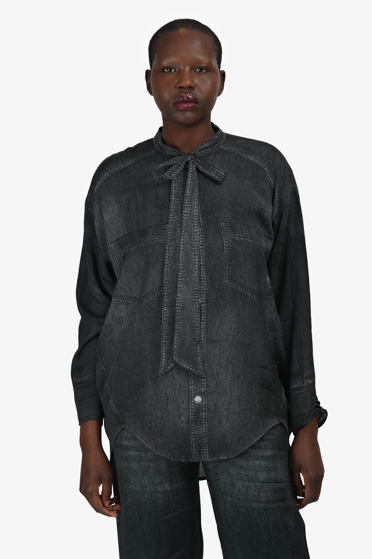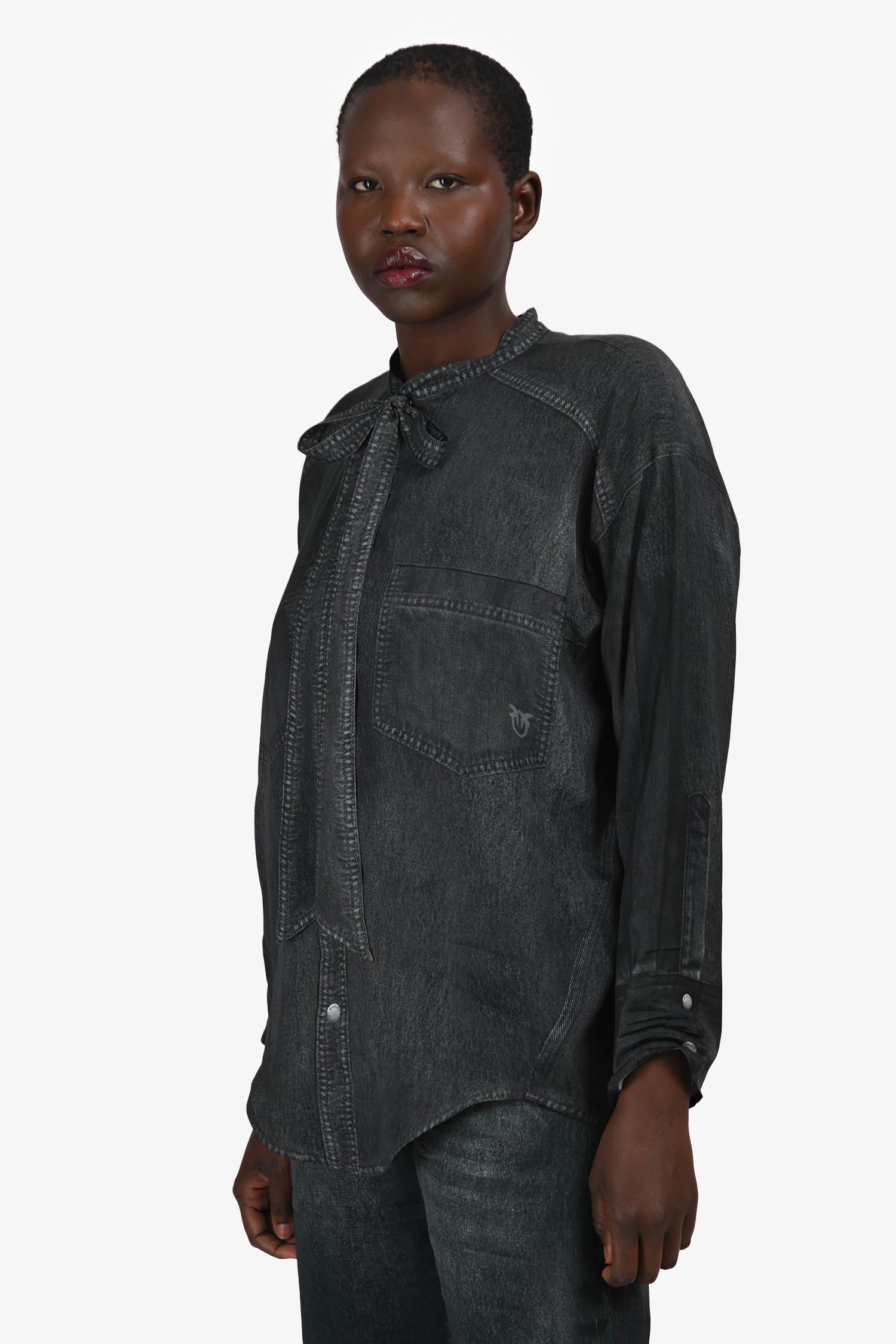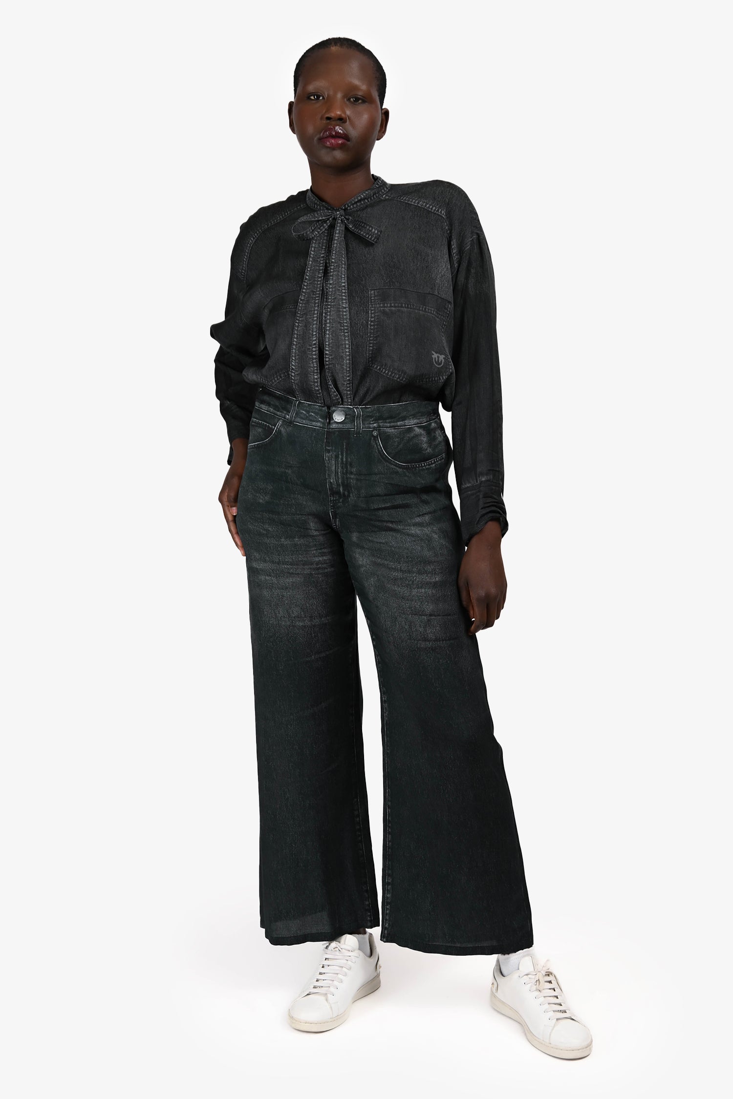 Refresh availabilityPinko Denim Print Blouse + Pants Set. Blouse: Slip-on. Round neckline with self-tie. Front zipper closure. Pants: Pull-on. Front zip fly closure. Both are unlined with tonal stitching.