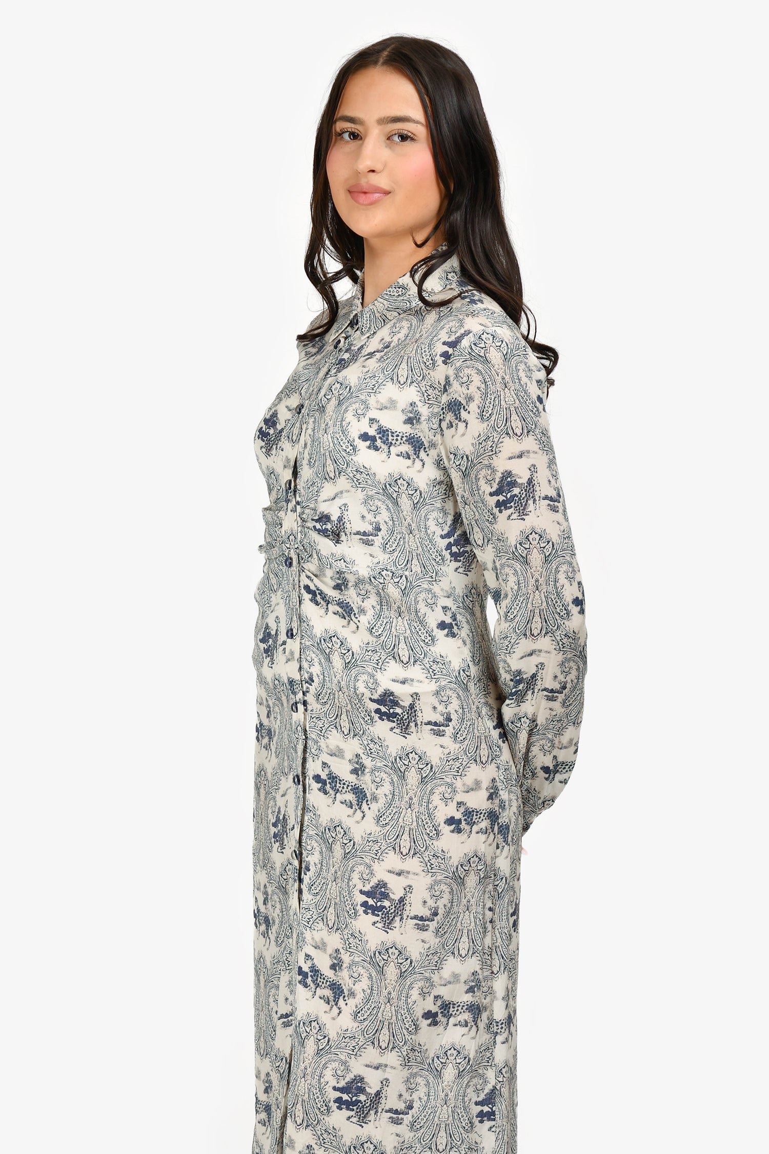 Pinko White/Blue Collared Button Down Long Sleeve Maxi Dress Size 6