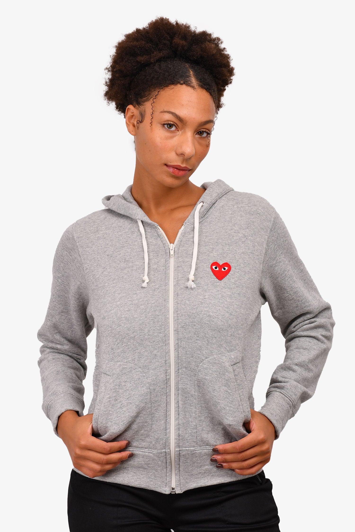 Refresh availabilityPlay Comme des Garcons Grey Zip-Up Sweater with Heart Patch. Front pockets. Terry cloth interior.