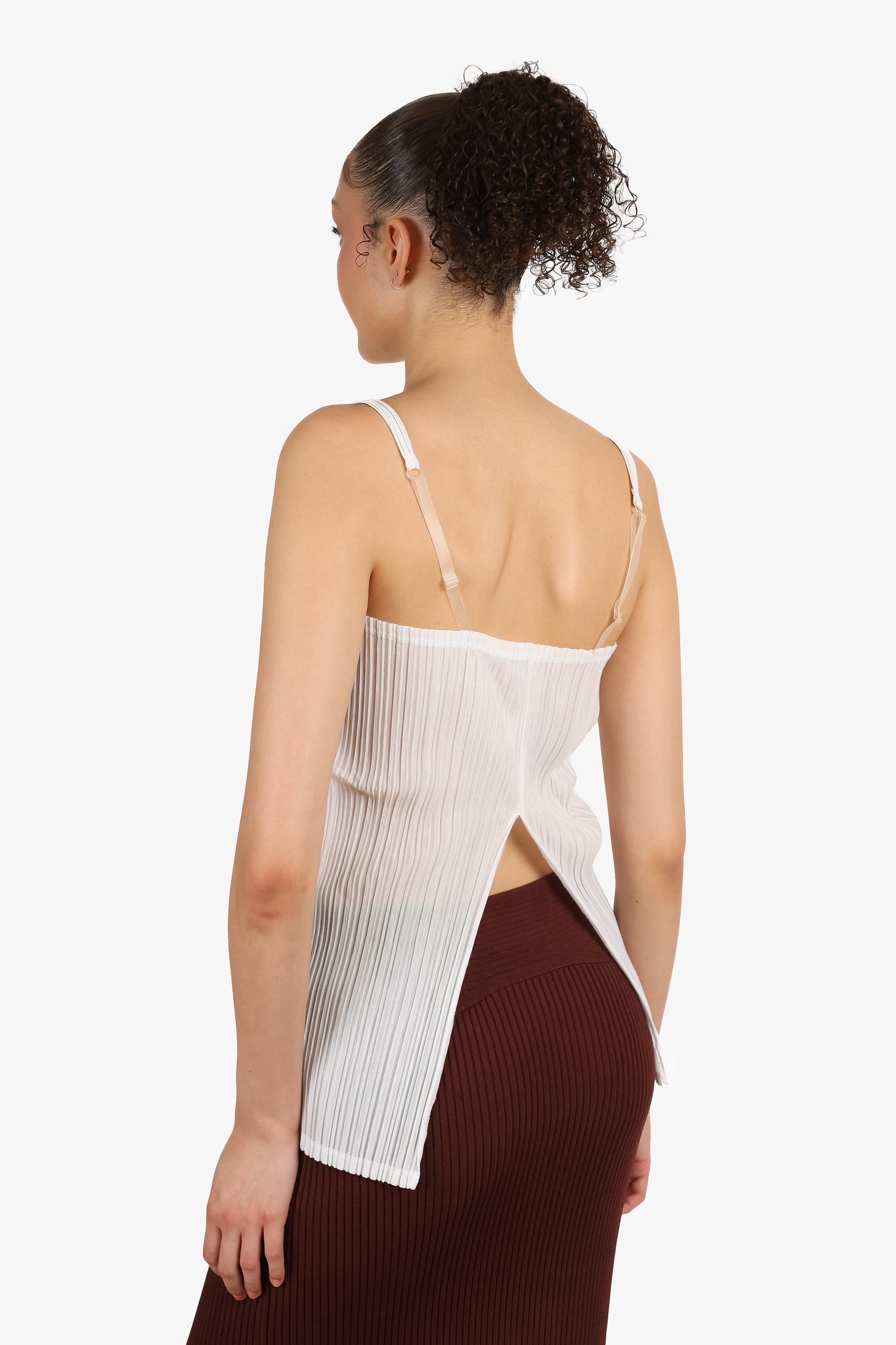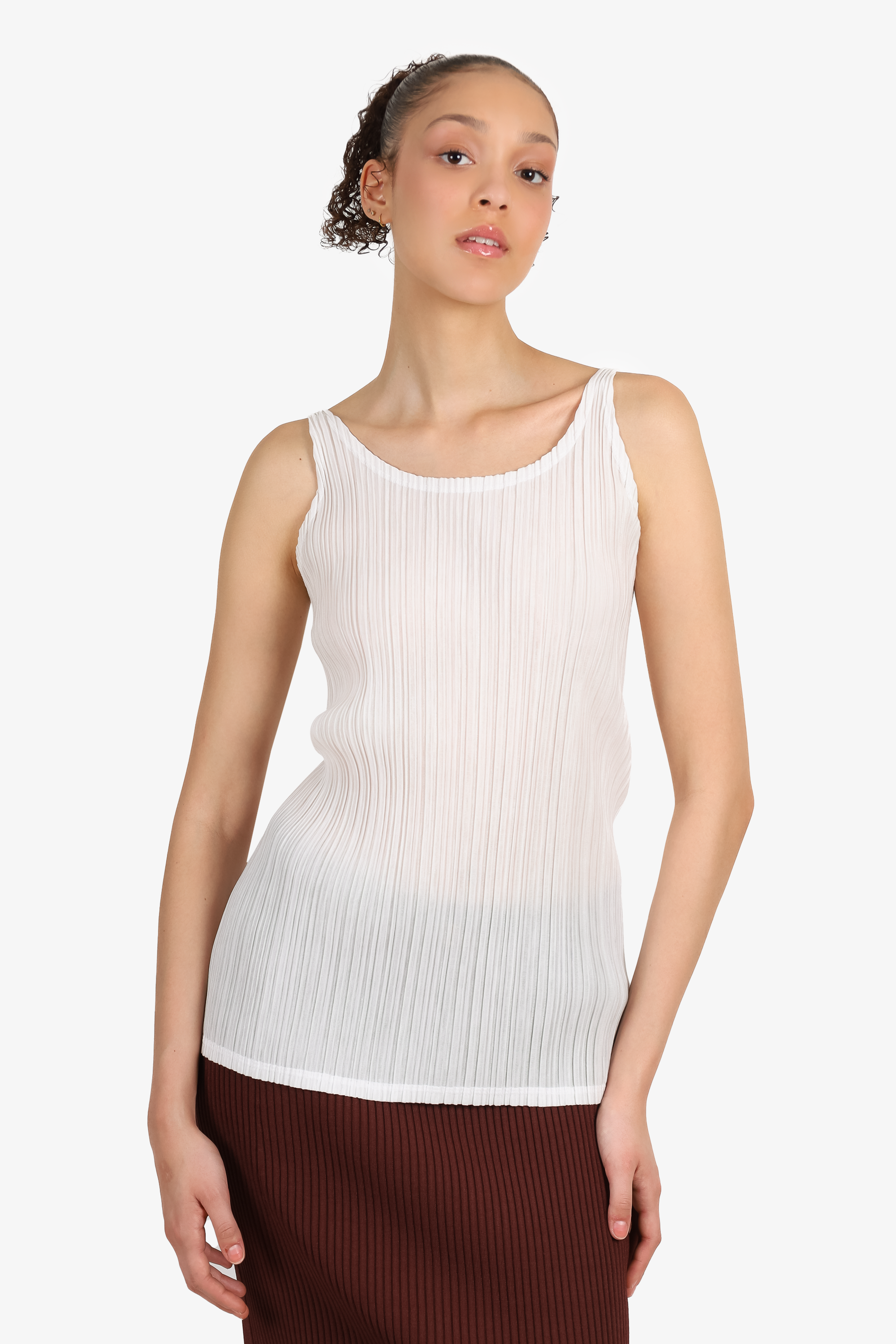 Refresh availabilityPleats Please Issey Miyake White Pleated Tank Top. Pull-on. Clear adjustable straps. Tonal stitching.
