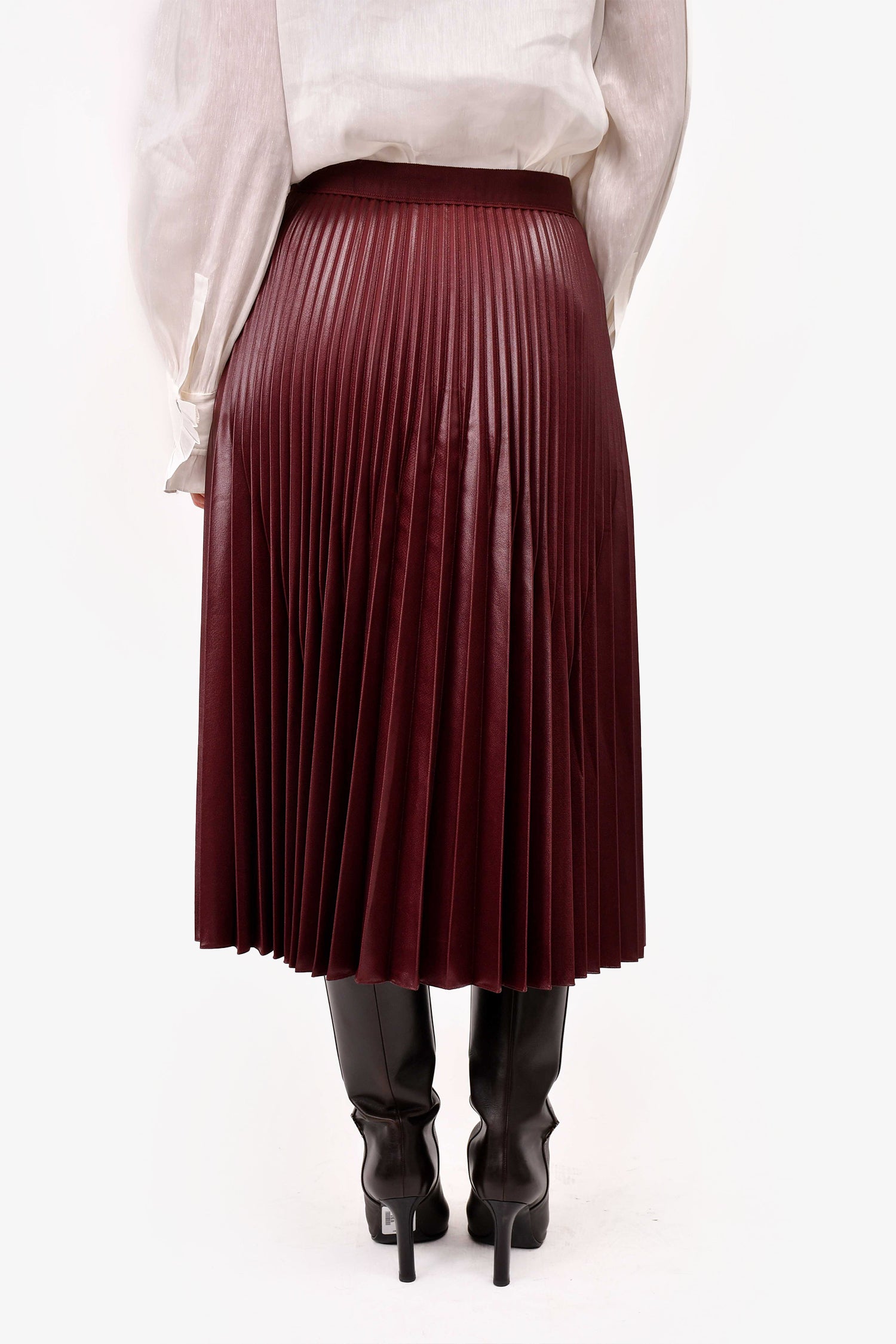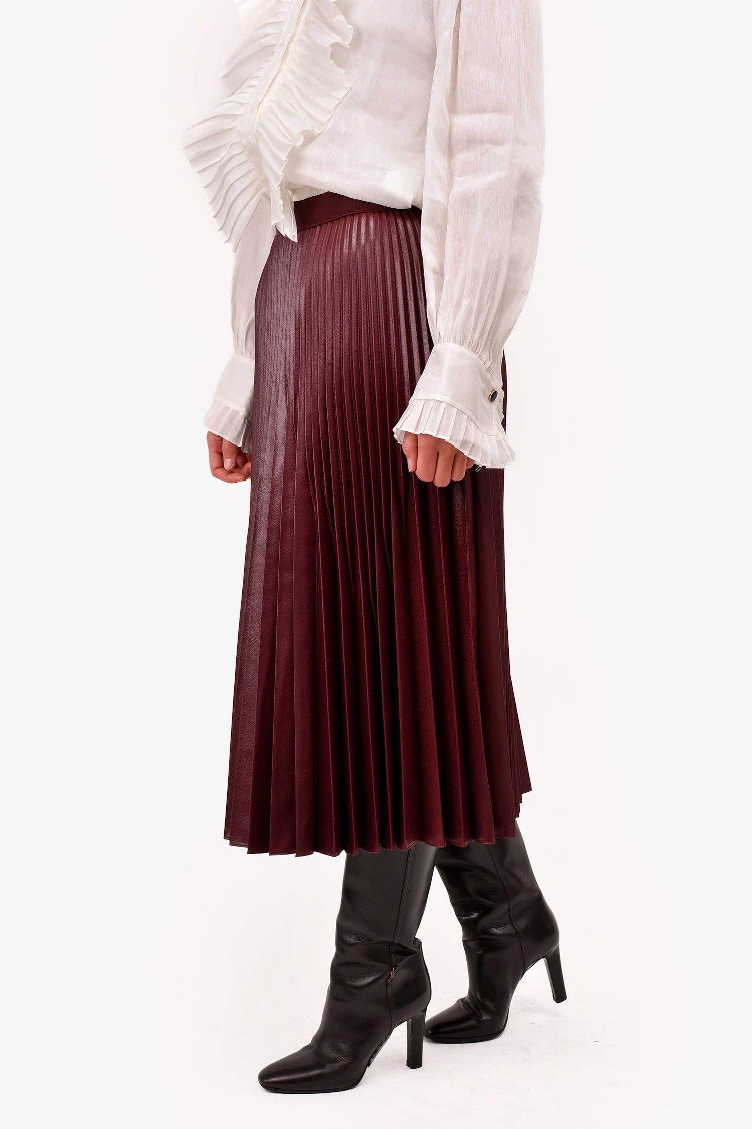 Refresh availabilityPorts Burgundy Faux Leather Pleated Midi Skirt. Side hook and zip closure. Pleated details throughout. Unlined. Tonal stitching.
