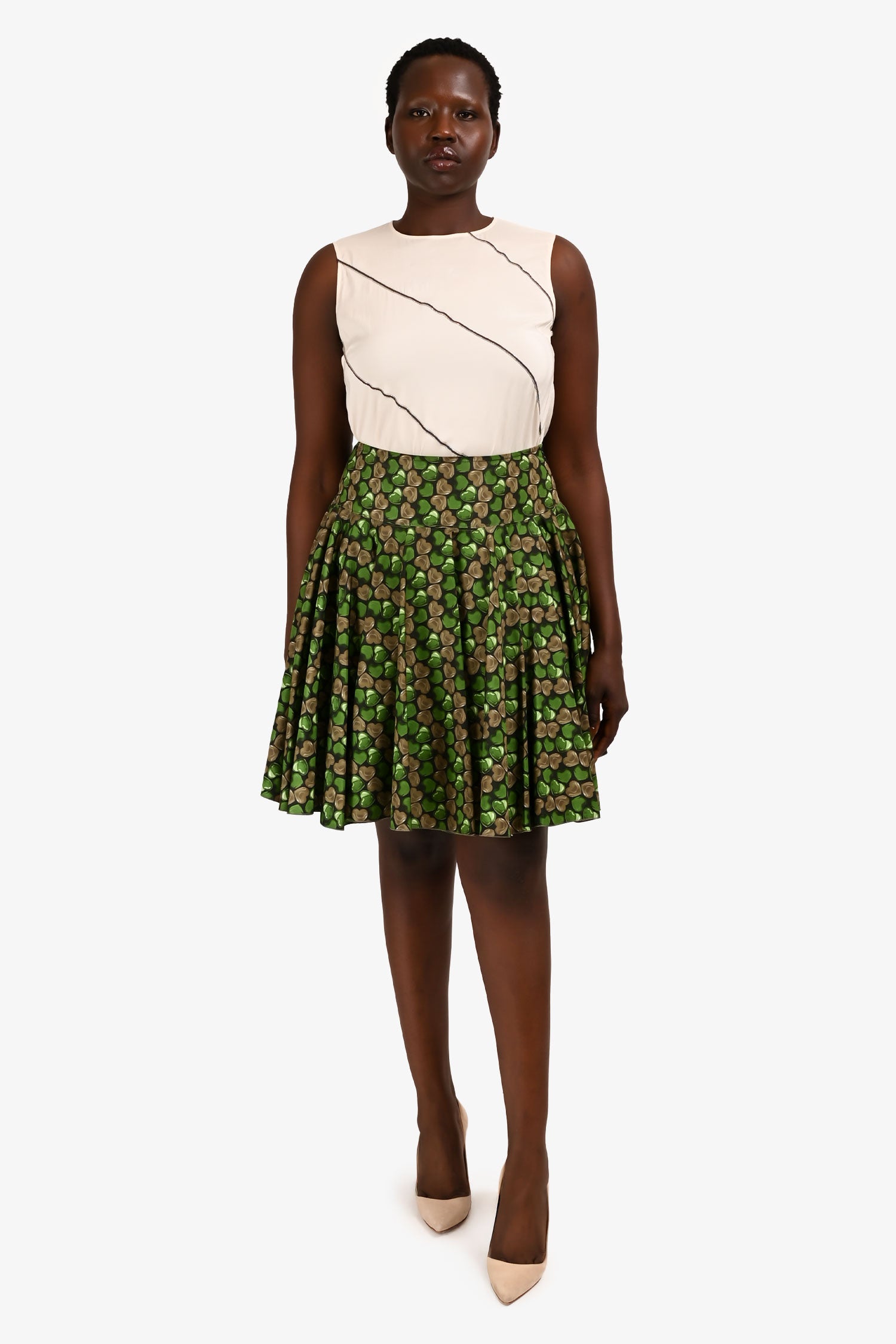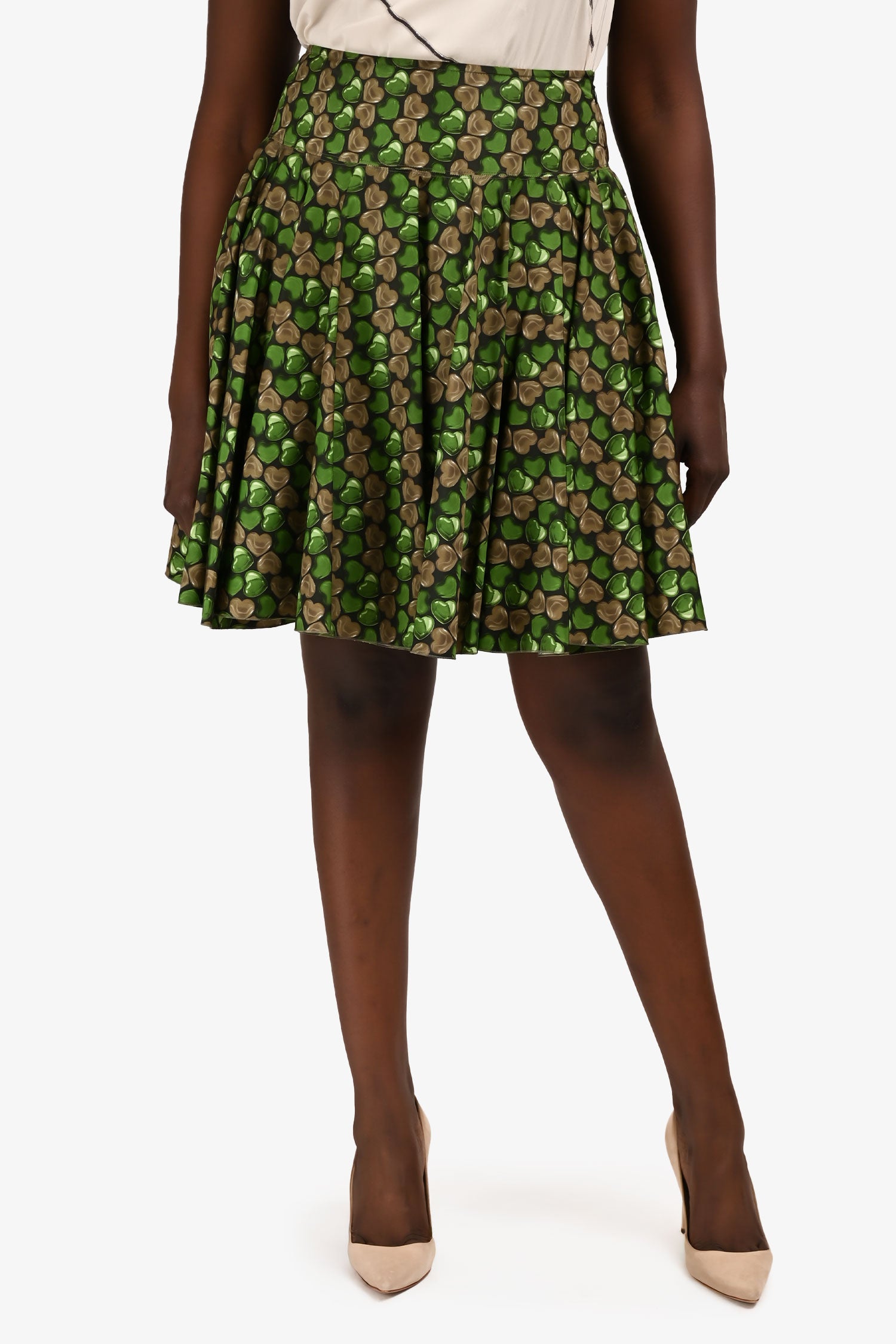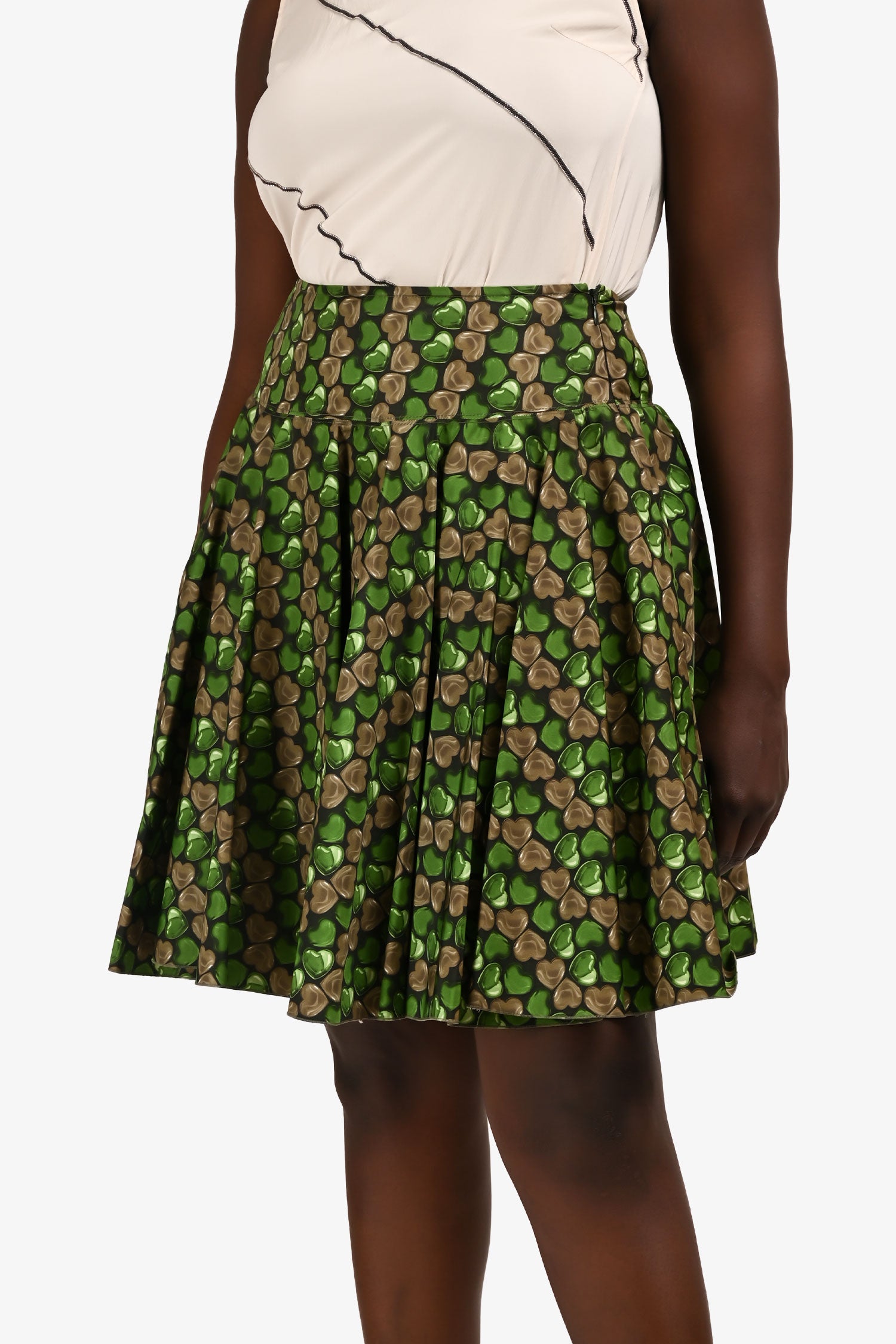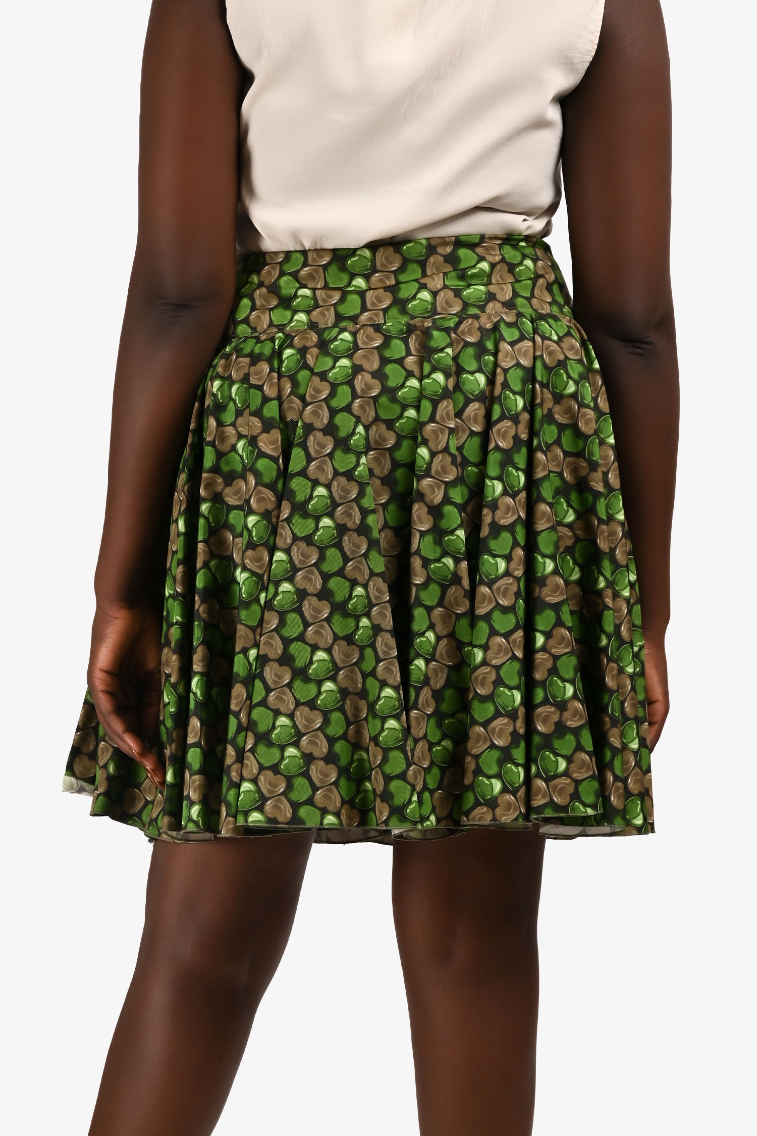 Prada 2008 Green/Brown Silk Heart Printed Skirt Size 42