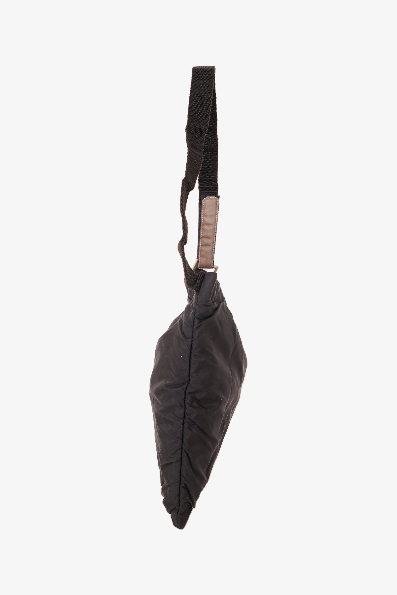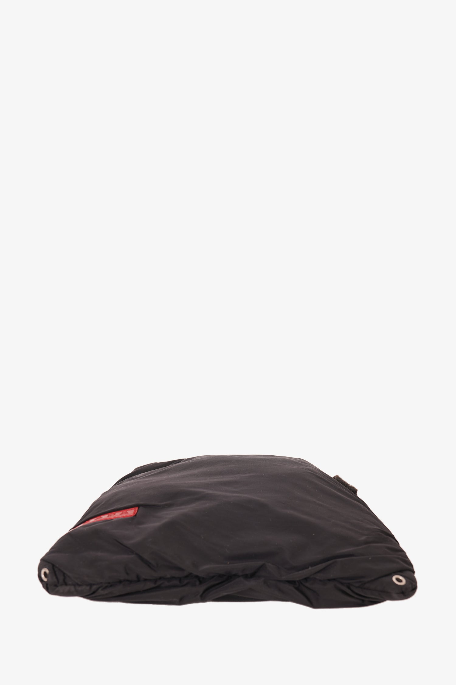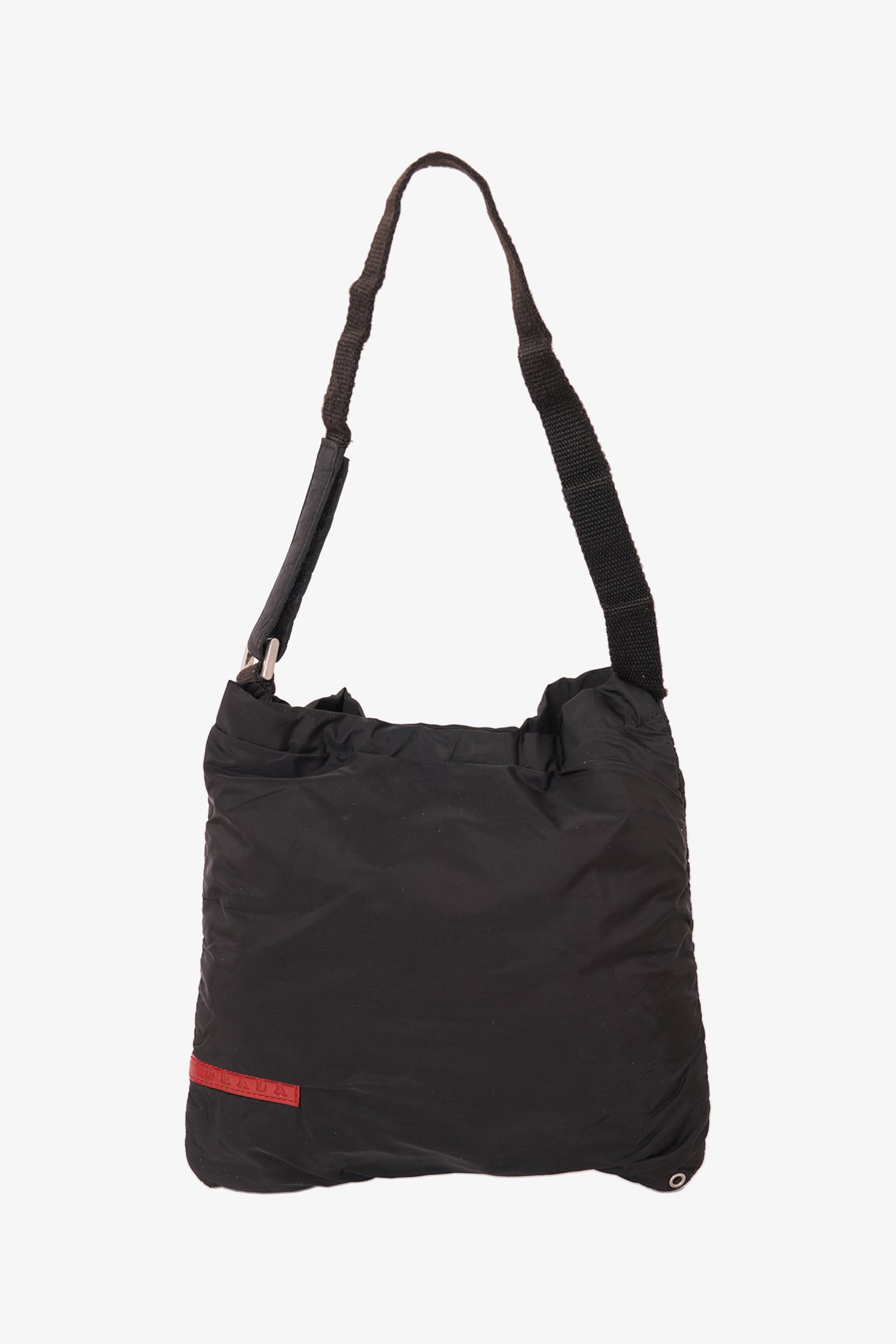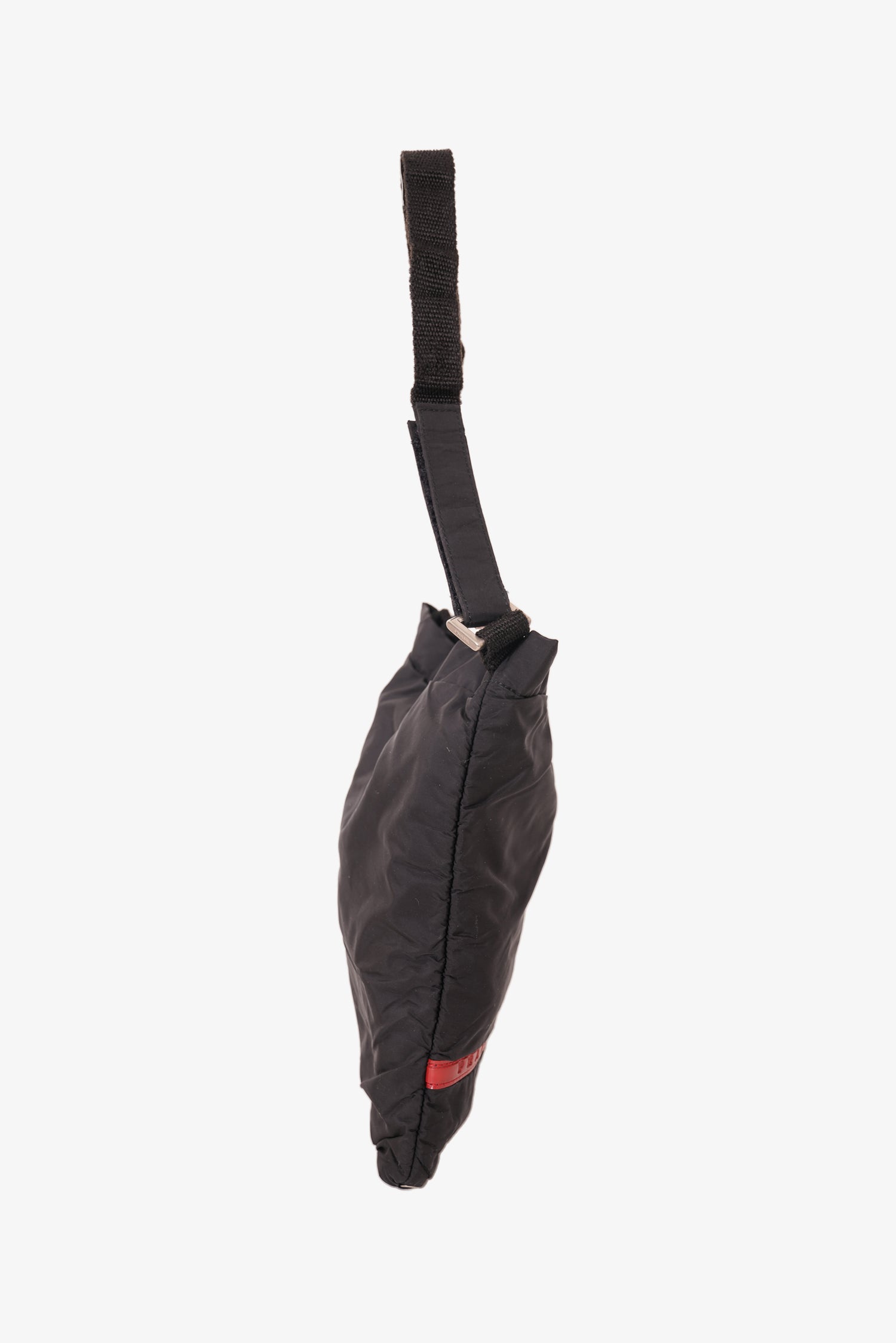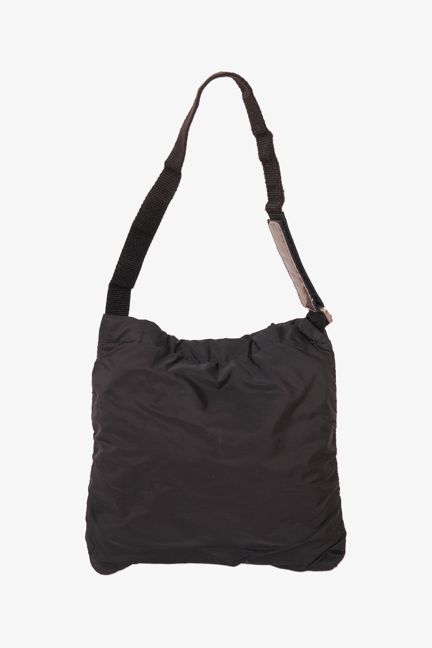 Refresh availabilityPrada 2010 Black Nylon Shoulder Bag Mini. Velcro detail on strap. Top velcro closure. Silver-toned hardware. Tonal stitching.