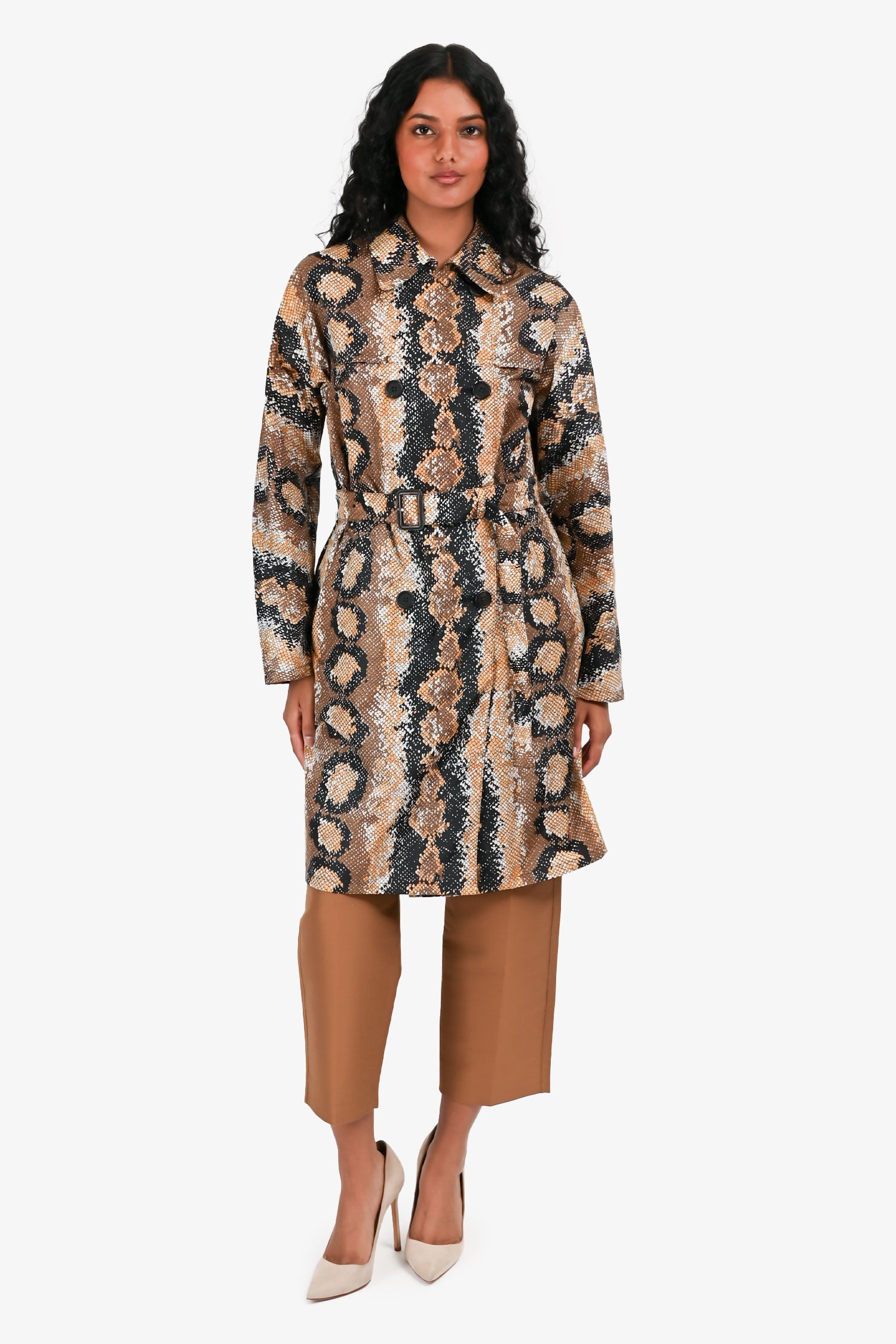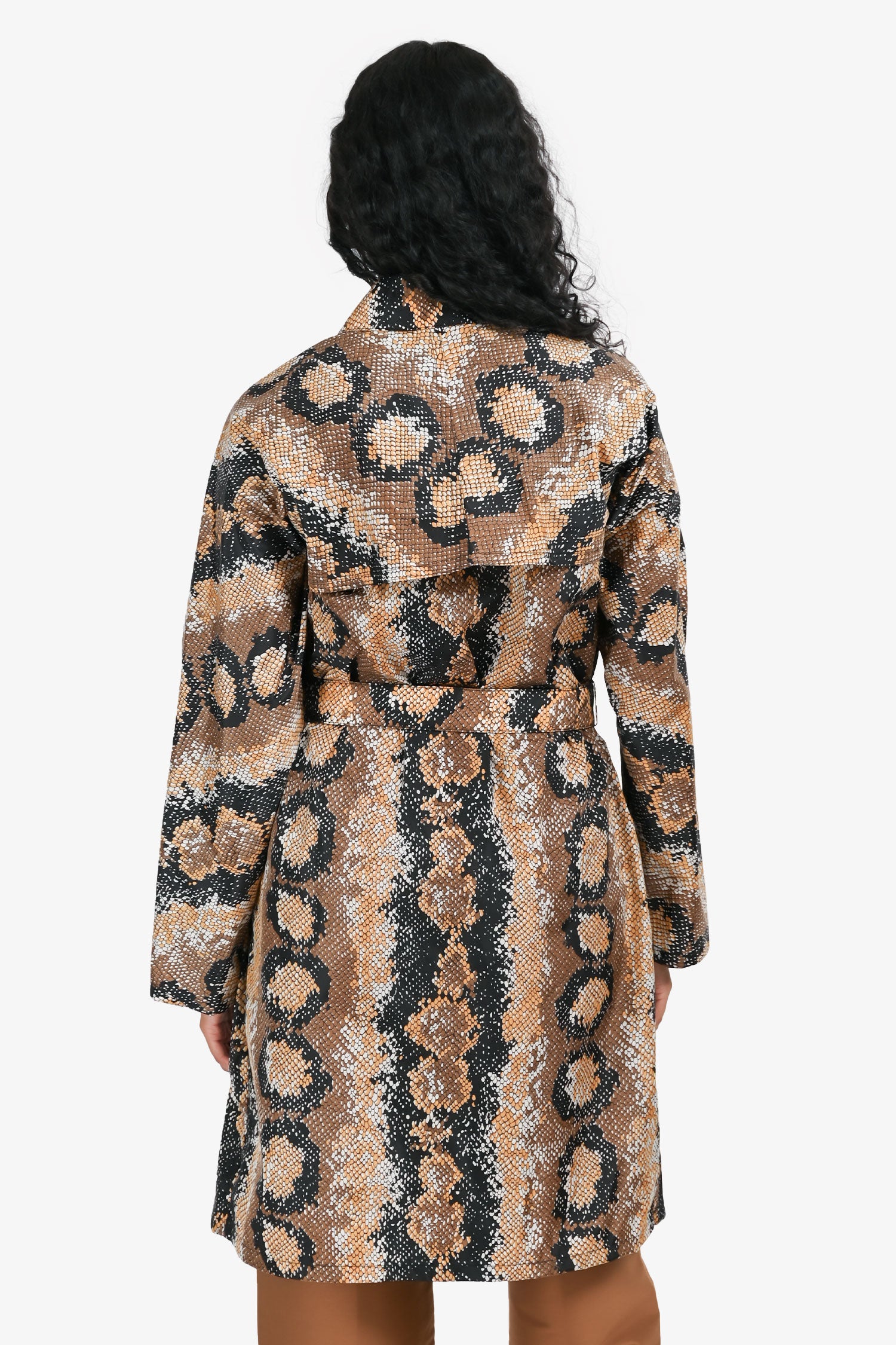 Prada 2015 Brown Animal Print Nylon Belted Midi Trench Coat Size 36