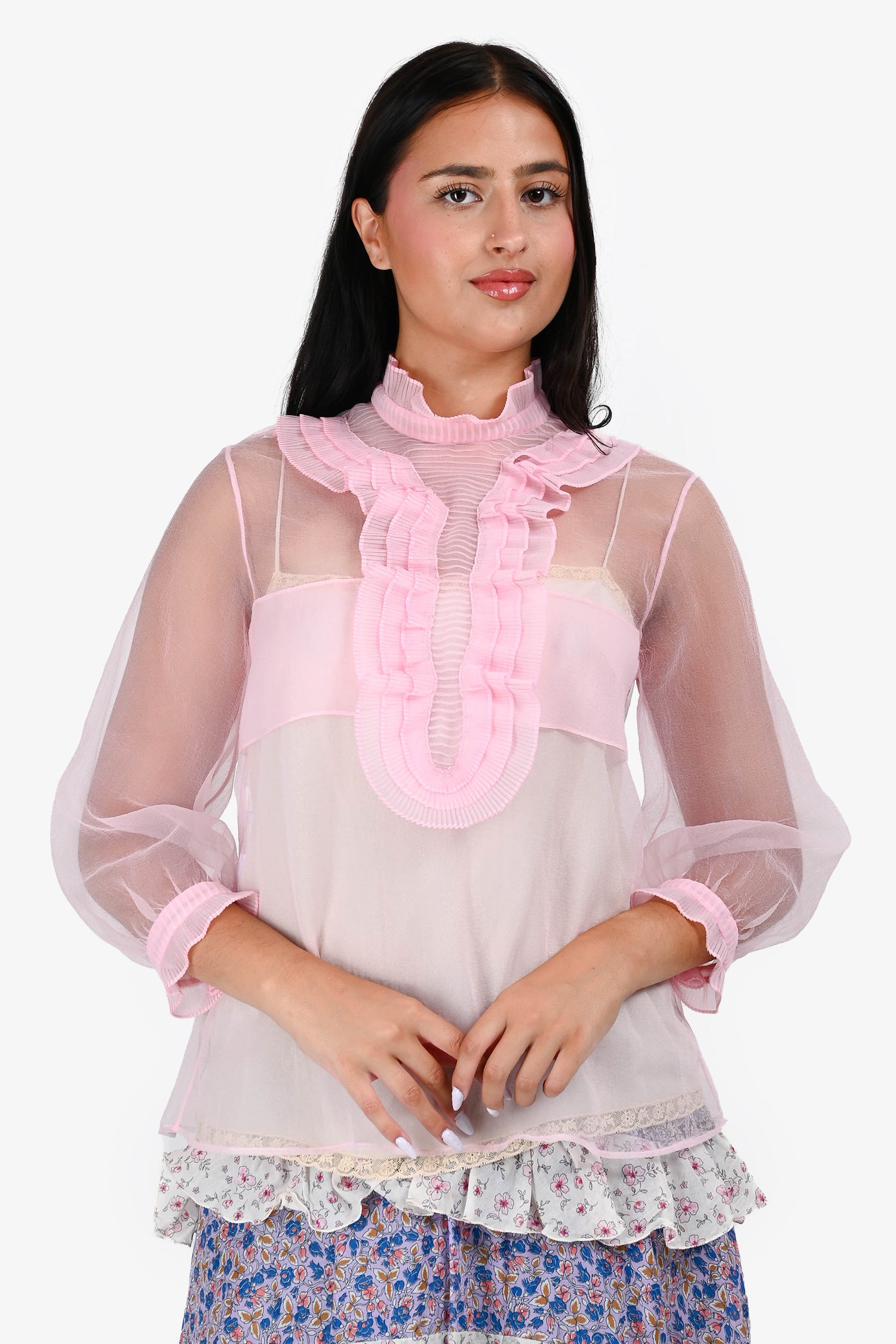 Prada 2017 Pink Sheer Ruffle Detail High Neck Top with Slip Size 42
