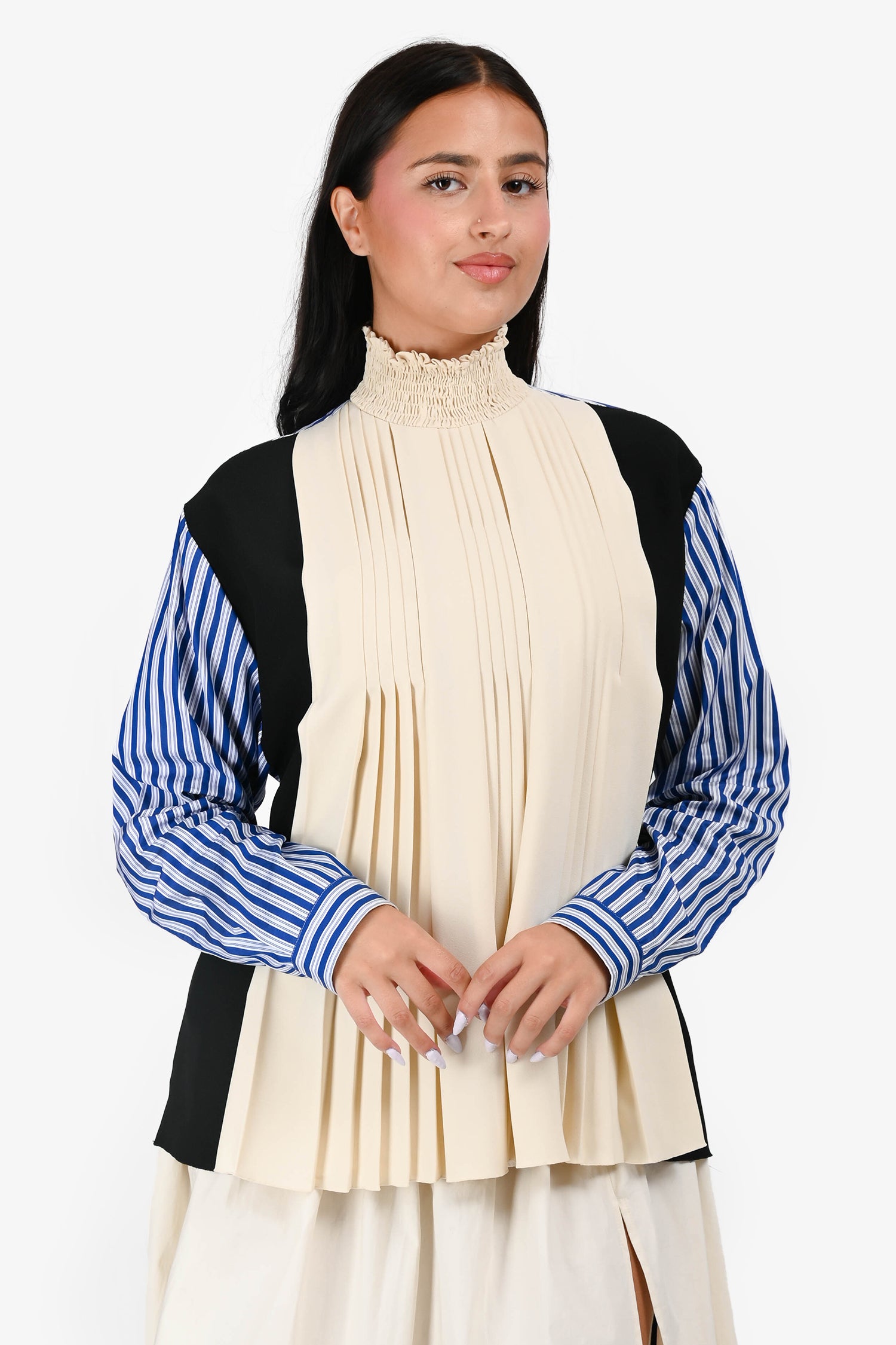Prada 2020 Cream/Multicolour Striped Pleated Blouse Size 42