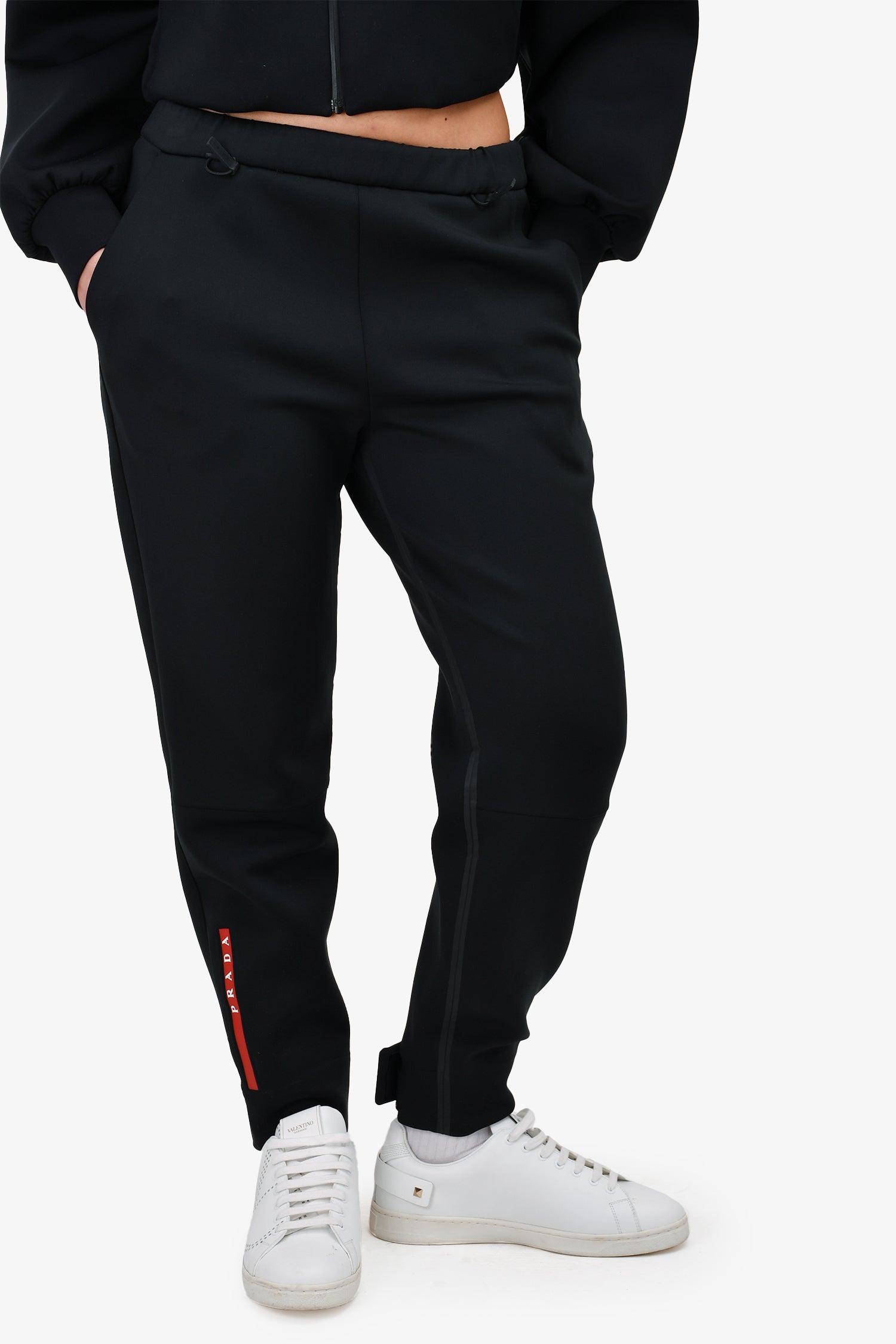Refresh availabilityPrada 2021 Black Logo Skinny Joggers. Elasticized waist. Front pockets.