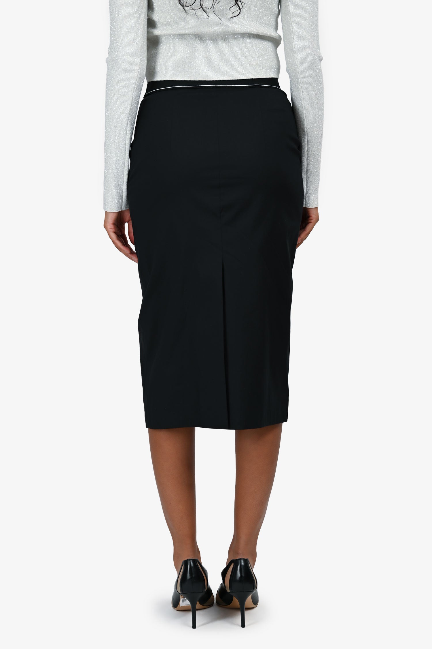 Prada 2021 Black Nylon Logo Waistband Midi Skirt Size 38