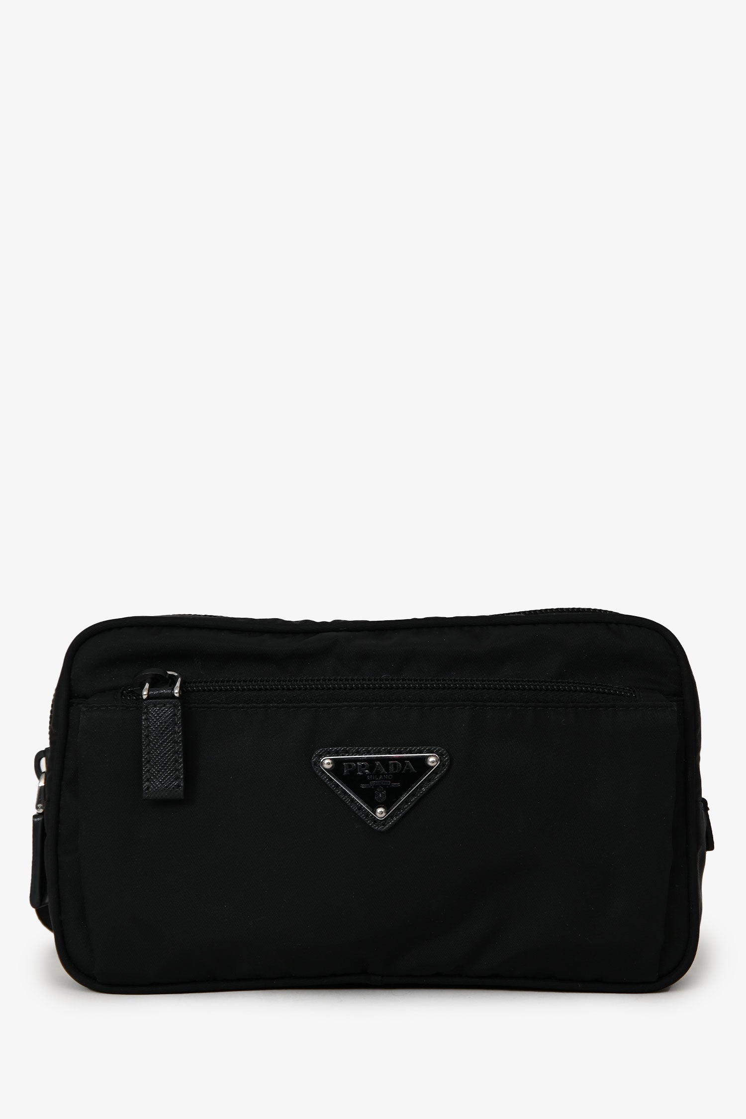 Refresh availabilityPrada 2021 Black Re-Nylon Belt Bag. Top zip closure. Adjustable strap with a buckle closure. Single exterior zip pocket. Single interior compartment with a zip wall slip pocket. Silver-tone hardware. Tonal stitching.