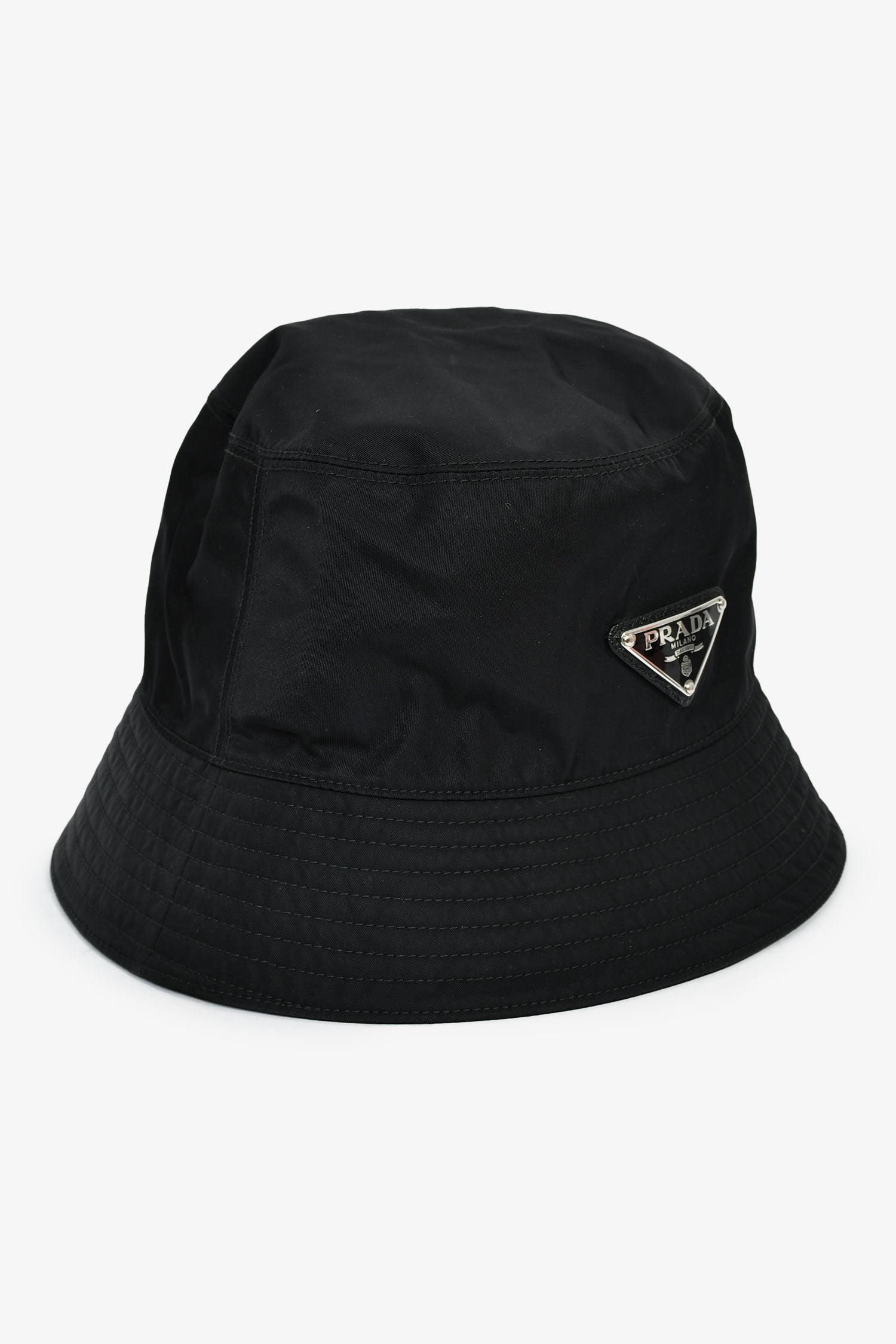 Refresh availabilityPrada 2021 Black Re-Nylon Bucket Hat. Lined interior. Silver-tone hardware. Tonal stitching.